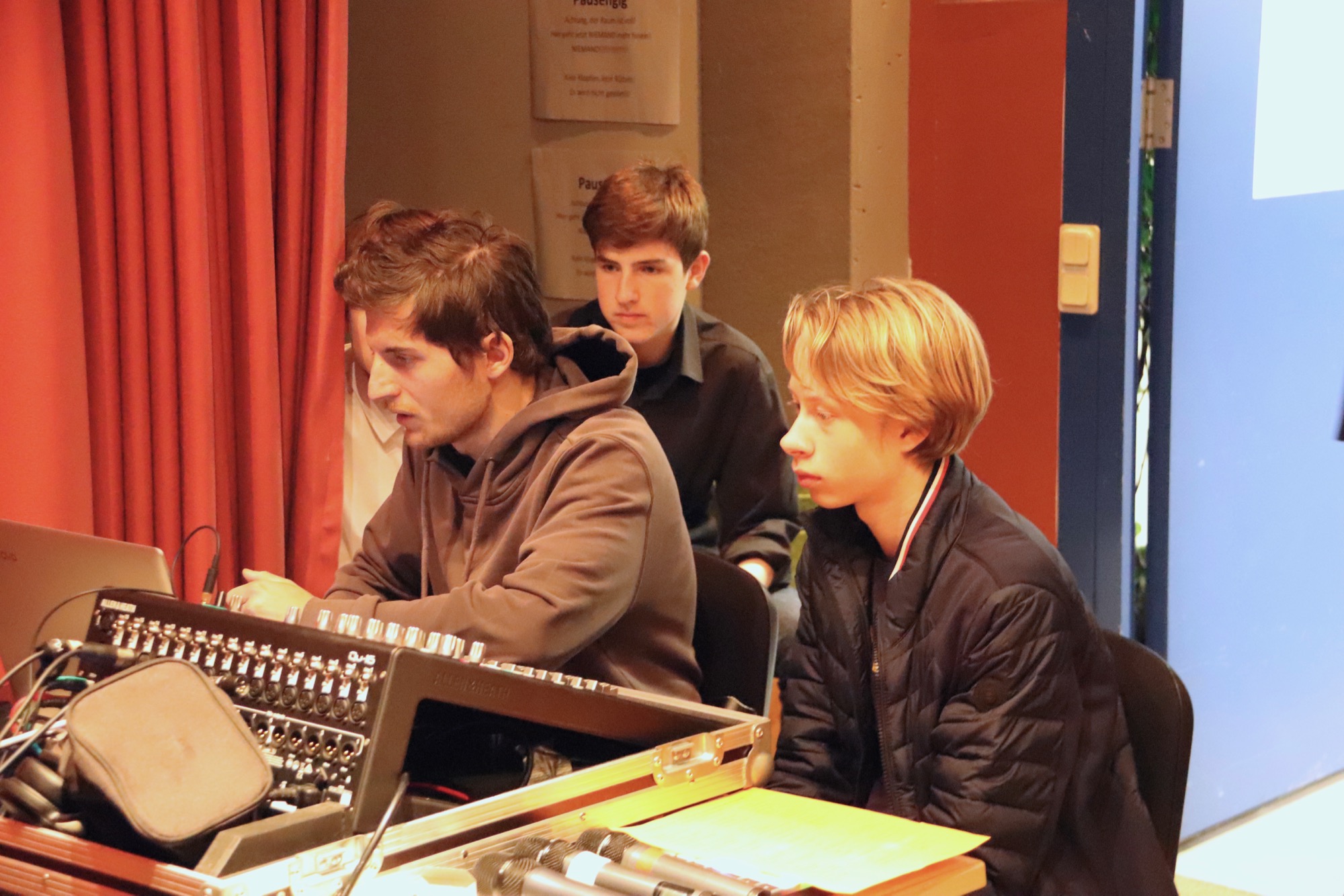 Vor den beiden letzten Darbietungen des Abends dankte Frau Antony auch der Technik-AG unter Leitung von Herrn Lego, ohne die der Abend nicht hätte stattfinden können. Ein besonderer Dank ging an den ehemaligen Schüler Johannes Vogel, der wie in früheren Jahren die technische Gesamtleitung übernommen hatte.