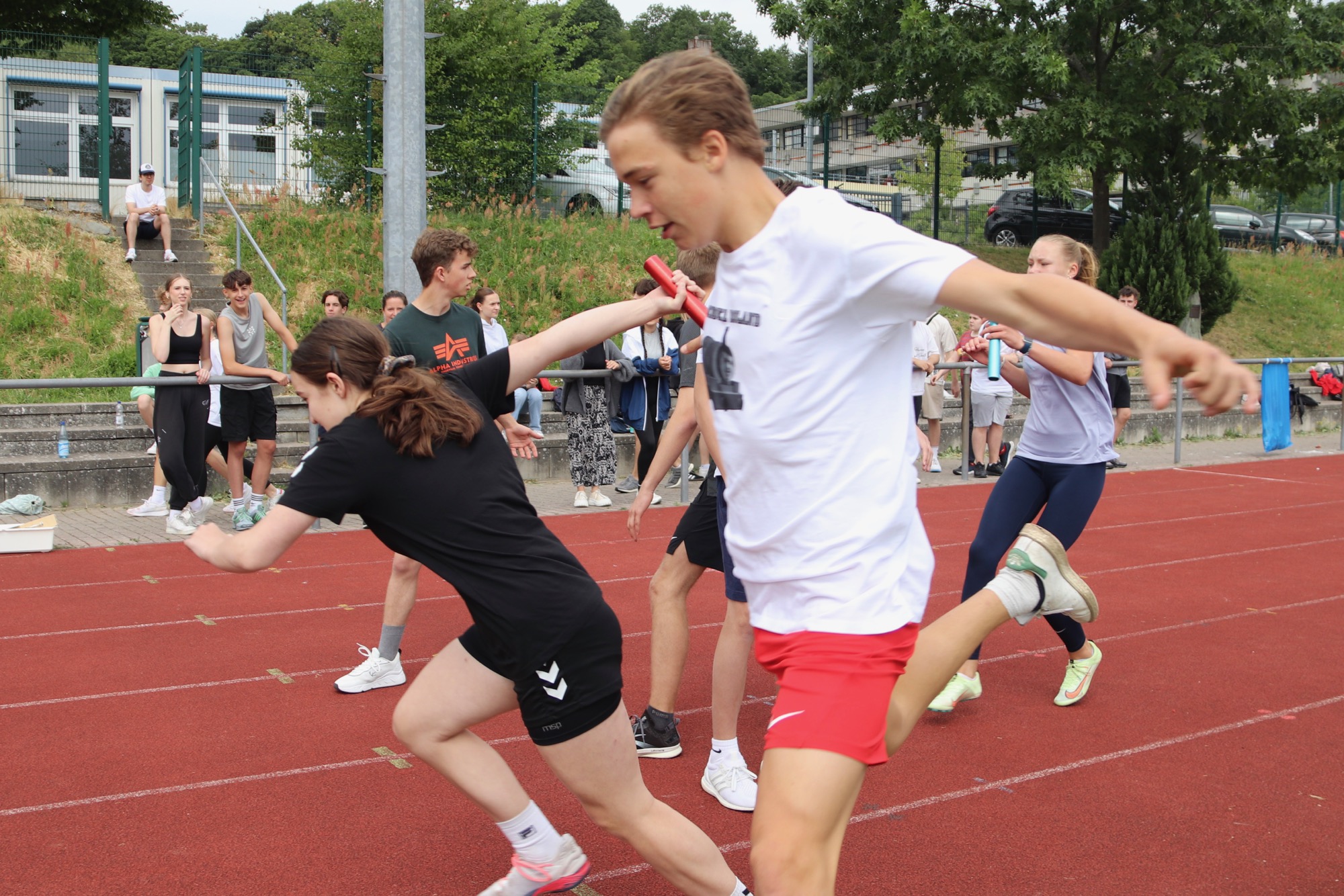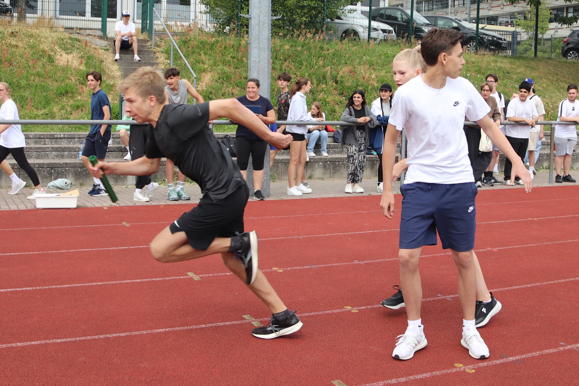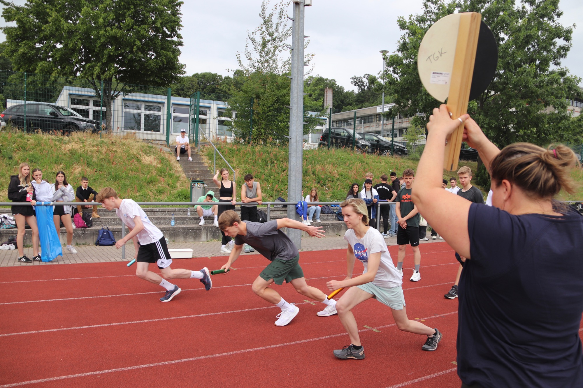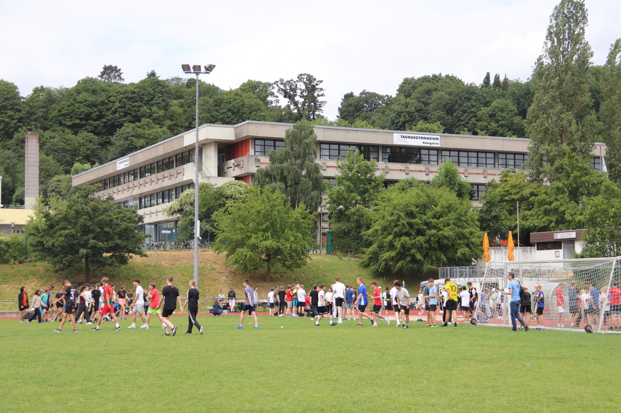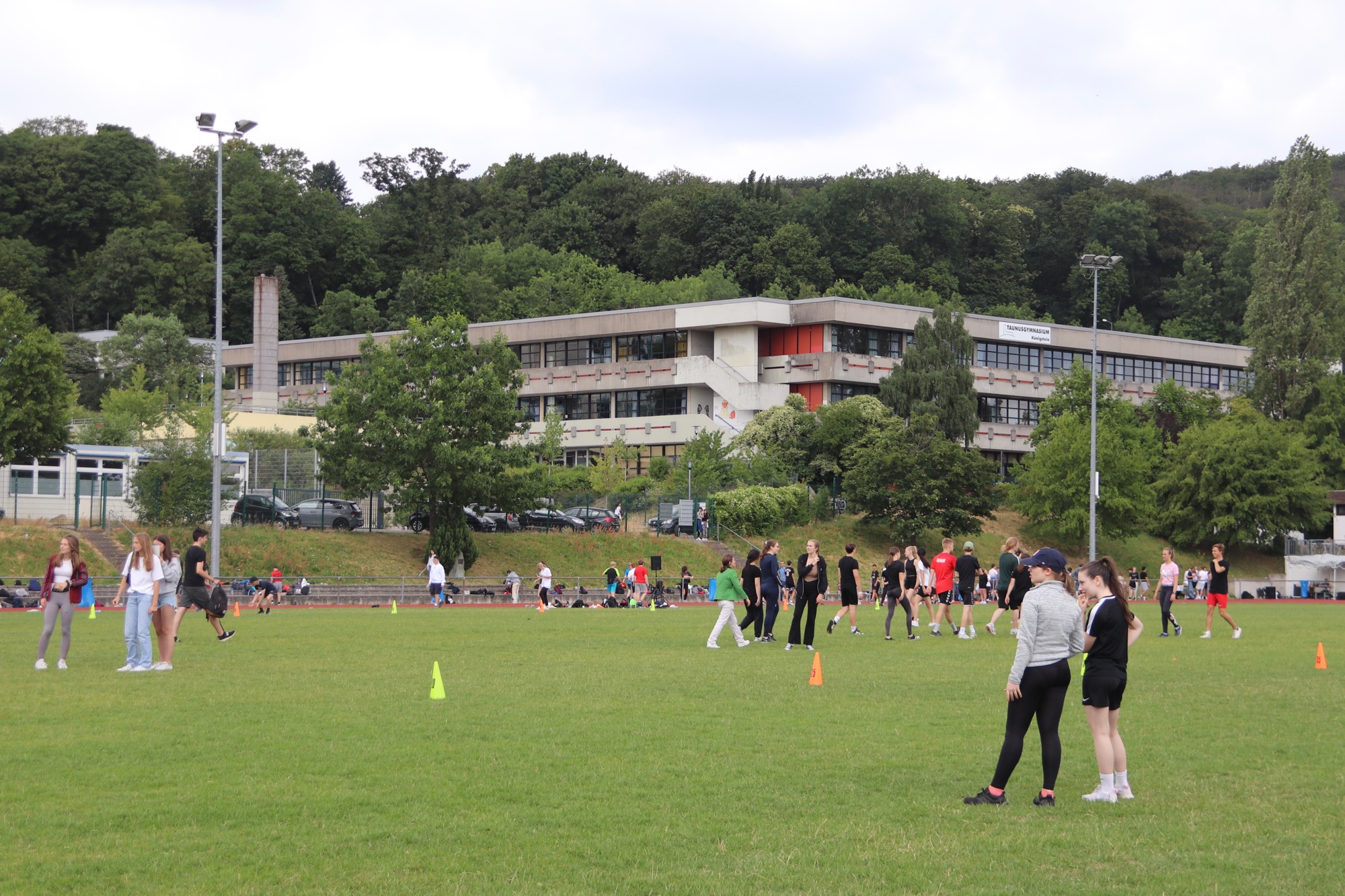 Die Sonne war gnädig bei den diesjährigen Bundesjugendspielen am Taunusgymnasium: Sie versteckte sich überwiegend hinter Wolken, wodurch das alljährliche Sport-Spektakel etwas weniger schweißtreibend verlief. Angefangen beim Staffellauf, zeigten die Schüler*innen der 5. bis 10. Klassen ihr Können zudem in den Disziplinen Sprint, Wurf und Weitsprung.