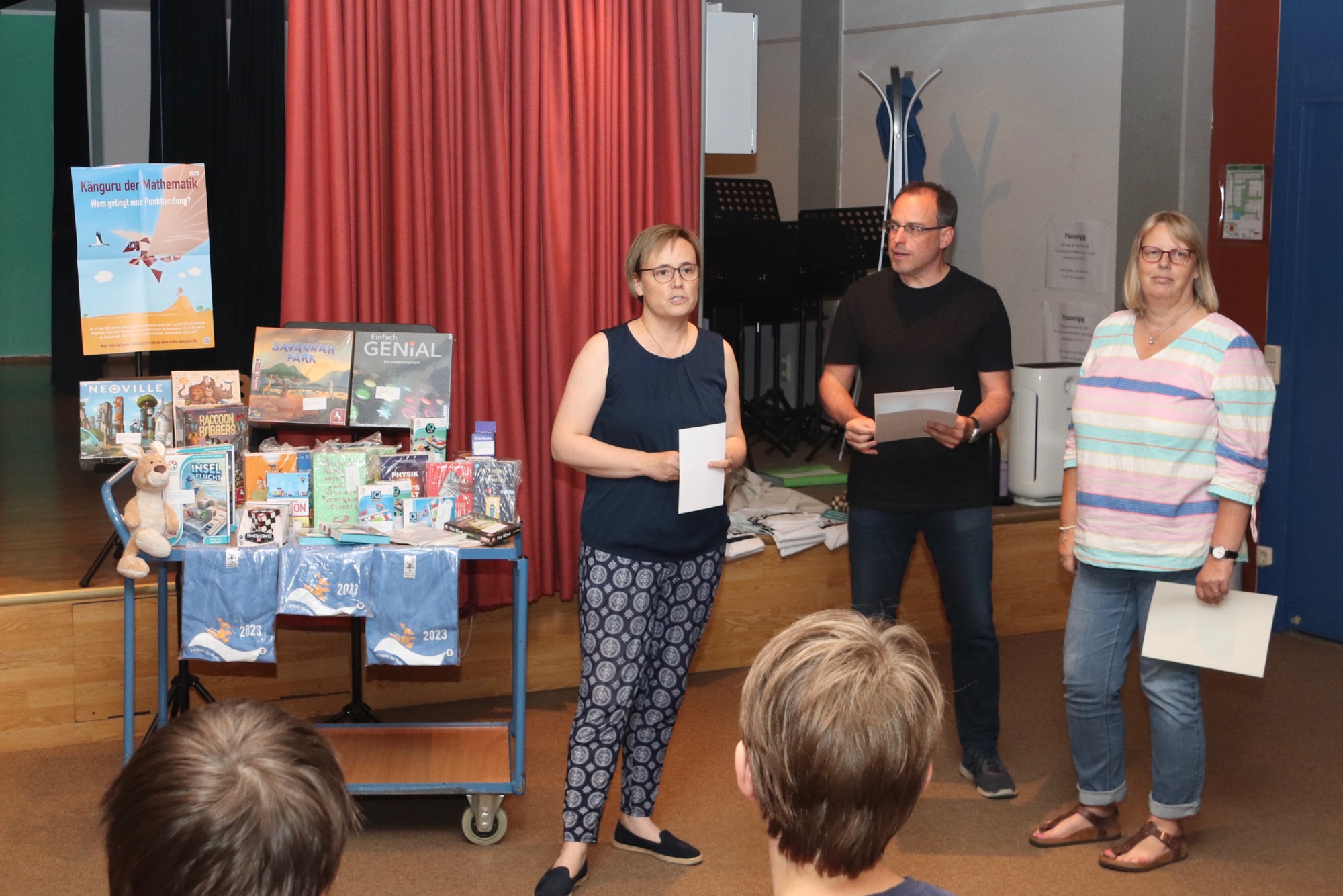 Ebenfalls ausgezeichnet wurden die erfolgreichen Teilnehmer der Mathematik-Olympiade. Sie hatten von Herrn Eichberger ihre prestigeträchtigen Urkunden bereits zuvor erhalten. Zu den Preisträgern zählten Hannah Schwarze (5e), Alex Wang (6f), Simon Gaulke (7g), Juliane Meckenstock (8g), Andreas Herold (8g) und Kira Hollstegge (10a).