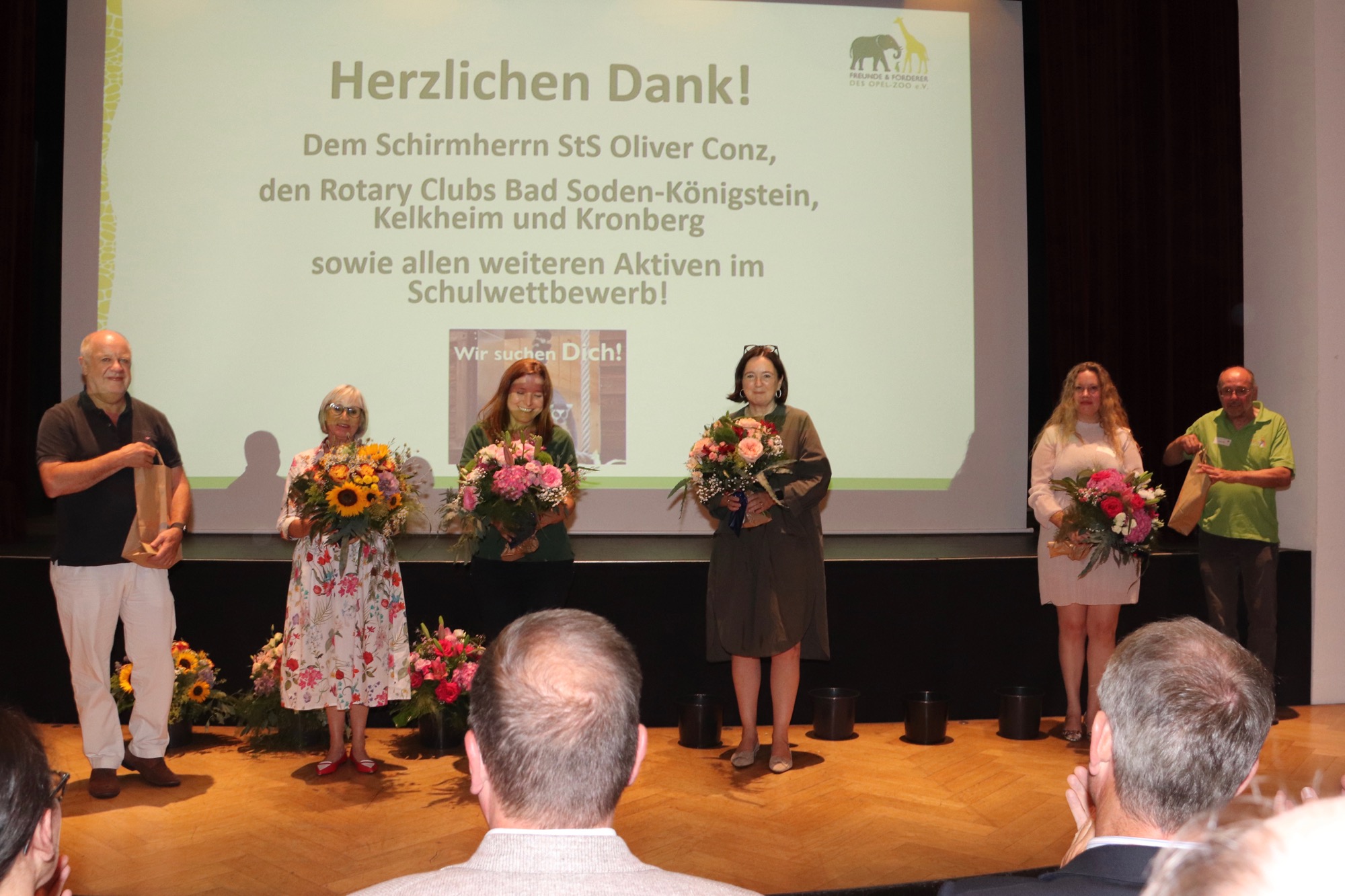 Ruth Stücke, frühere Lehrkraft am Taunusgymnasium und nun stellvertretende Vorsitzende des Zoo-Fördervereins, machte ihre Motivation für den von ihr initiierten Wetttbewerb deutlich: Sie wolle die rapide aussterbenden Tierarten schützen und Schüler*innen zu Botschaftern des Artenschutzes machen. Die Schüler*innen der 5. bis 10. Klassen, die am Wettbewerb teilnehmen konnten, sollten eine Werbekampagne für eine bedrohte Tierart kreieren – bestehend aus einem Video und einem Flyer. Die Beiträge von einer achtköpfigen Jury gesichtet und bewertet. Entscheidend für den Erfolg war auch die Arbeit der einzelnen Wettbewerbs-Koordinator*innen an den Schulen – eine Rolle, die am Taunusgymnasium wieder von Frau Hemerka mit viel Einsatz übernommen wurde.