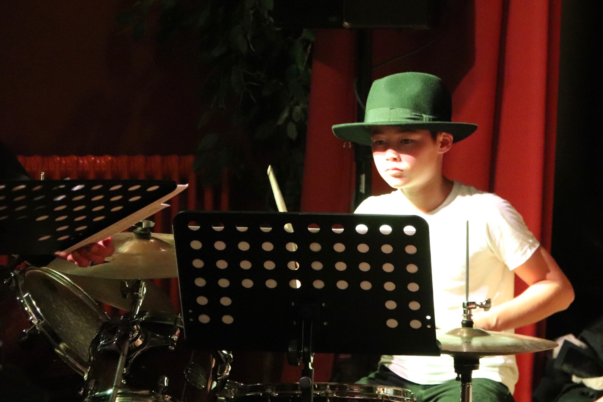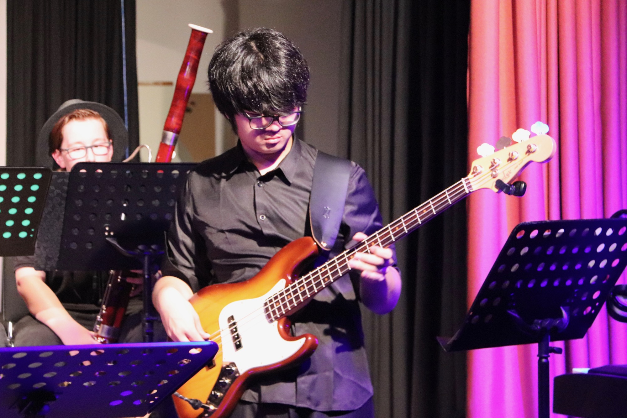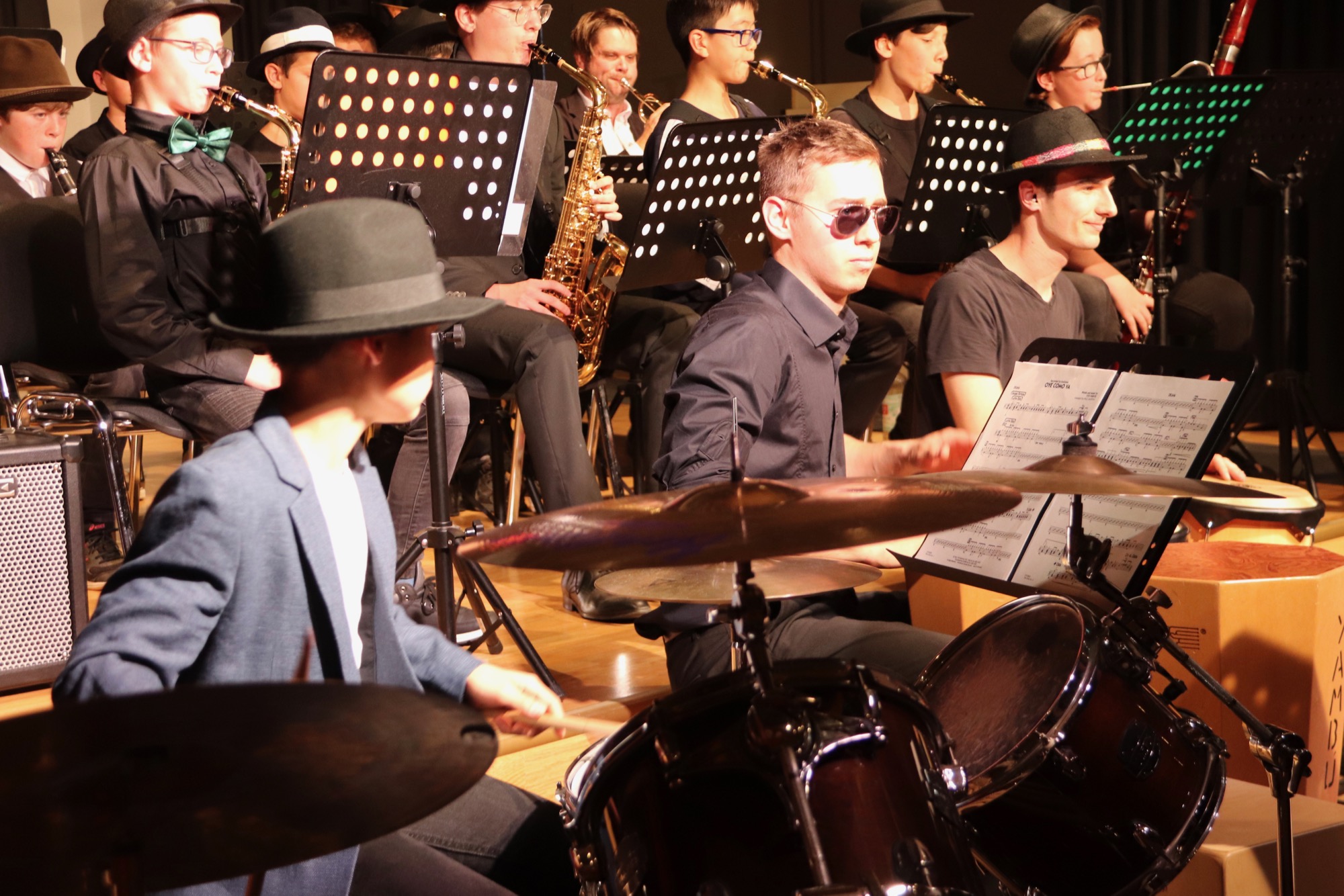 In der Big Band spielten am Fagott David Wagner (8a), am Horn Darius Cleppien (7a), an den Klarinetten Felix Dölken (7a) und Johannes Hogg (7c), an den Saxophonen Lugh Dittmer (Q3), Leo Luo (6b), Luca Straßberger (8g) und Denis Reznichenko (7f), an den Trompeten Woo June Kang (7a) und Herr Kriegeskotte, an den Posaunen Johann Behling (10b), Roman Klein (7e), Richard Michels (Q3) und Felix Weiland (Q3), an der Tuba Robert Michels (10b), an der E-Gitarre Philipp Dützmann (7a), am Keyboard Elias Leemüller (Q1), am E-Bass Zhe Cheng (E1), an Schlagzeug und Percussion Linus Fujita (7d) sowie als Gäste die früheren Big-Band-Drummer Lukas Kieslich und Liam Wurl. (Rmy)
