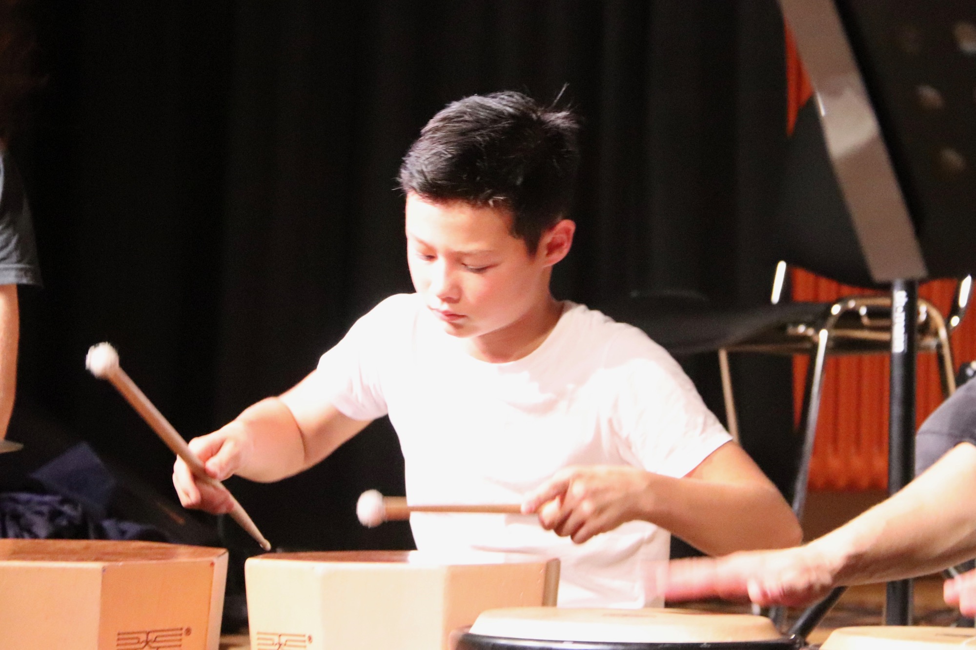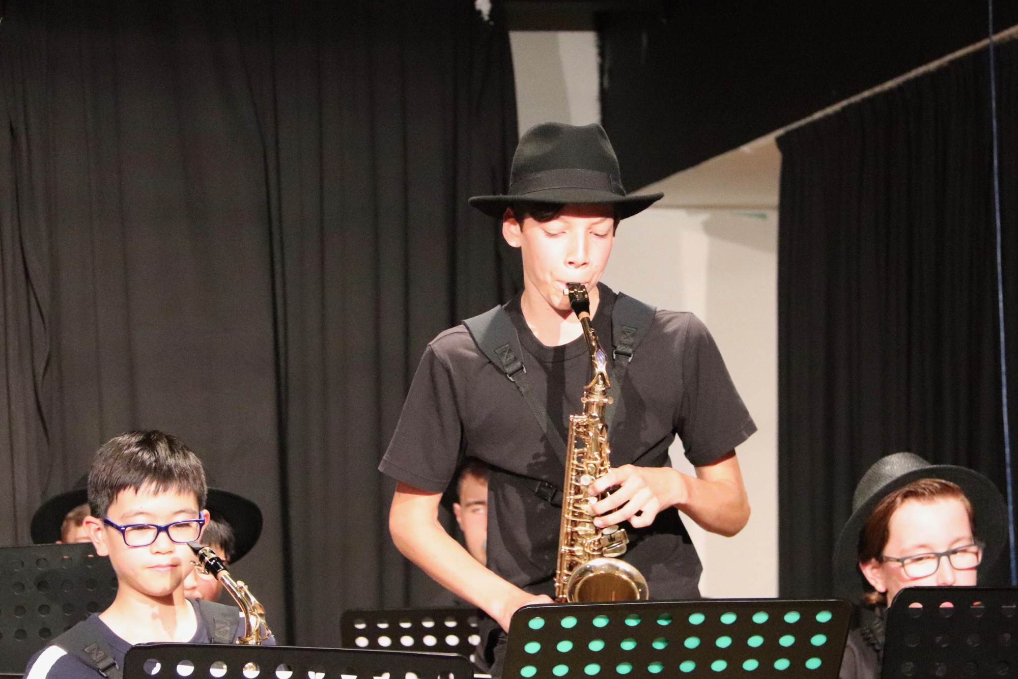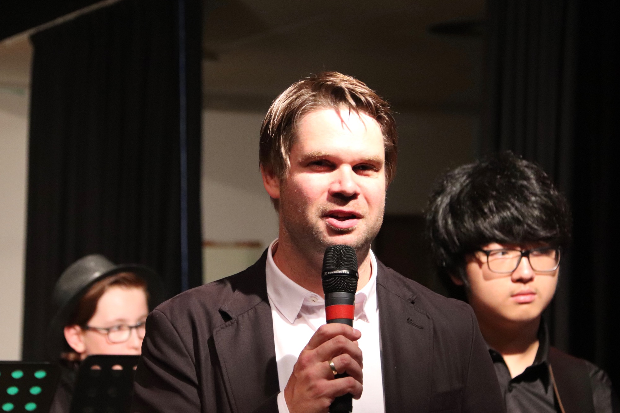 In der Big Band spielten am Fagott David Wagner (8a), am Horn Darius Cleppien (7a), an den Klarinetten Felix Dölken (7a) und Johannes Hogg (7c), an den Saxophonen Lugh Dittmer (Q3), Leo Luo (6b), Luca Straßberger (8g) und Denis Reznichenko (7f), an den Trompeten Woo June Kang (7a) und Herr Kriegeskotte, an den Posaunen Johann Behling (10b), Roman Klein (7e), Richard Michels (Q3) und Felix Weiland (Q3), an der Tuba Robert Michels (10b), an der E-Gitarre Philipp Dützmann (7a), am Keyboard Elias Leemüller (Q1), am E-Bass Zhe Cheng (E1), an Schlagzeug und Percussion Linus Fujita (7d) sowie als Gäste die früheren Big-Band-Drummer Lukas Kieslich und Liam Wurl. (Rmy)