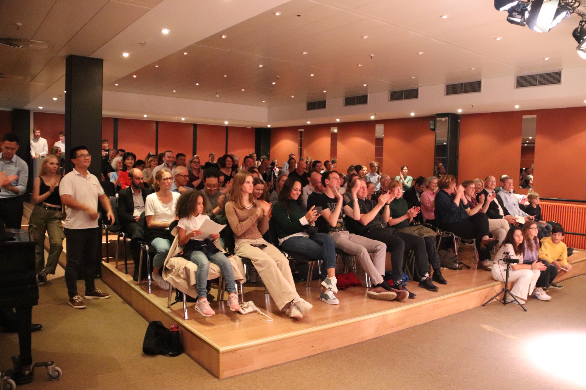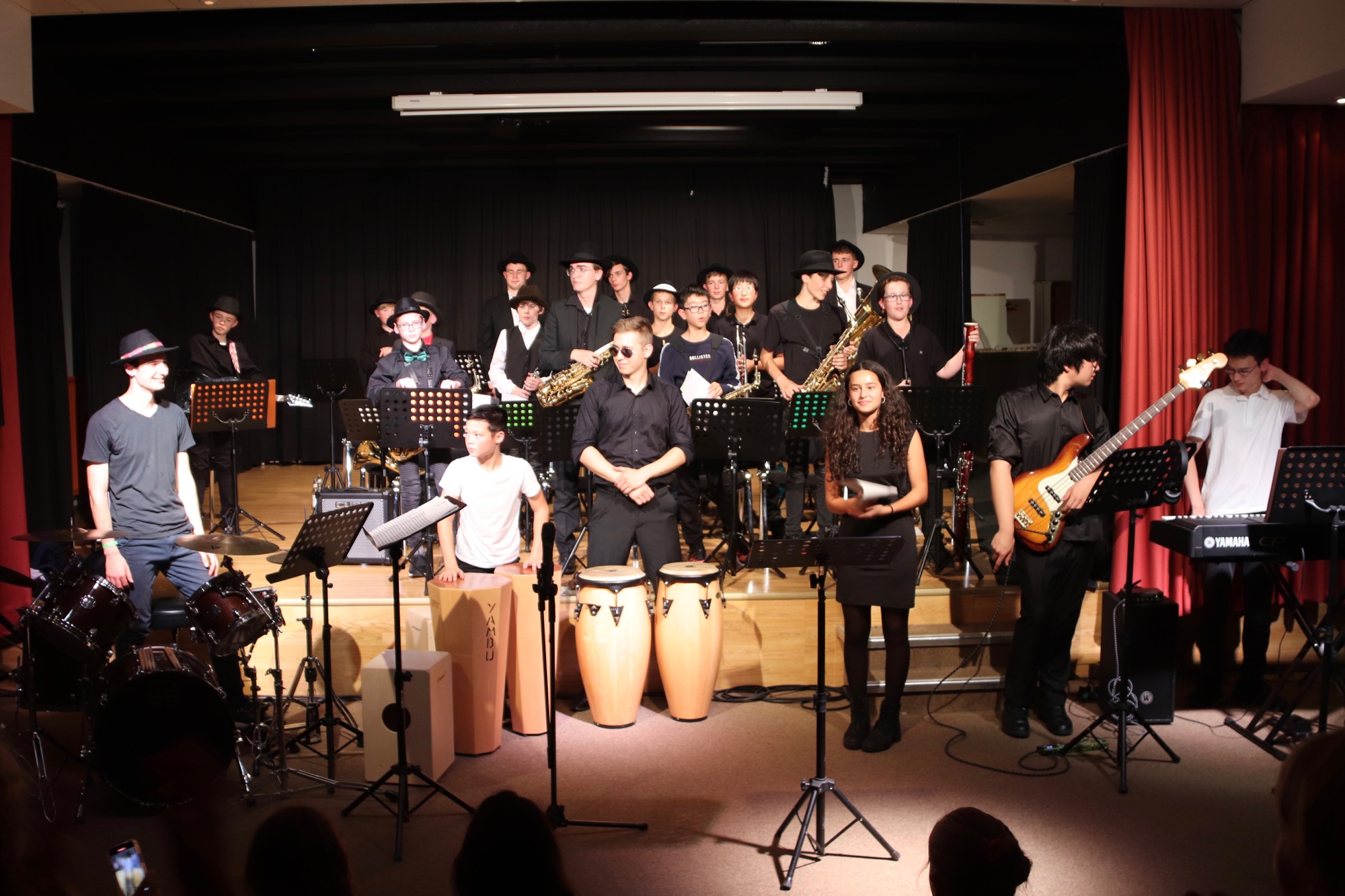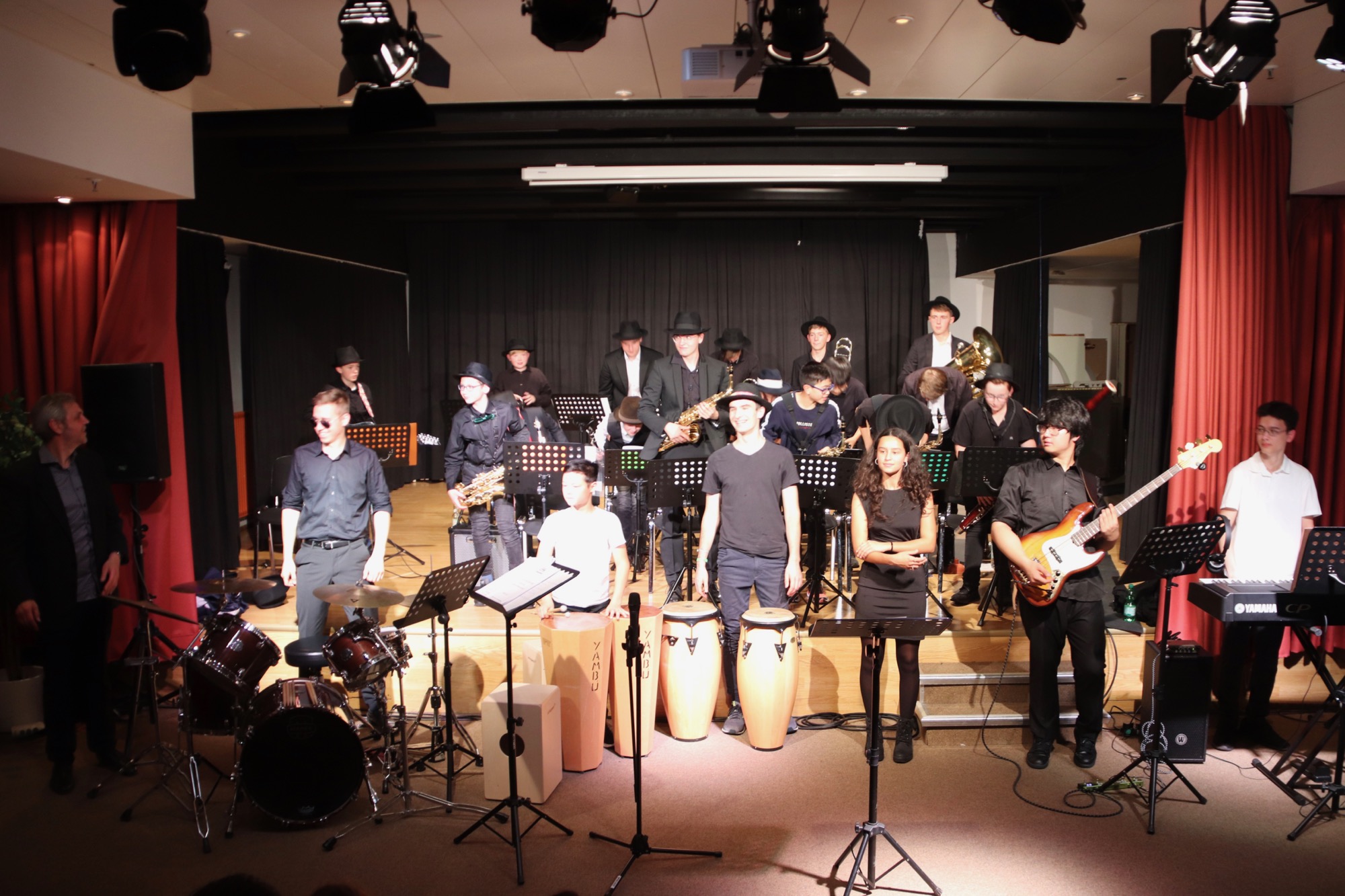 Das Ergebnis konnte sich wahrhaft hören lassen: Neun Songs, von Jazz über Latin bis hin zu Rock und Soul zeigten die große musikalische Bandbreite, die mit einer Big-Band-Besetzung möglich ist. Die Band, einheitlich im Blues-Brothers-Look gekleidet, füllte mit ihrem mitreißenden Sound den komplett gefüllten Theaterraum aus, und das begeisterte Publikum wippte und klatschte im Takt mit.