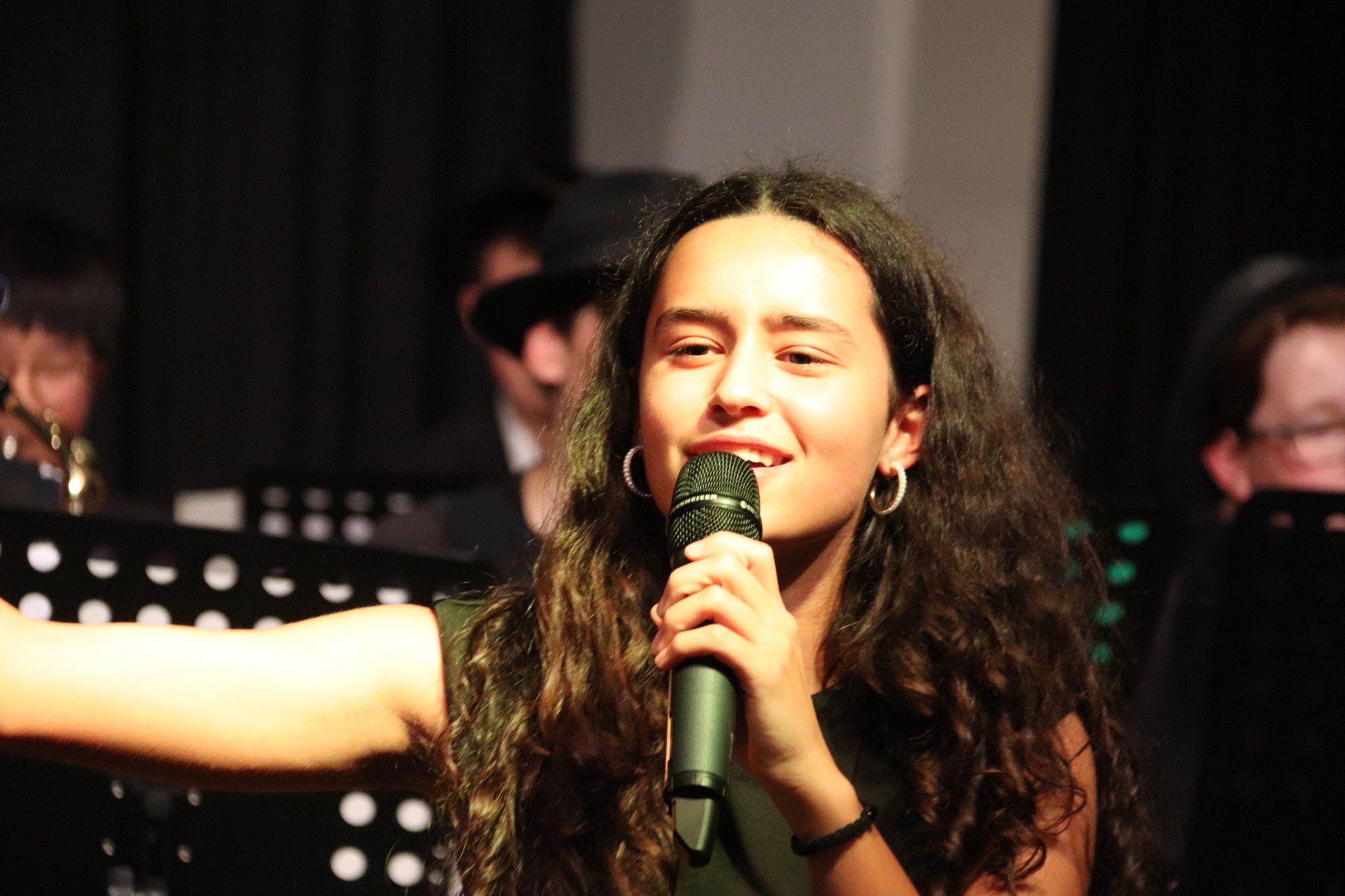 Beim Soul-Klassiker „The Look of Love“ trat als Special Guest Soraya Wingenter (8f) vors Publikum und beeindruckte mit ihrer gefühlvollen, souligen Stimme.