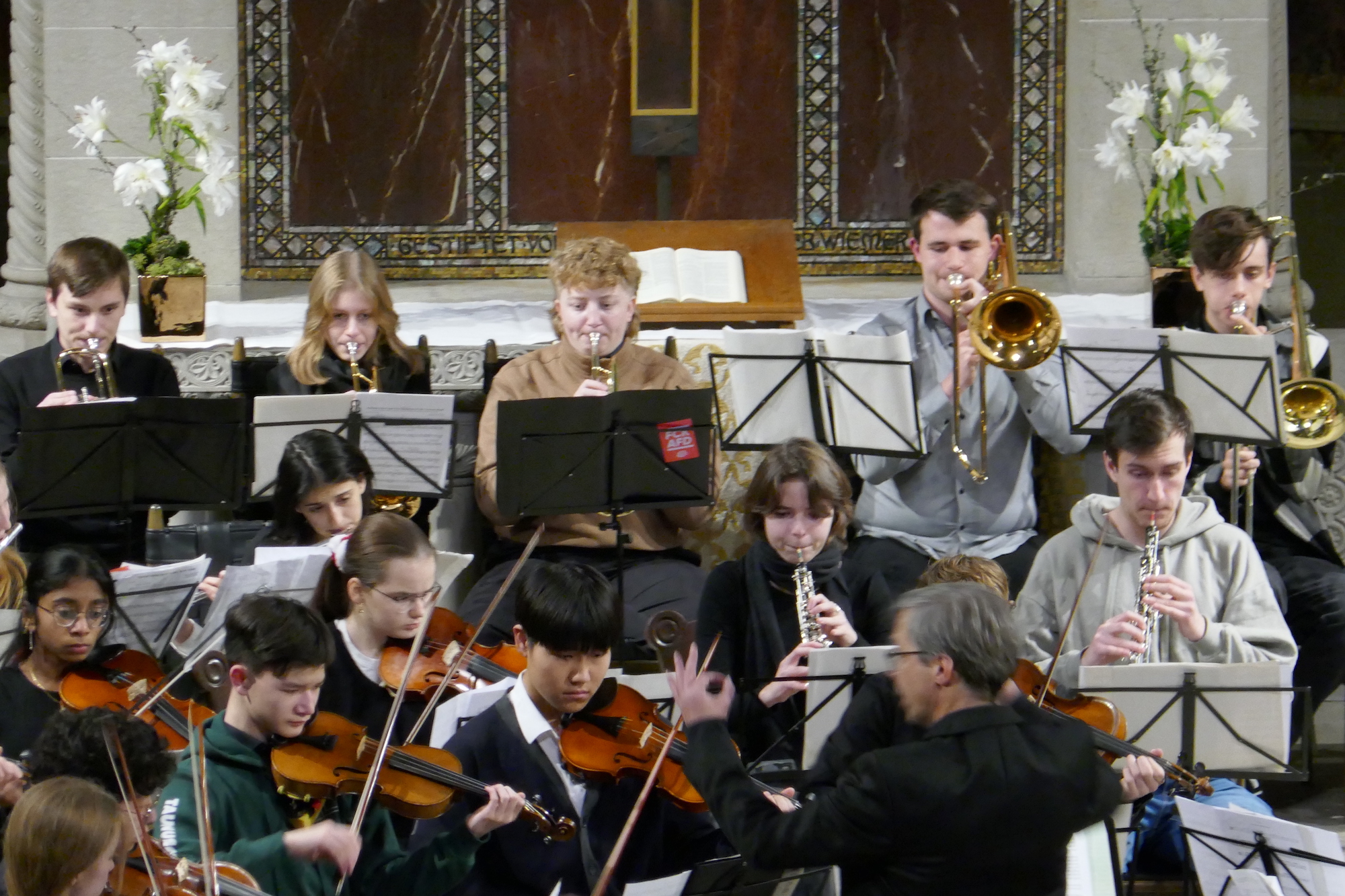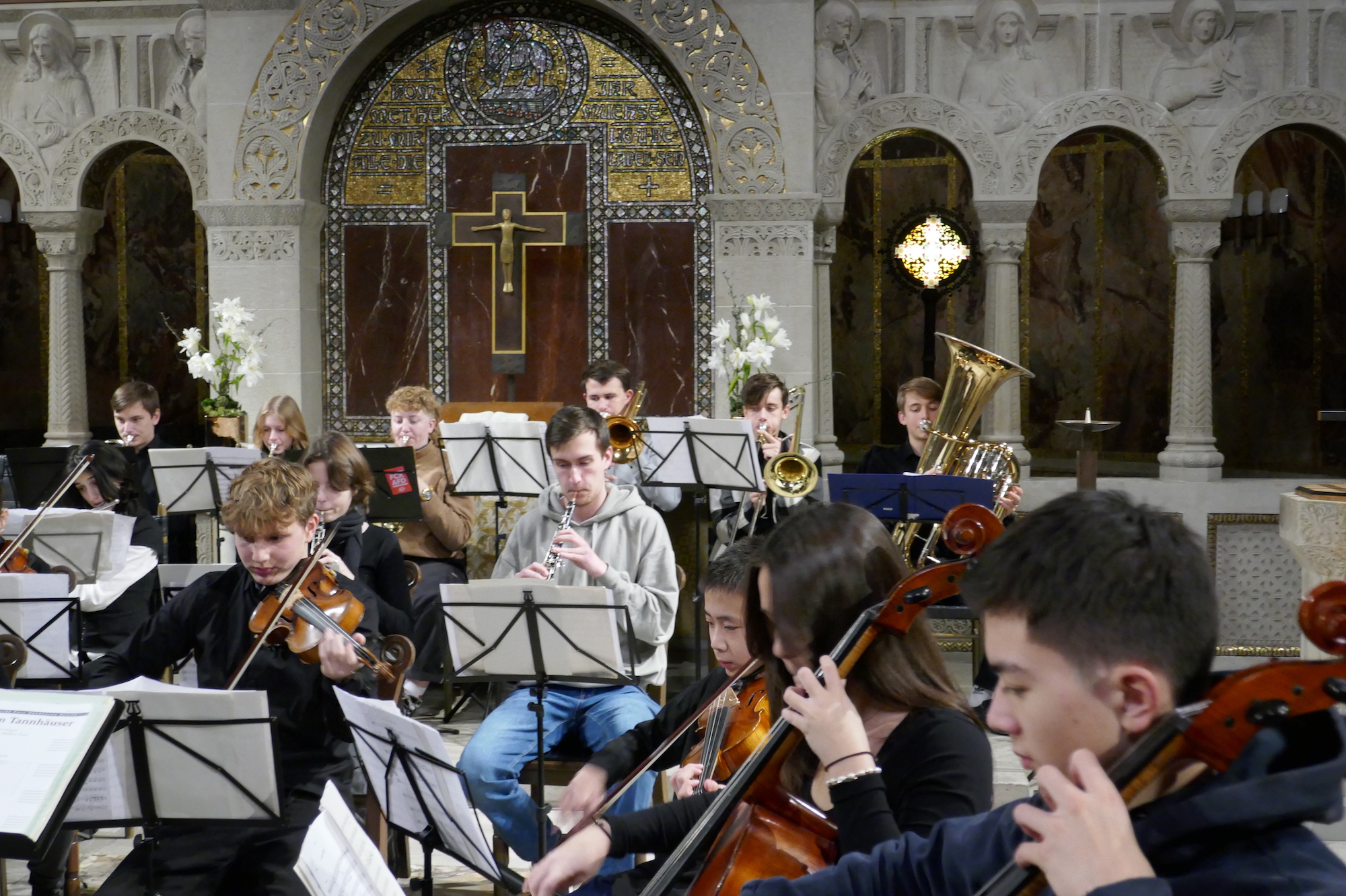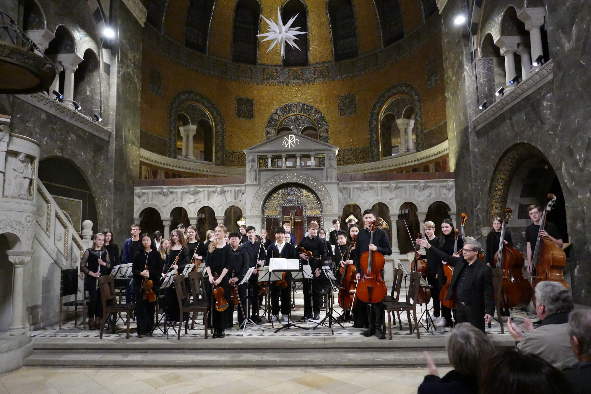 Zu Beginn der Adventszeit trat das Große Orchester des Taunusgymnasiums unter der Leitung von Herrn Neubeck beim traditionellen "Konzert der Schulen" in der Erlöserkirche in Bad Homburg auf – wieder einmal ein umjubelter Auftritt. Dabei spielte das Orchester neben Ensembles anderer regionaler Schulen einen Auszug aus seinem Repertoire.