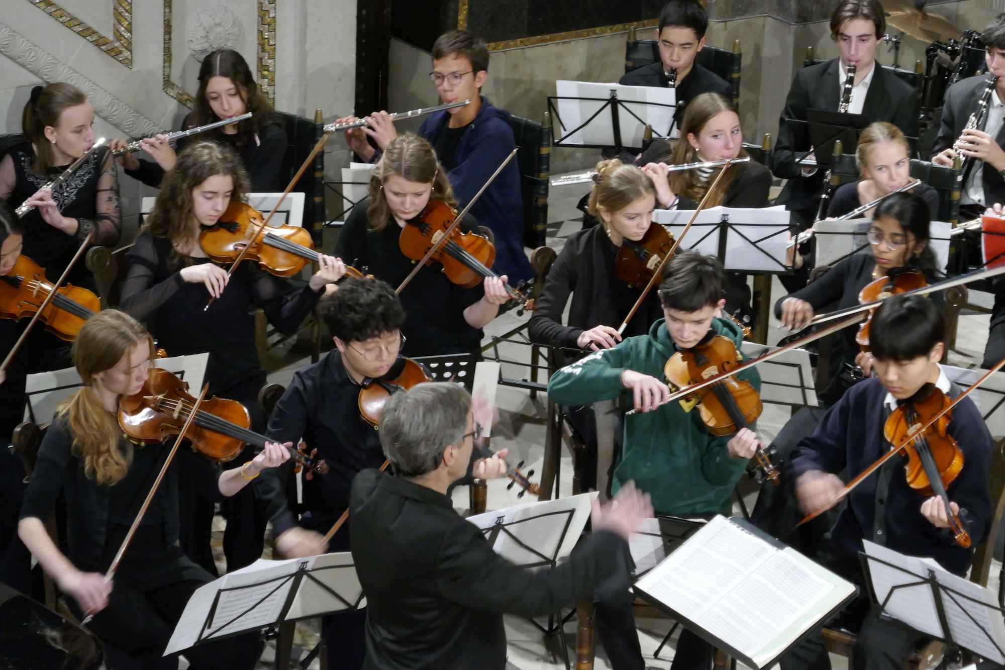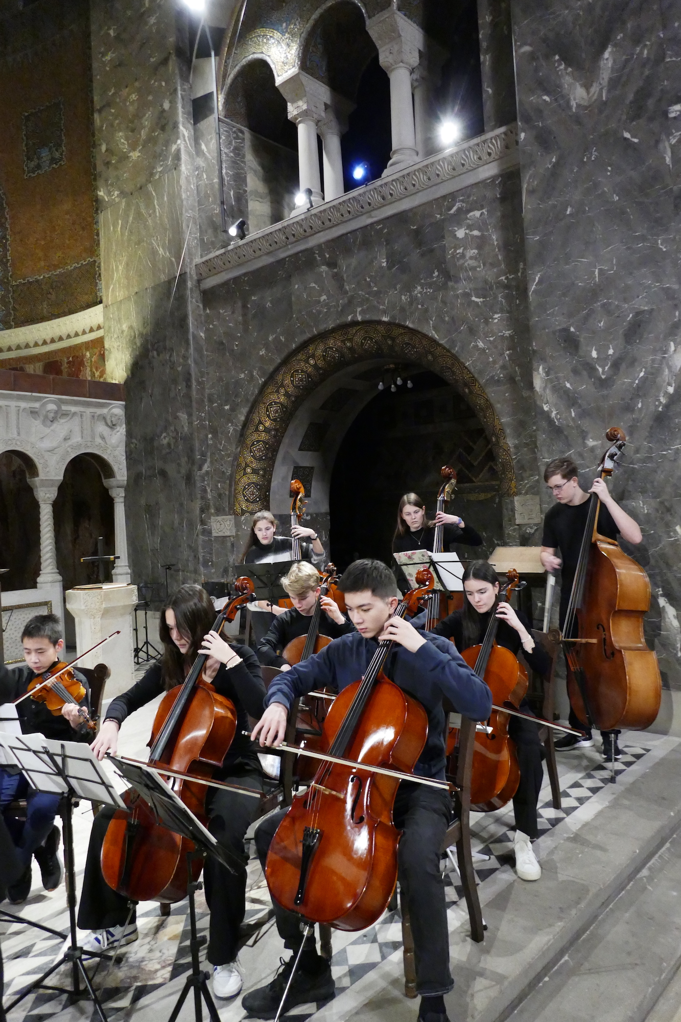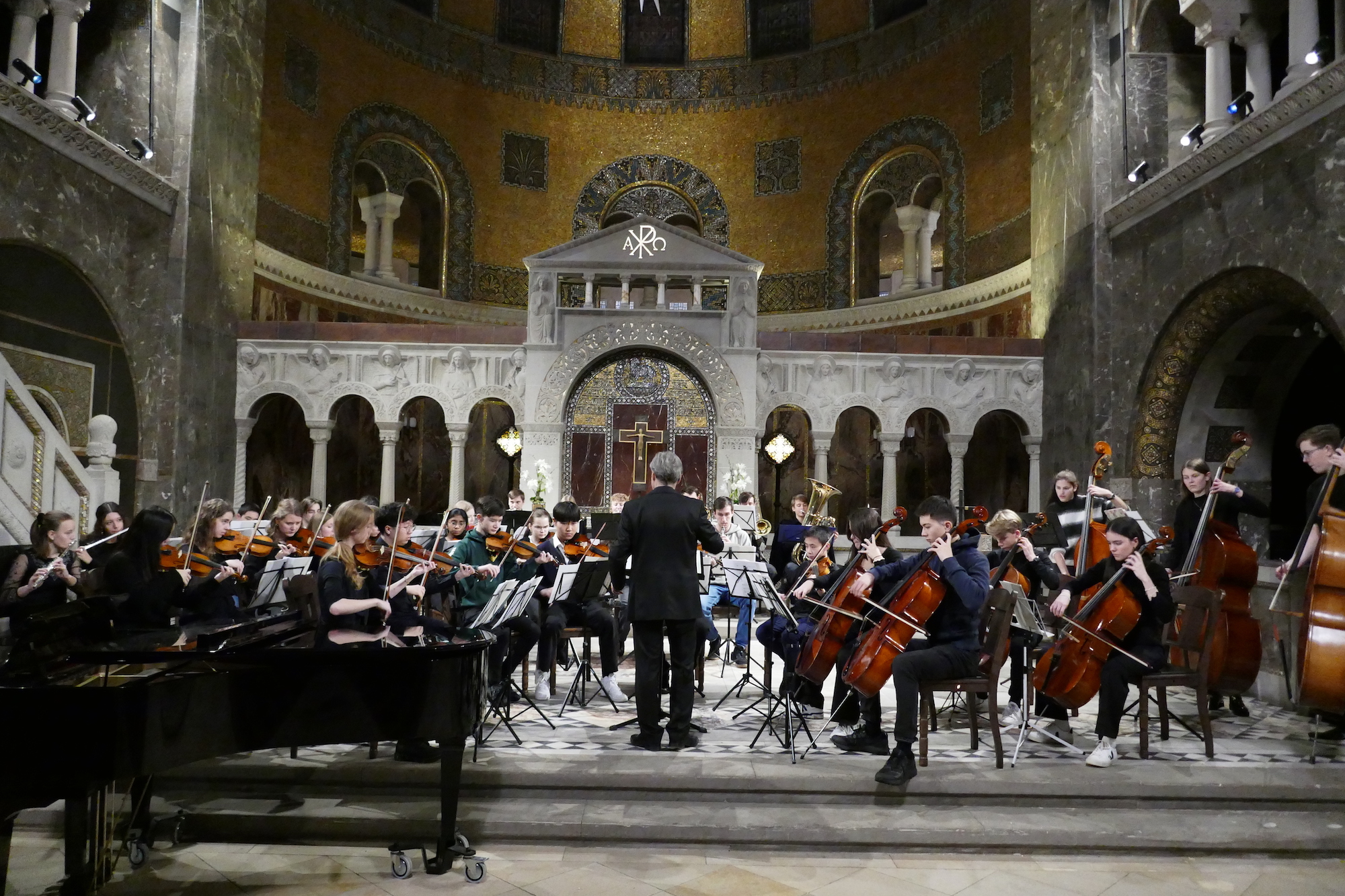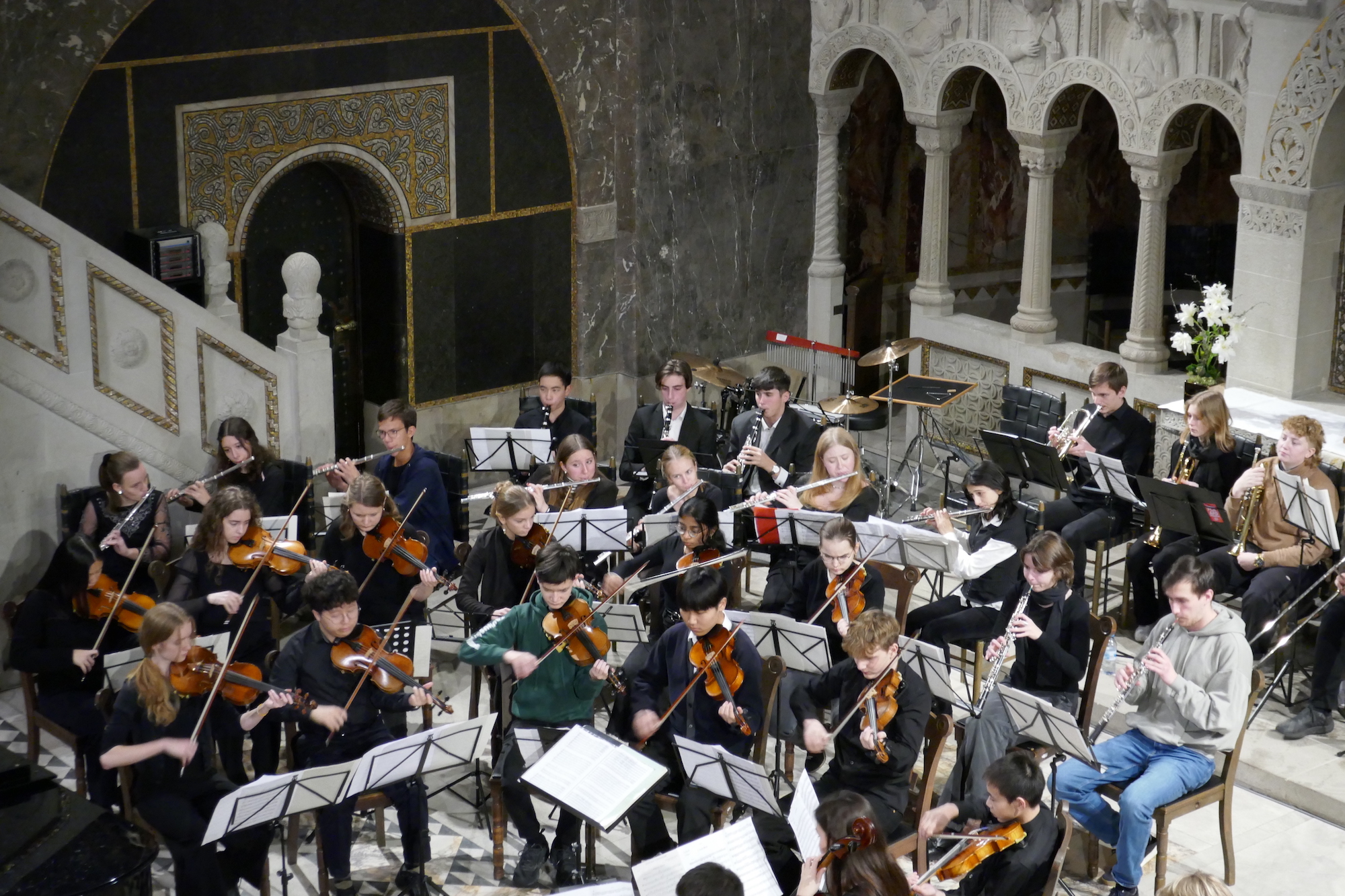 Zu Beginn der Adventszeit trat das Große Orchester des Taunusgymnasiums unter der Leitung von Herrn Neubeck beim traditionellen "Konzert der Schulen" in der Erlöserkirche in Bad Homburg auf – wieder einmal ein umjubelter Auftritt. Dabei spielte das Orchester neben Ensembles anderer regionaler Schulen einen Auszug aus seinem Repertoire.