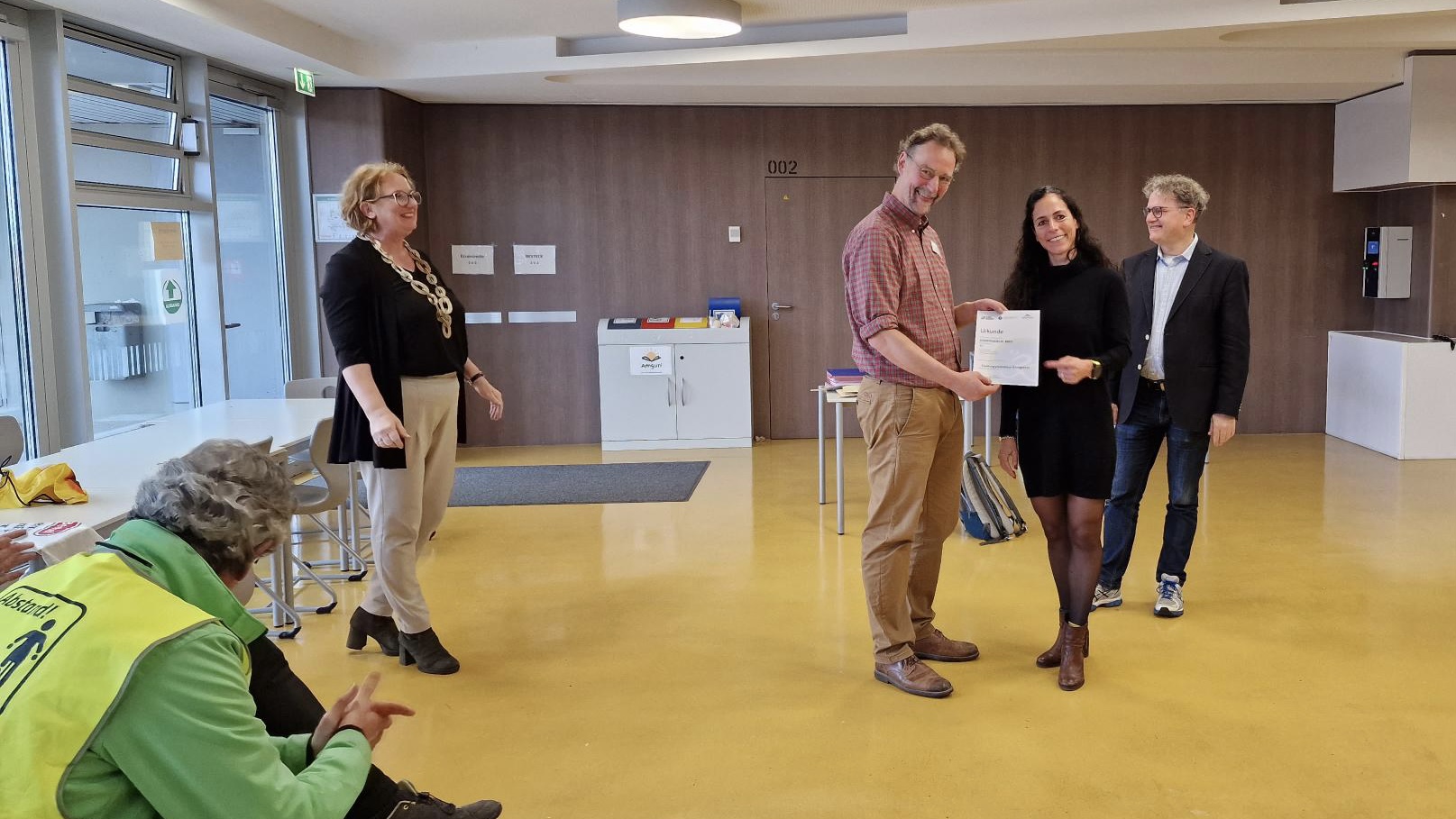 Bei der feierlichen Siegerehrung waren neben zahlreichen Schüler*innen Schulleiterin Frau Herbst und die Stadtradel-Koordinatorin des Taunusgymnasiums, Frau Schneider, anwesend. Bürgermeister Leonhard Helm drückte seine Anerkennung für den tollen Erfolg aus. Und schließlich wurden auch noch ein paar begehrte Sonderpreise verlost: Freikarten fürs Freibad in der kommenden Saison.