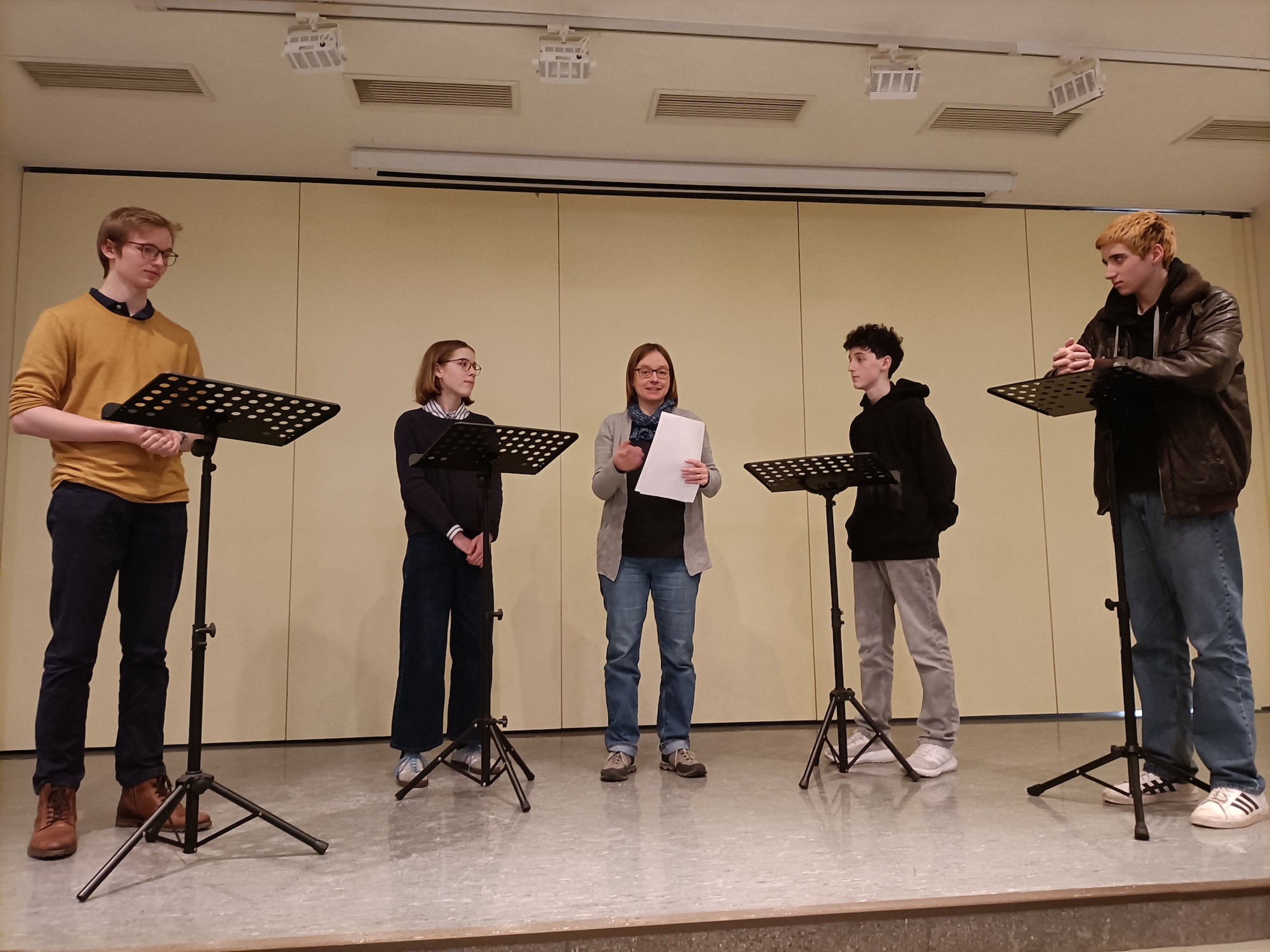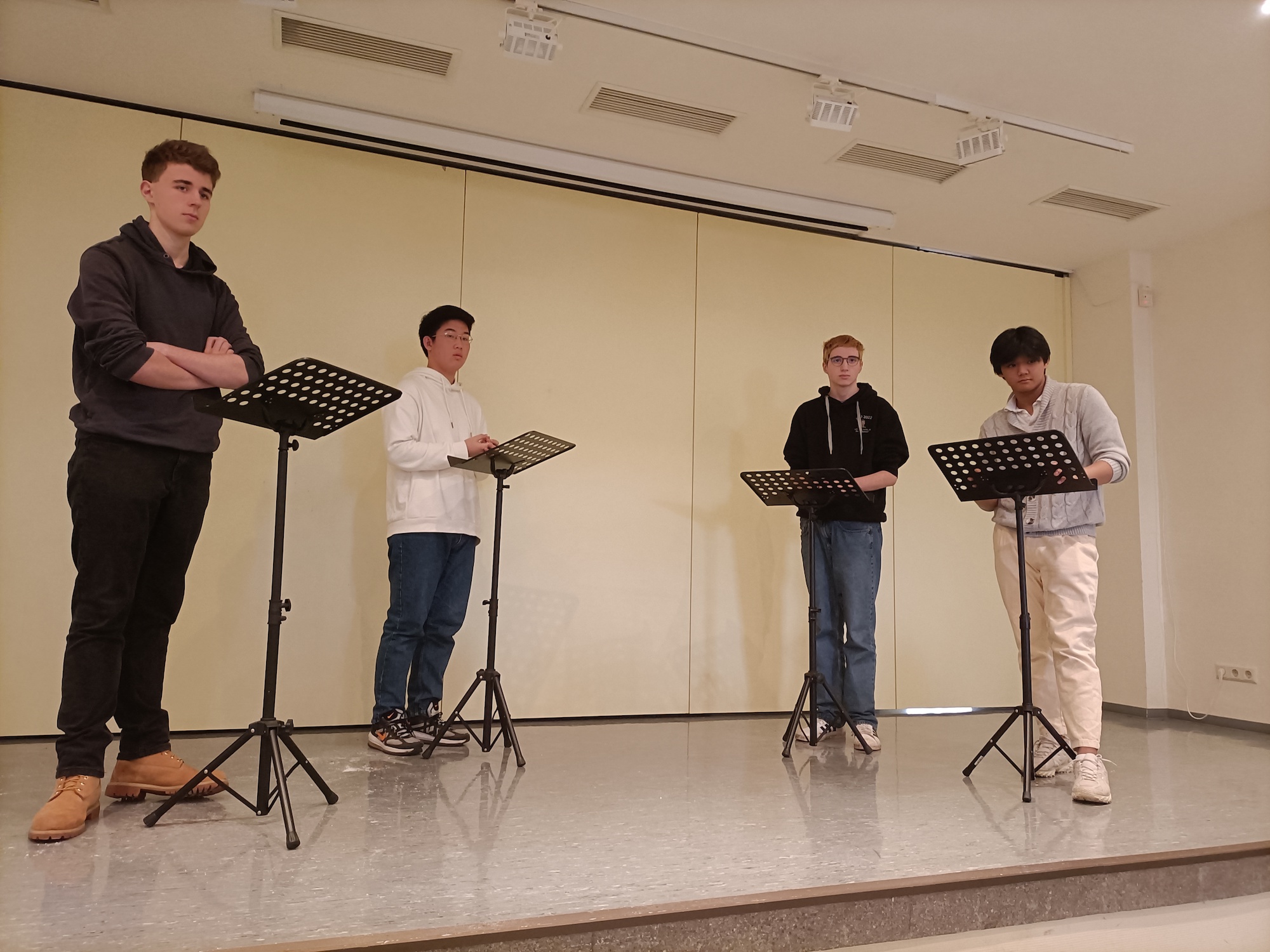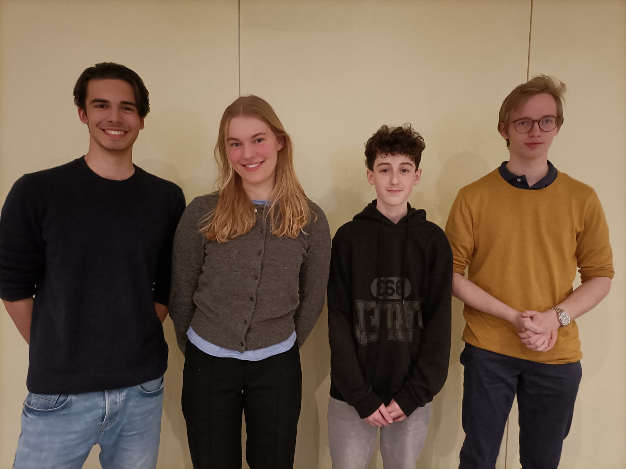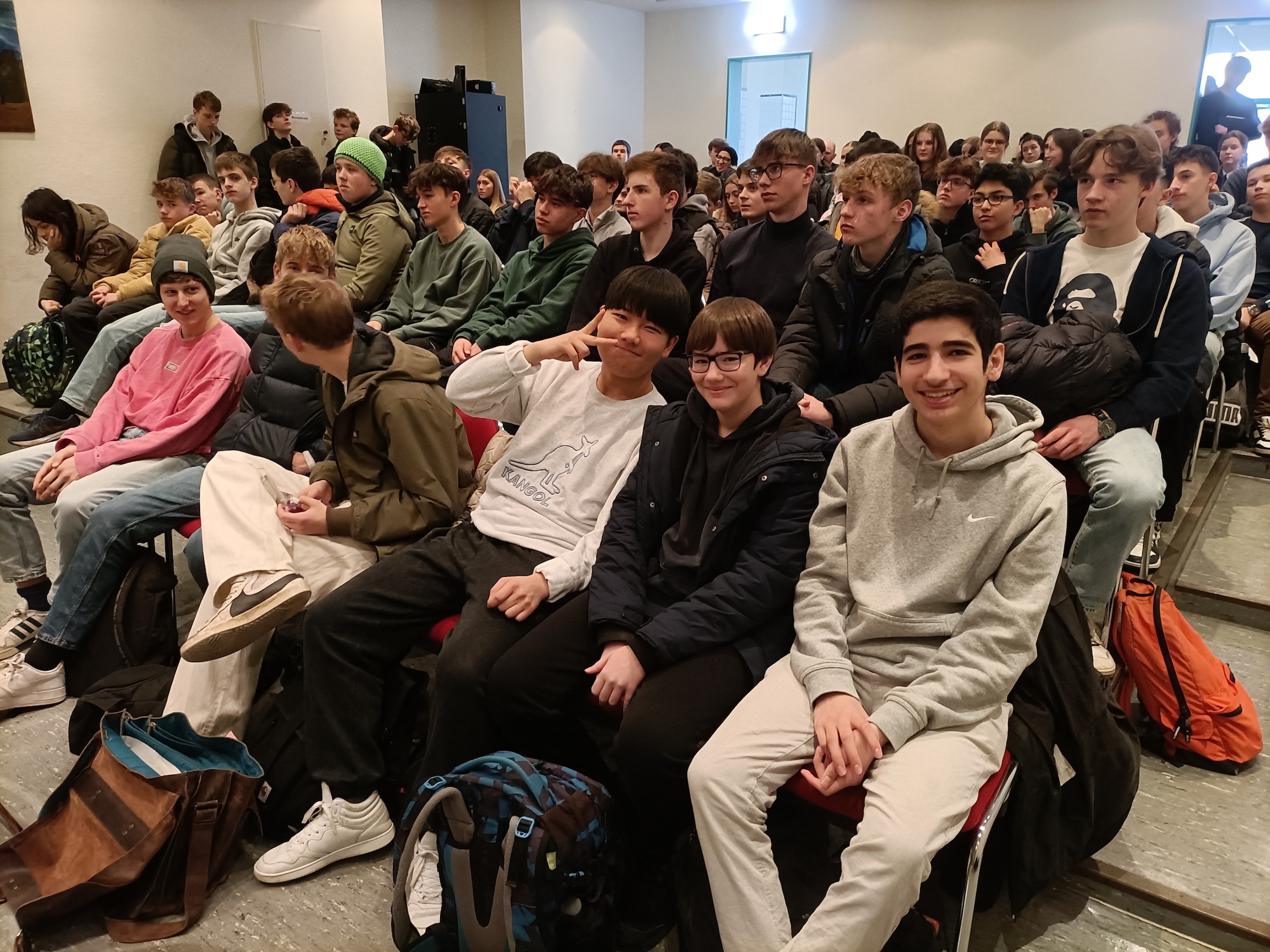 Im der Altersstufe 1 (8. bis 10. Klasse) waren Robert Michels als Schulsieger und Nikolai Navarro als Zweitplatzierter (beide 10b) mit von der Partie. Im Schulwettbewerb hatten sie in einer intensiven Debatte zur Frage, ob in Deutschland Schönheitswettbewerbe und Model-Castingshows für Jugendliche verboten werden sollten, die besten Argumente. Die Plätze 3 und 4 belegten Kendrick Ventanilla (10e) und Seochan Yoon (9g).