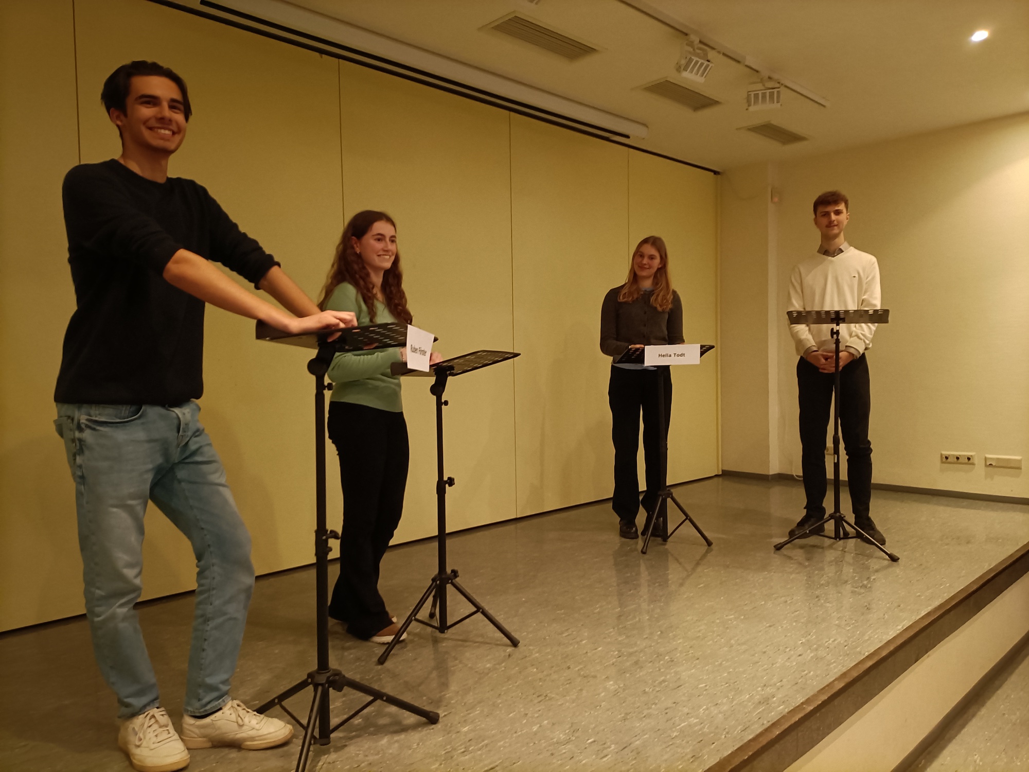 In der diesjährigen Runde des Schülerwettbewerbs Jugend debattiert bewiesen zahlreiche Taunusgymnasiastinnen und -gymnasiasten großes rhetorisches Talent. Ruben Förster aus der Q4 gelang dabei der Hattrick: Er gewann Ende Januar zum dritten Mal den Schulwettbewerb. Darüber hinaus entschied er am 8.2.2024 auch den Regionalwettbewerb der Oberstufe für sich, knapp vor Hella Todt (ebenfalls aus der Q4), die den zweiten Platz belegte. Beide haben als Preis die Teilnahme an einem mehrtägigen professionellen Rhetoriktraining in Wiesbaden gewonnen und werden das Taunusgymnasium auch im Landeswettbewerb vertreten. Der Regionalwettbewerb mit Schülern aus vier weiteren Schulen der Region Taunus/Wetterau fand dieses Jahr ebenfalls am TGK statt. Hier war als dritter Taunusgymnasiast auch Thomas Majer (Q4) mit dabei, der sich im Schulfinale vor Tom Jehle (Q2) einen geteilten zweiten Platz mit Hella Todt sichern konnte.