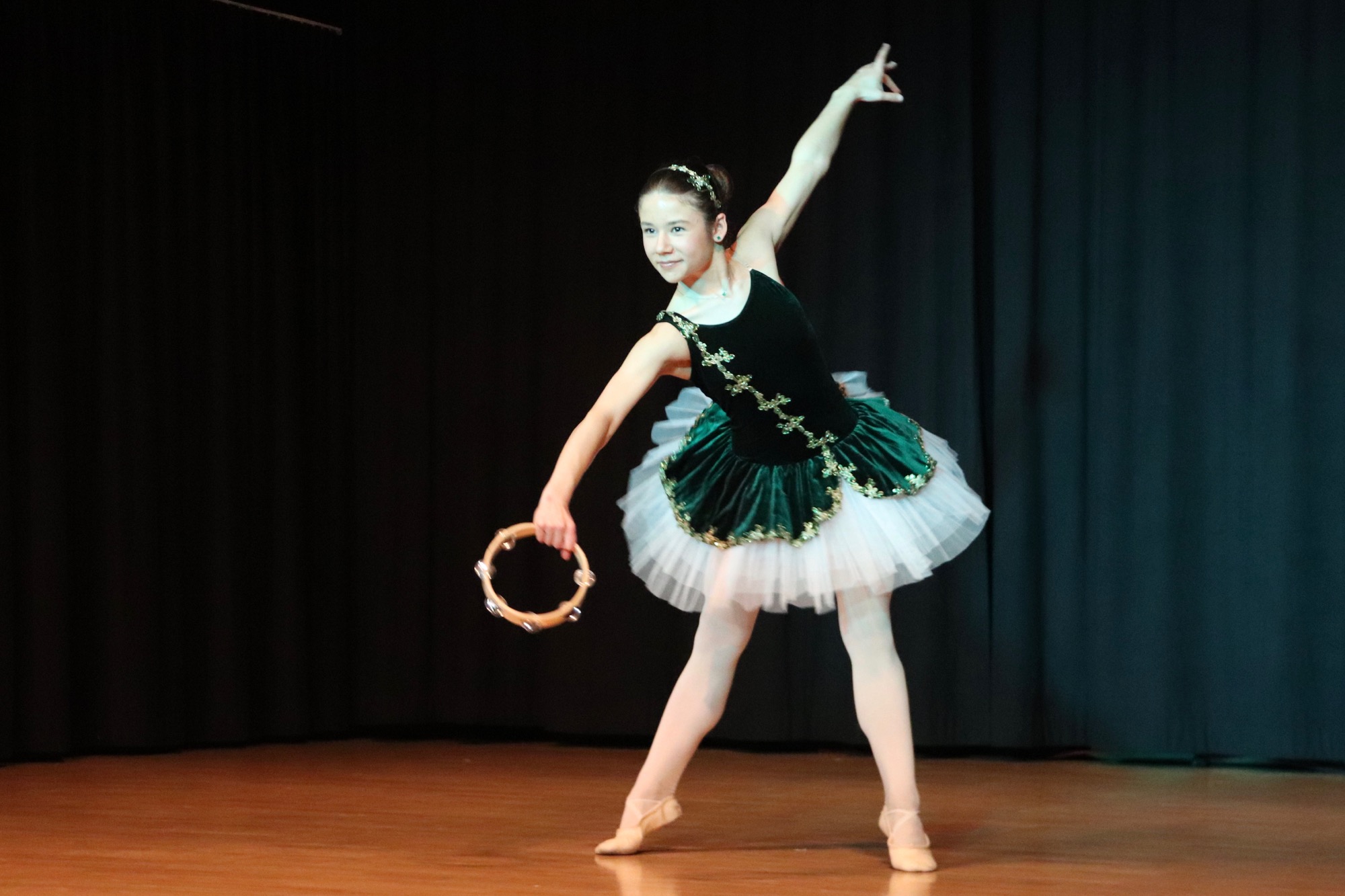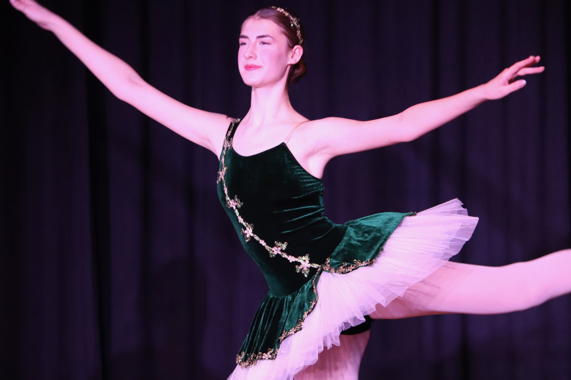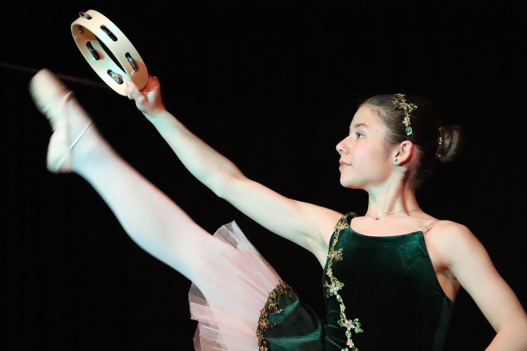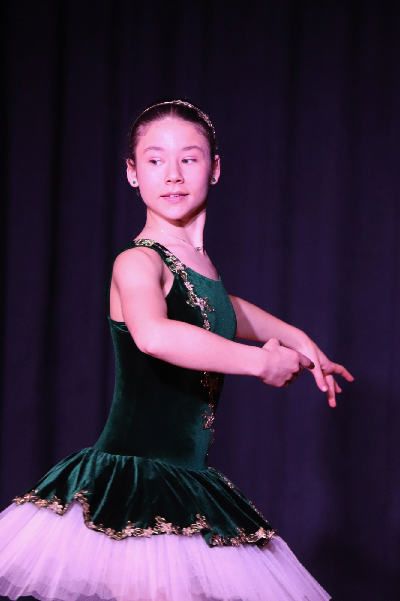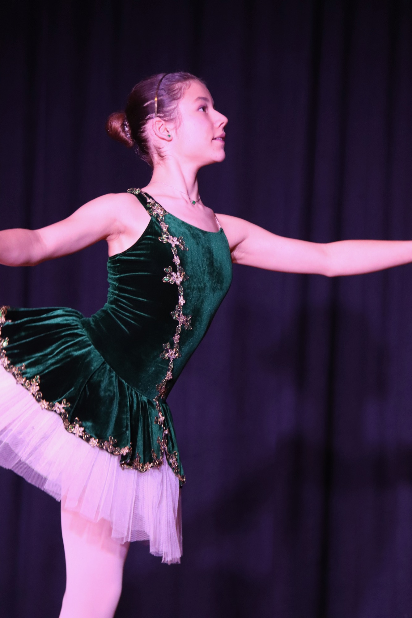 Ksenia Blazhko (6c), die zuvor bereits im Duett getanzt hatte, bezauberte nun mit einem Ballett-Solo aus „Esmeralda“ von Cesare Pugni, bei dem sie ihr hohes tänzerisches Niveau erneut unter Beweis stellte. Sie kommt aus der Ukraine und erhielt dort auch ihre tänzerische Ausbildung.