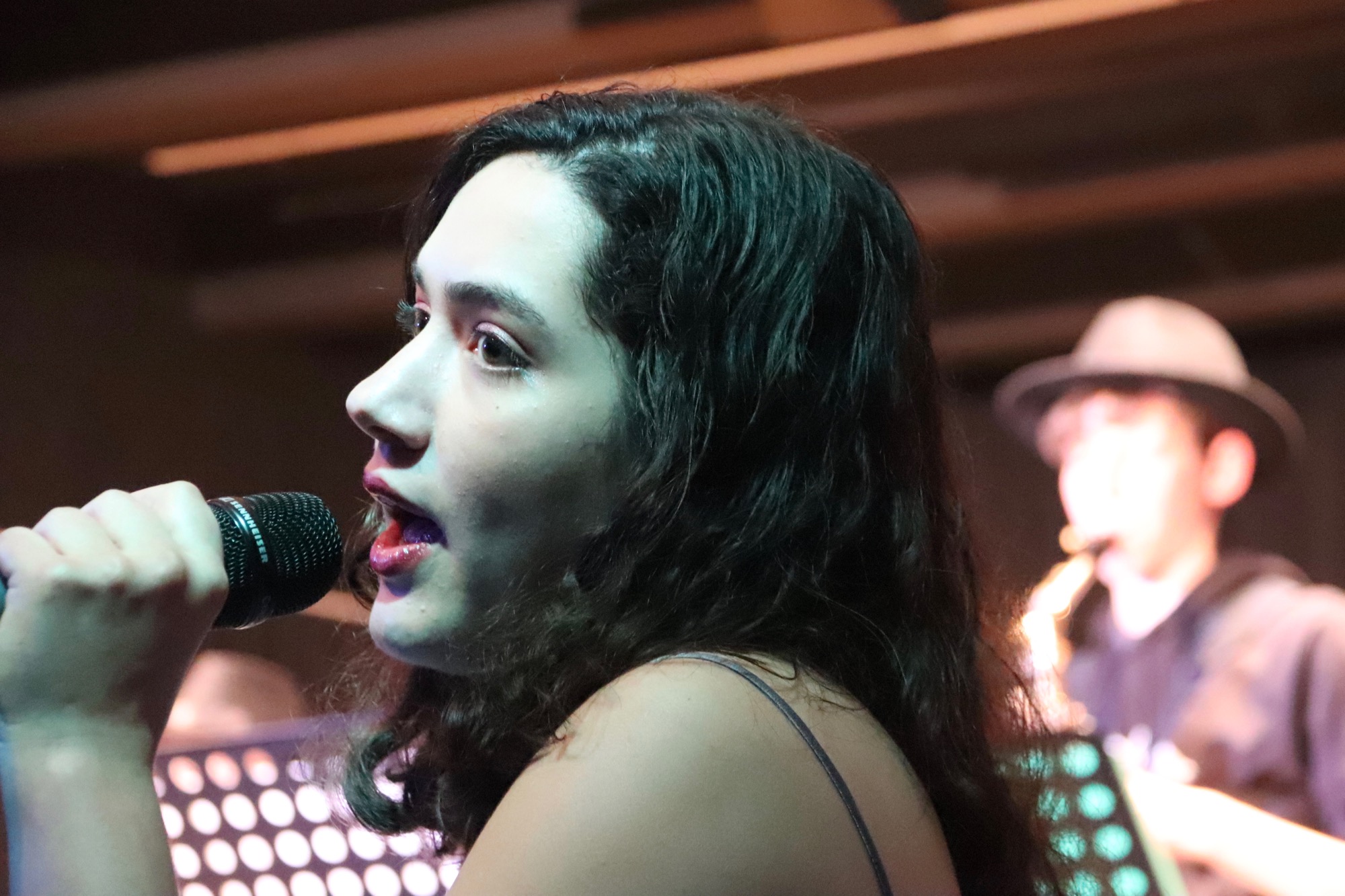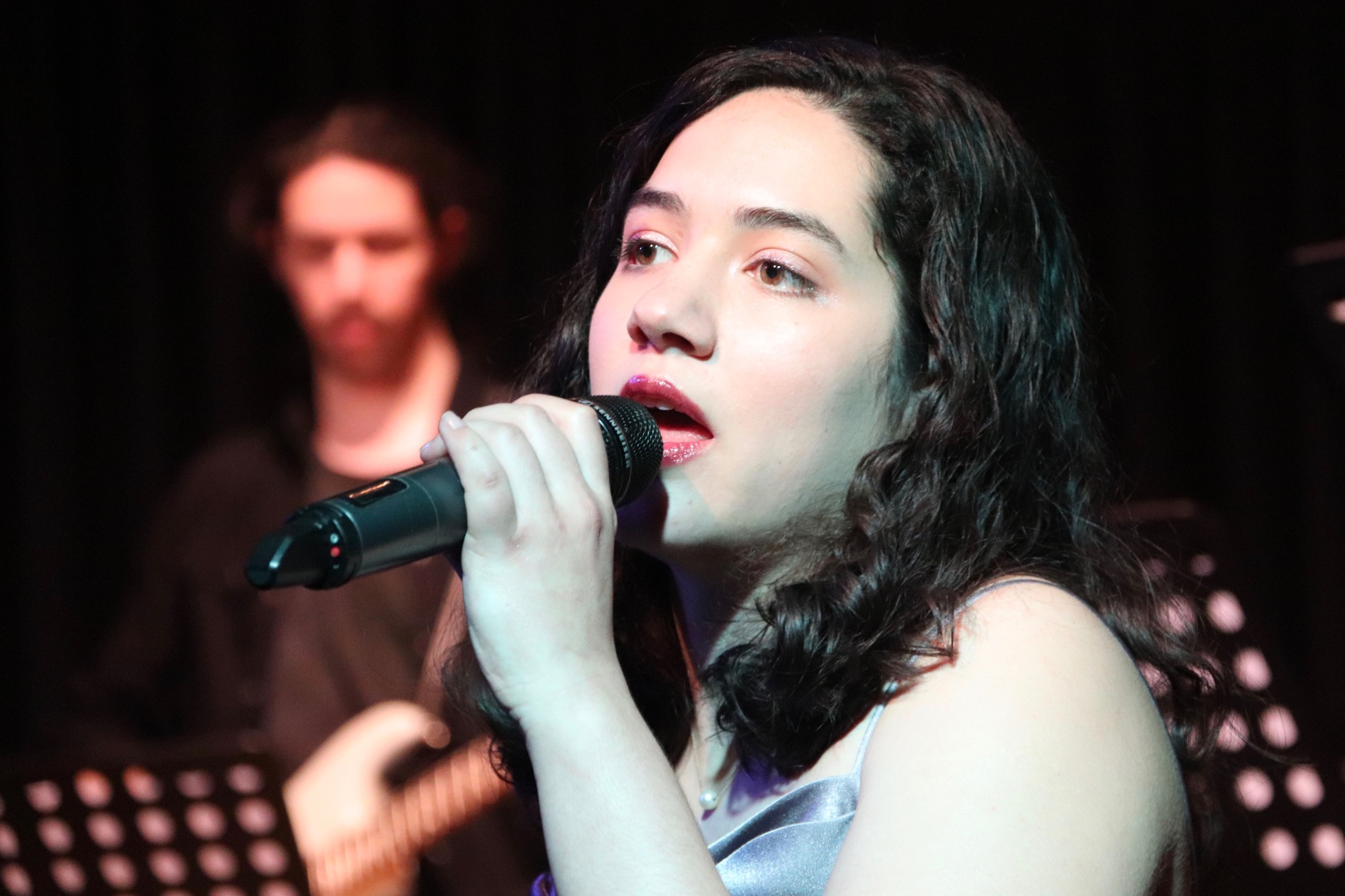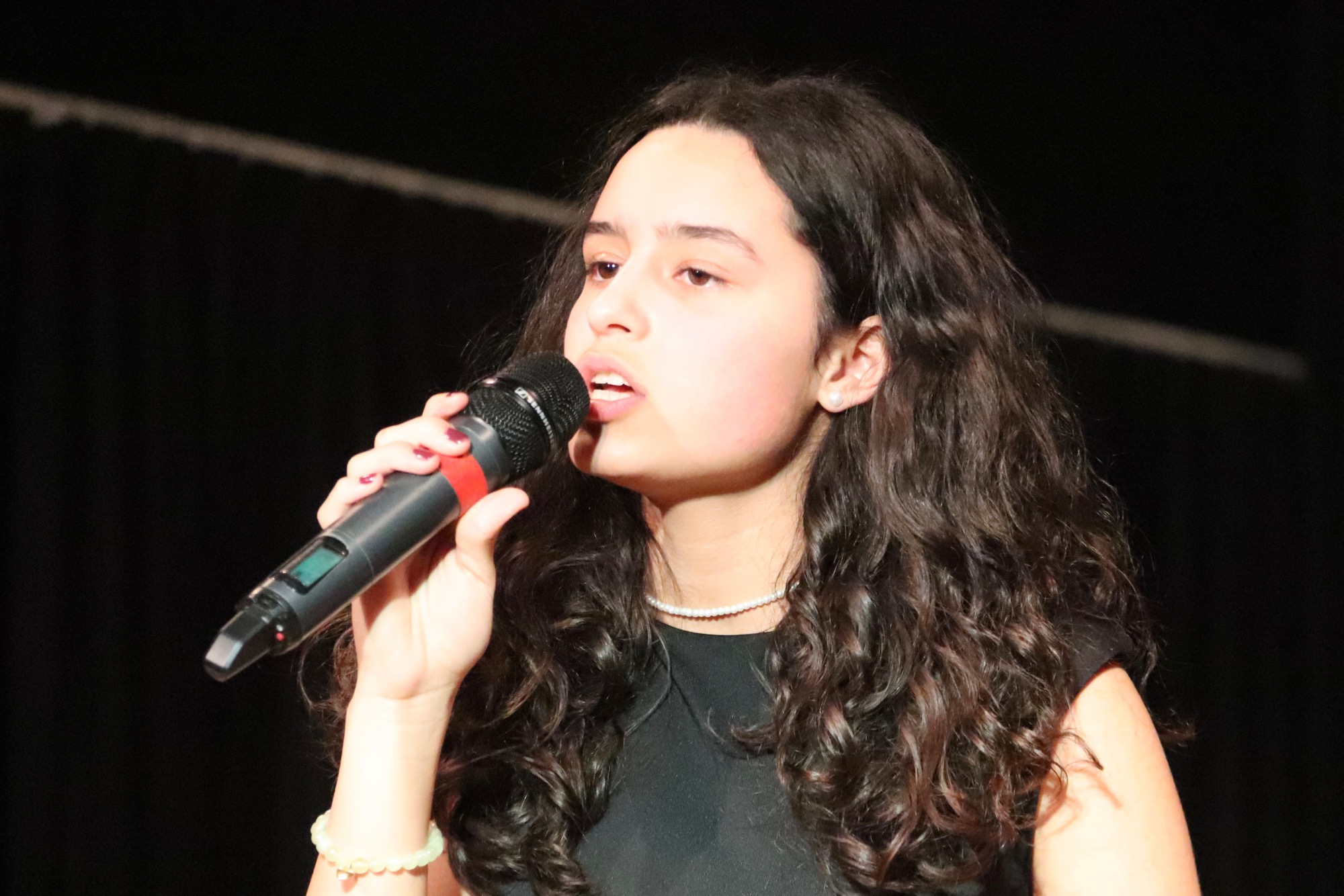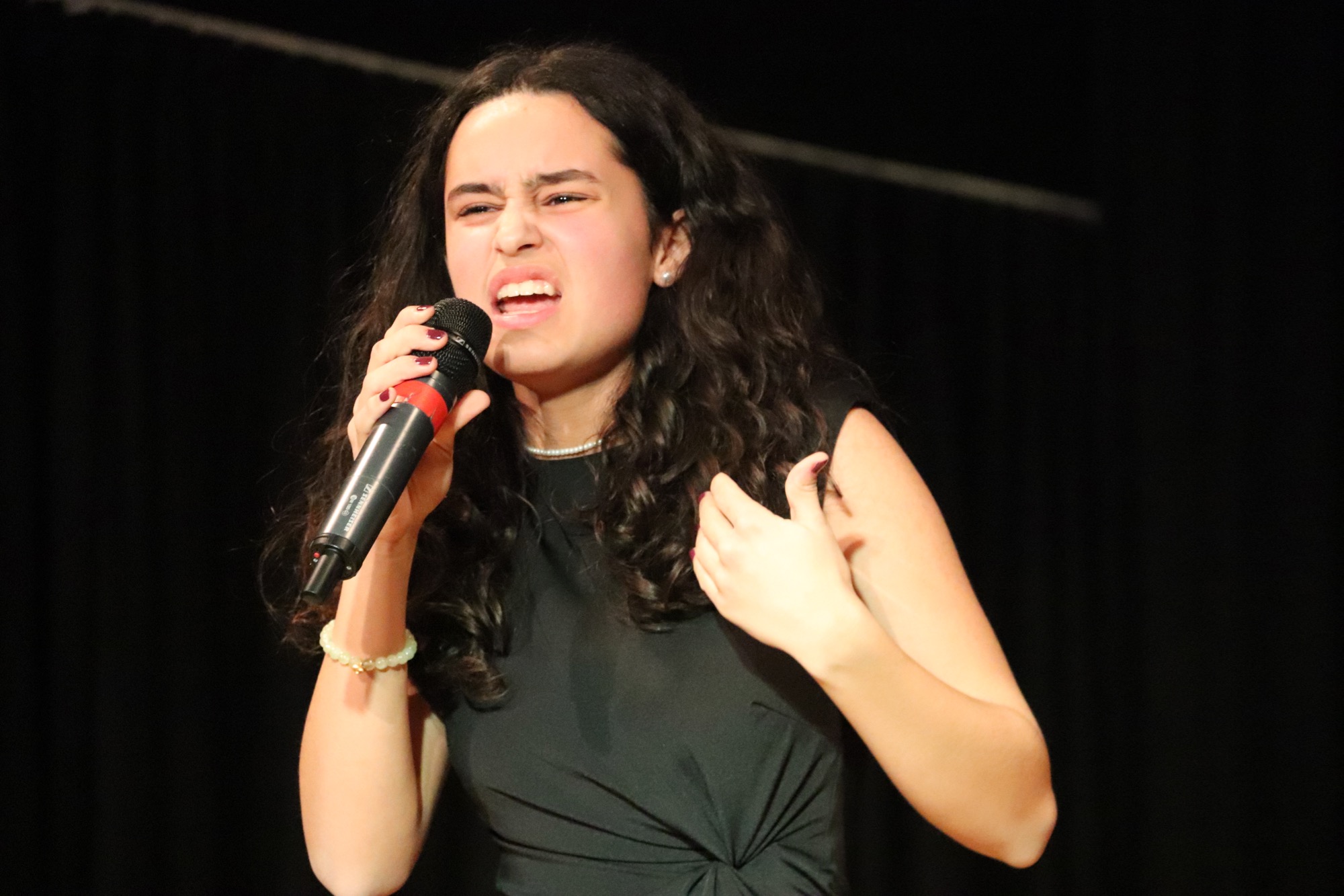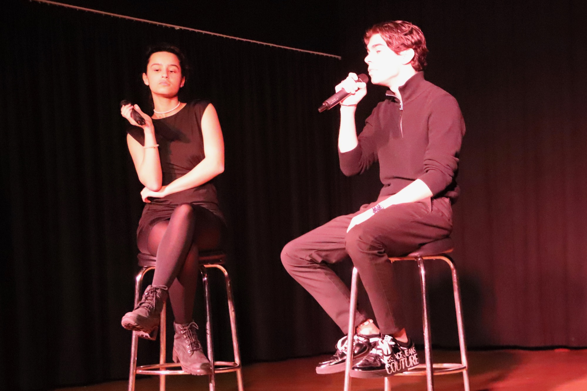 Soraya Wingenter (8f) und Lucio Ramírez del Prado Vetter (Q2) kehrten auf die Bühne zurück und boten eine ganz neue, dramaturgisch und gesanglich hinreißende Version des Klassikers „Hit The Road, Jack“ von Ray Charles dar; auch hier begleitete gekonnt Elias Leemüller am Flügel.