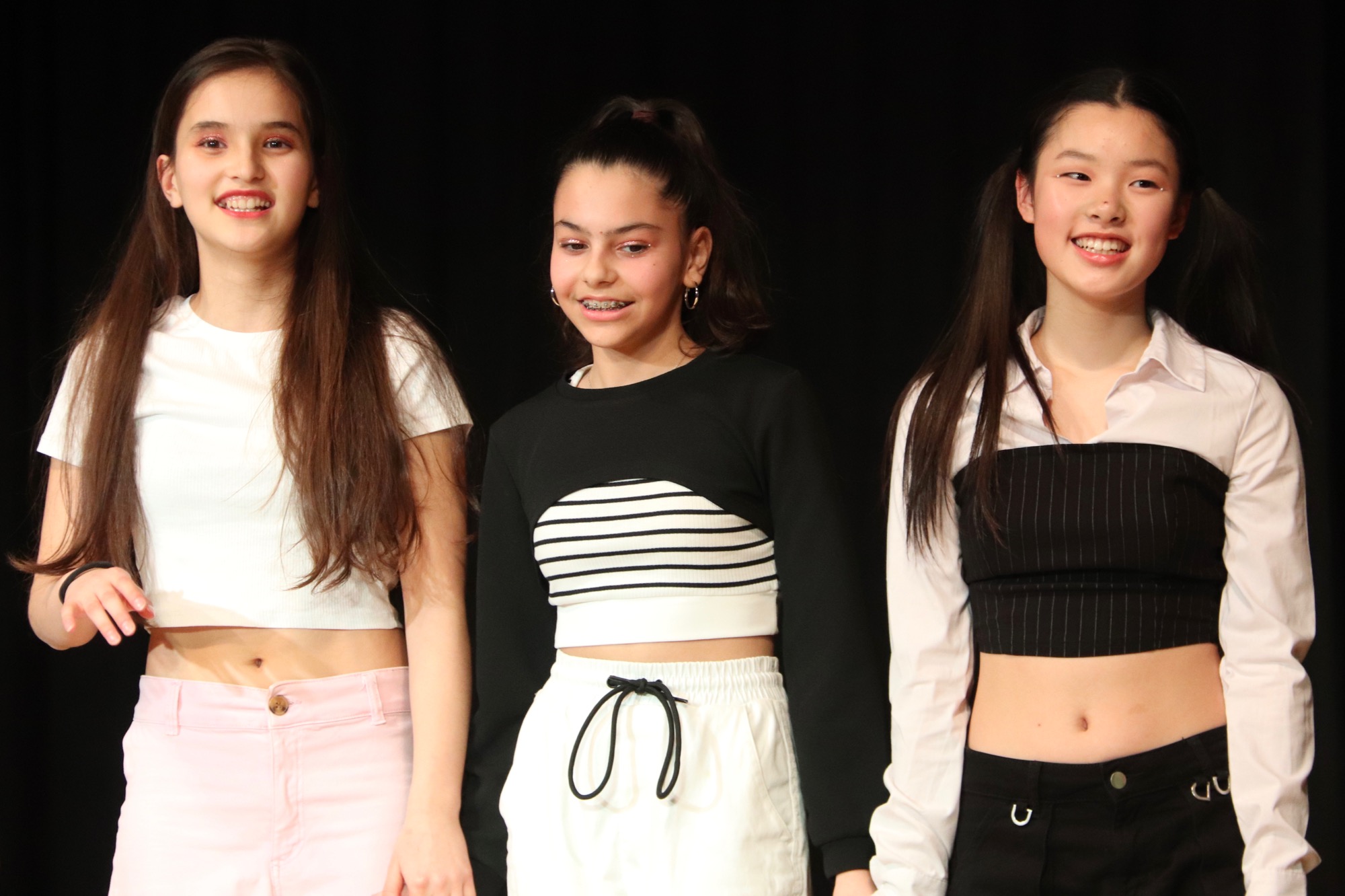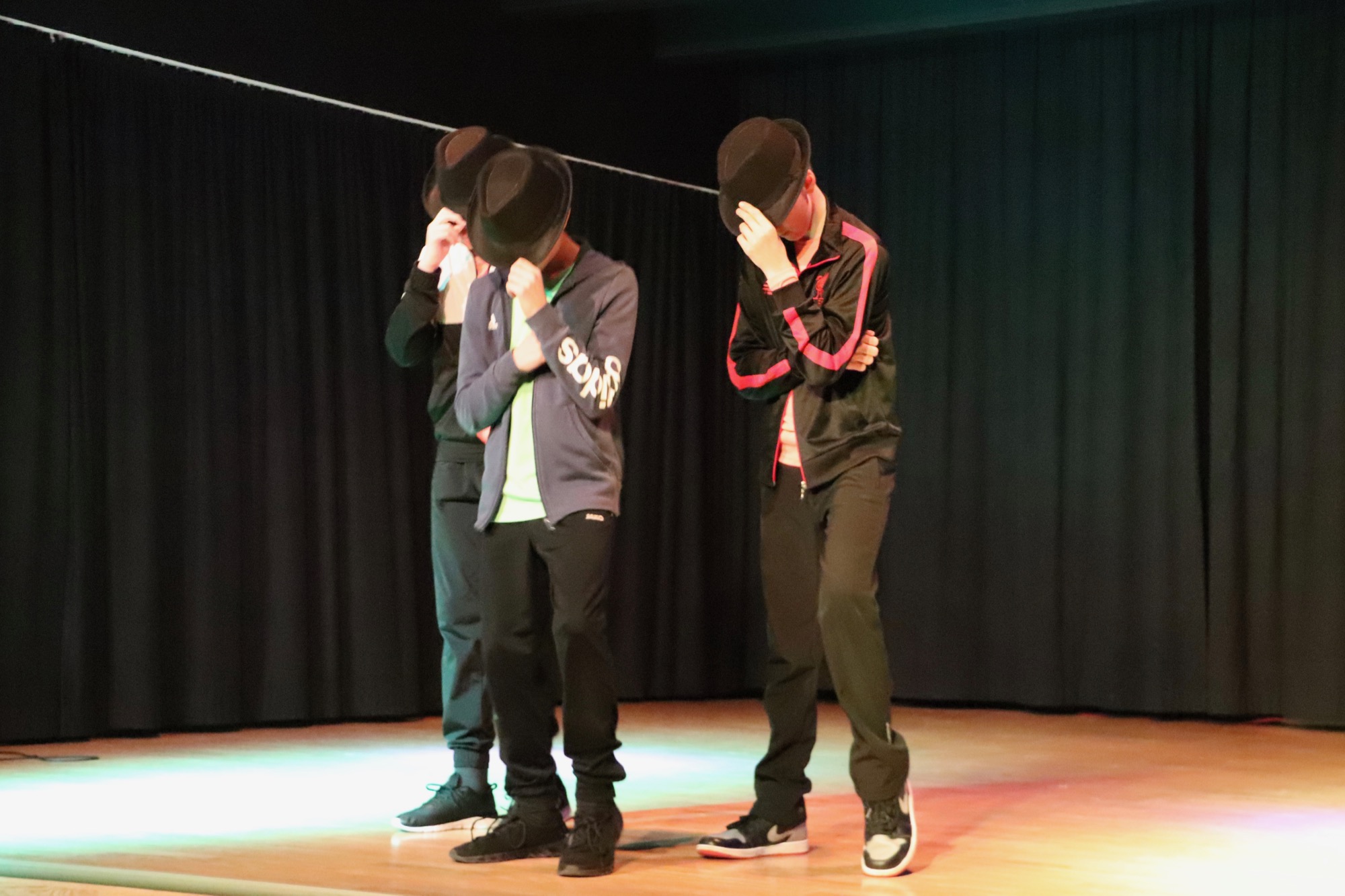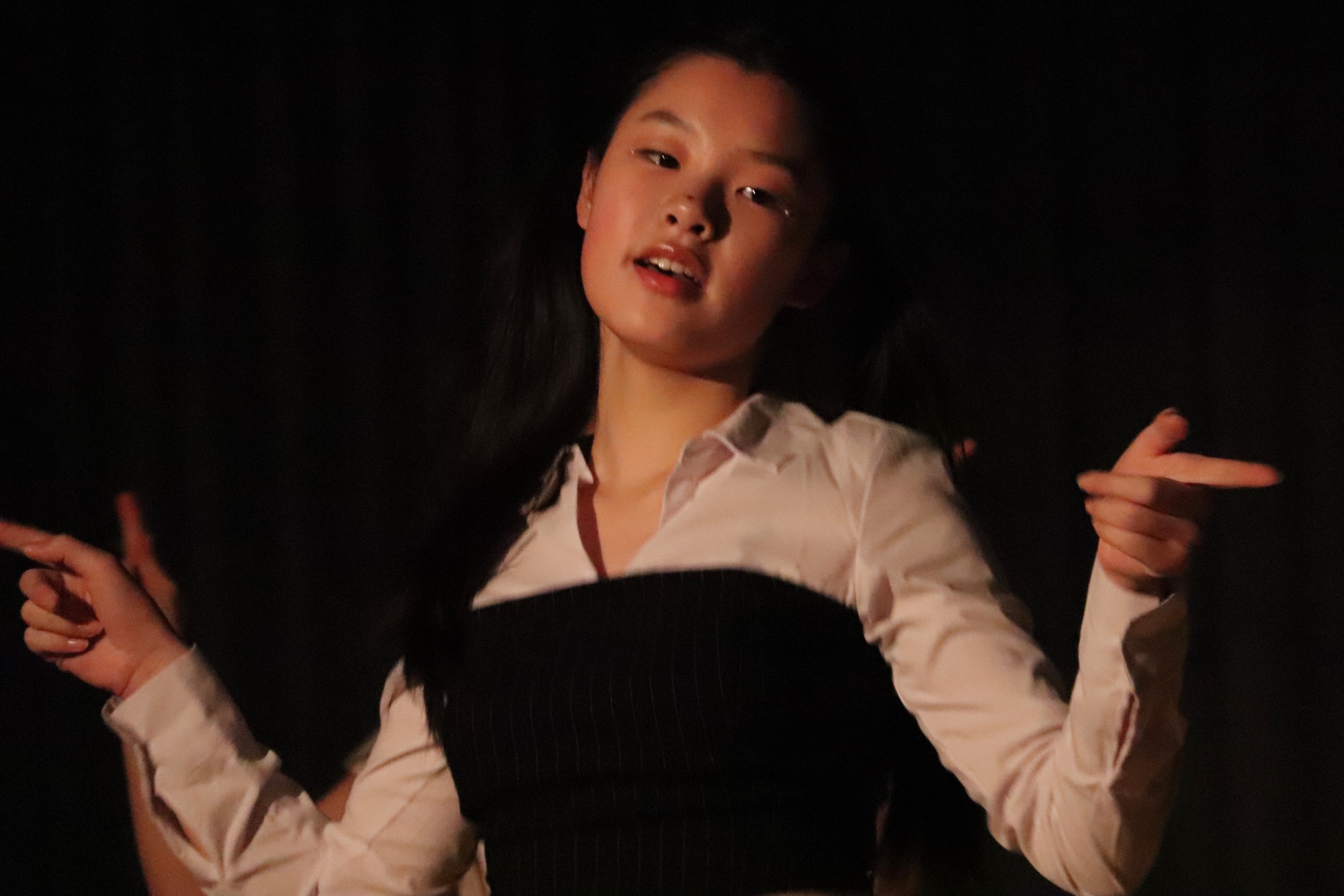 Die Kunstform Tanz stellt seit jeher eine wichtige Säule des Kul(tur)inarischen Abends dar – und auch dieses Jahr gab es davon eine große Bandbreite zu genießen. Denn unterschiedlicher konnten die Tanzstile der nun folgenden Künstler*innen kaum sein: Von Latin über Hip-Hop und Ballett bis hin zu Contemporary Dance entfaltete sich die Vielfalt dieser Kunstform auf der Bühne des Theaterraums. Die Geschwister Raphael Jähnig (6e) und Victoria Jähnig (als Gast) zeigten ihr hohes Niveau im Showtanz Latein – von der Körperspannung über die Choreographie bis hin zu den Kostümen eine professionell anmutende Darbietung. Mit den drei nun folgenden Tanzgruppen konnten die Zuschauer etwas Après-Ski-Luft schnuppern: Die Siebtklässler*innen zeigten ihre tänzerischen Darbietungen, mit denen sie bei der Schneesport-Woche in Wolkenstein angetreten waren – mit Hip-Hop-Moves brachten Felix Dölken, Felix Küls und Konstantin Sattler (alle 7a) Stimmung in den Saal; Dorothee Becker und Larissa Künne (beide 7f) bezauberten mit einer anmutigen zeitgenössischen Choregraphie – und Hanna Jang, Naelle Kim und Alisa Sarkisyan (alle 7f) zeigten ihren lässigen Videoclip-Dance. Das Publikum klatschte eifrig mit.
