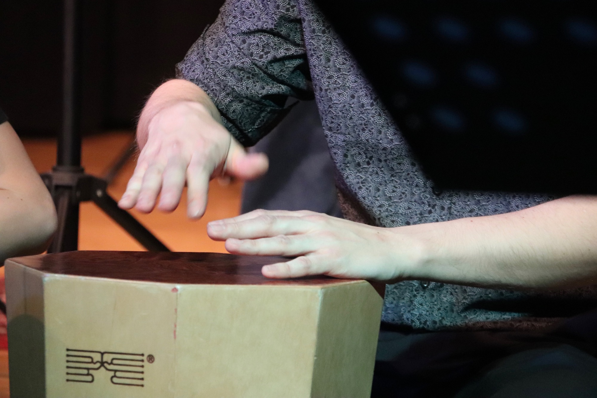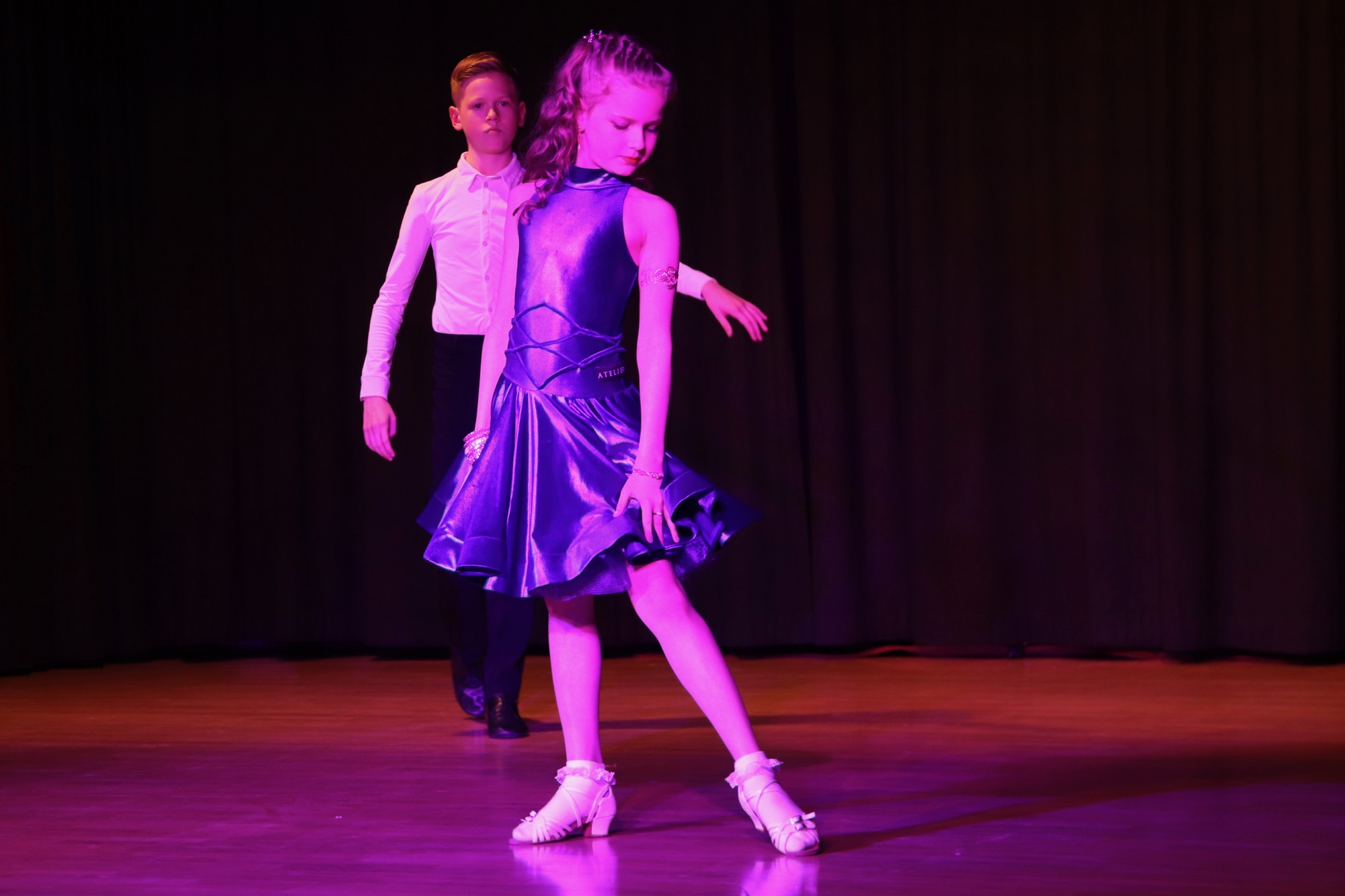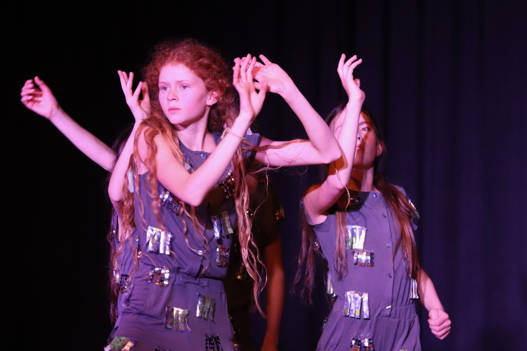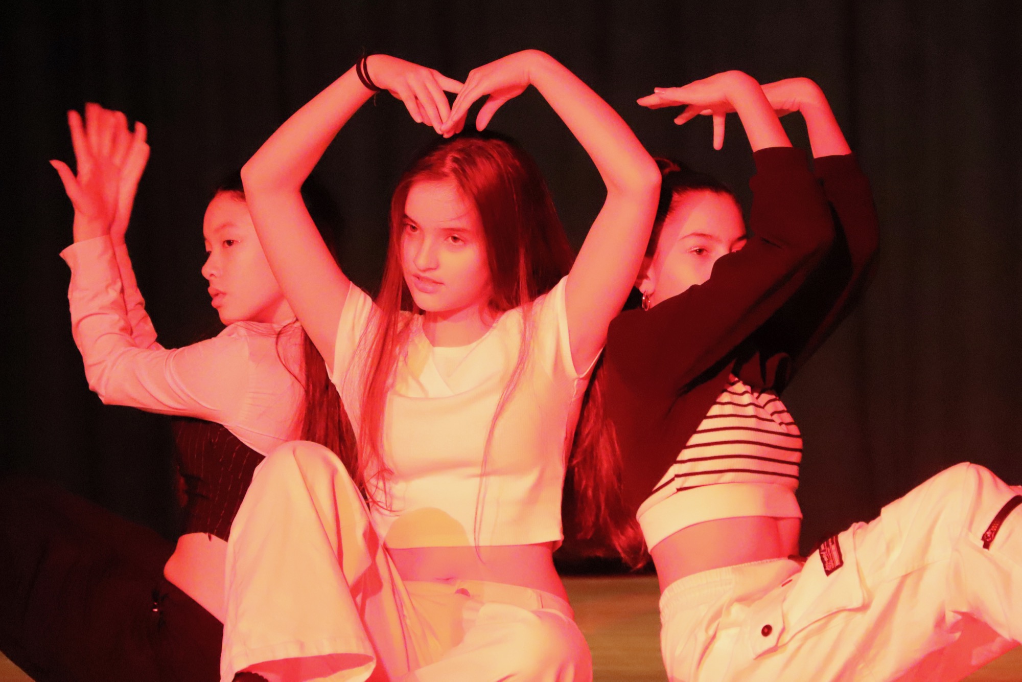 Die Kunstform Tanz stellt seit jeher eine wichtige Säule des Kul(tur)inarischen Abends dar – und auch dieses Jahr gab es davon eine große Bandbreite zu genießen. Denn unterschiedlicher konnten die Tanzstile der nun folgenden Künstler*innen kaum sein: Von Latin über Hip-Hop und Ballett bis hin zu Contemporary Dance entfaltete sich die Vielfalt dieser Kunstform auf der Bühne des Theaterraums. Die Geschwister Raphael Jähnig (6e) und Victoria Jähnig (als Gast) zeigten ihr hohes Niveau im Showtanz Latein – von der Körperspannung über die Choreographie bis hin zu den Kostümen eine professionell anmutende Darbietung. Mit den drei nun folgenden Tanzgruppen konnten die Zuschauer etwas Après-Ski-Luft schnuppern: Die Siebtklässler*innen zeigten ihre tänzerischen Darbietungen, mit denen sie bei der Schneesport-Woche in Wolkenstein angetreten waren – mit Hip-Hop-Moves brachten Felix Dölken, Felix Küls und Konstantin Sattler (alle 7a) Stimmung in den Saal; Dorothee Becker und Larissa Künne (beide 7f) bezauberten mit einer anmutigen zeitgenössischen Choregraphie – und Hanna Jang, Naelle Kim und Alisa Sarkisyan (alle 7f) zeigten ihren lässigen Videoclip-Dance. Das Publikum klatschte eifrig mit.