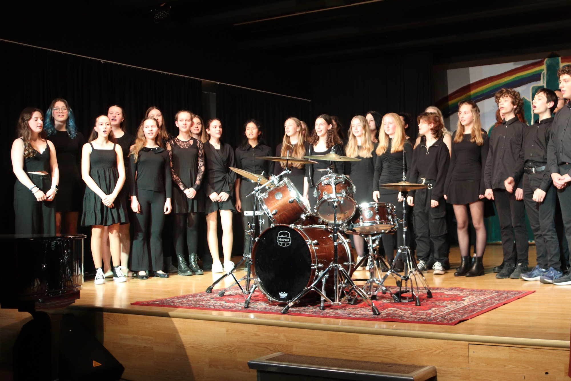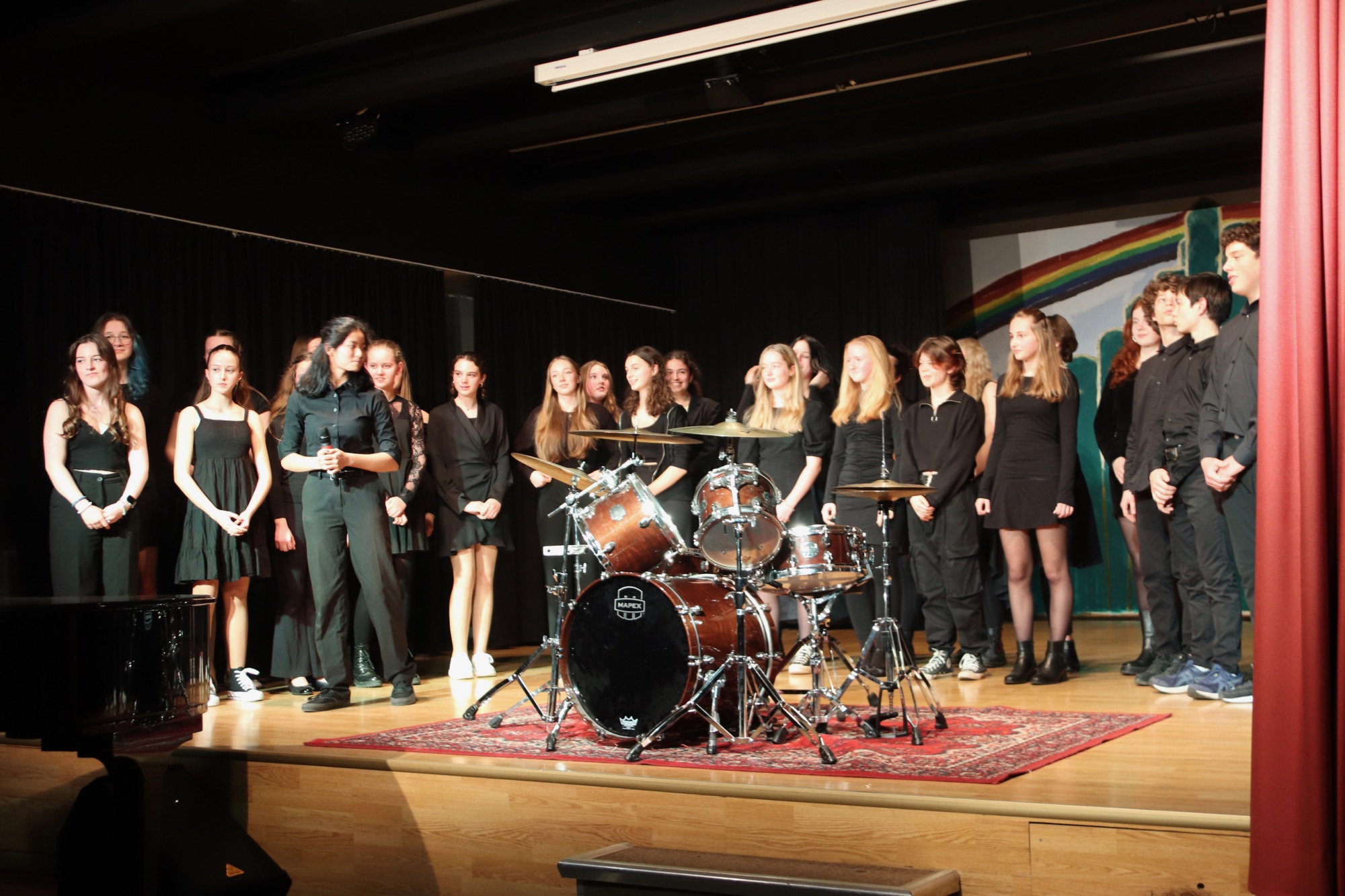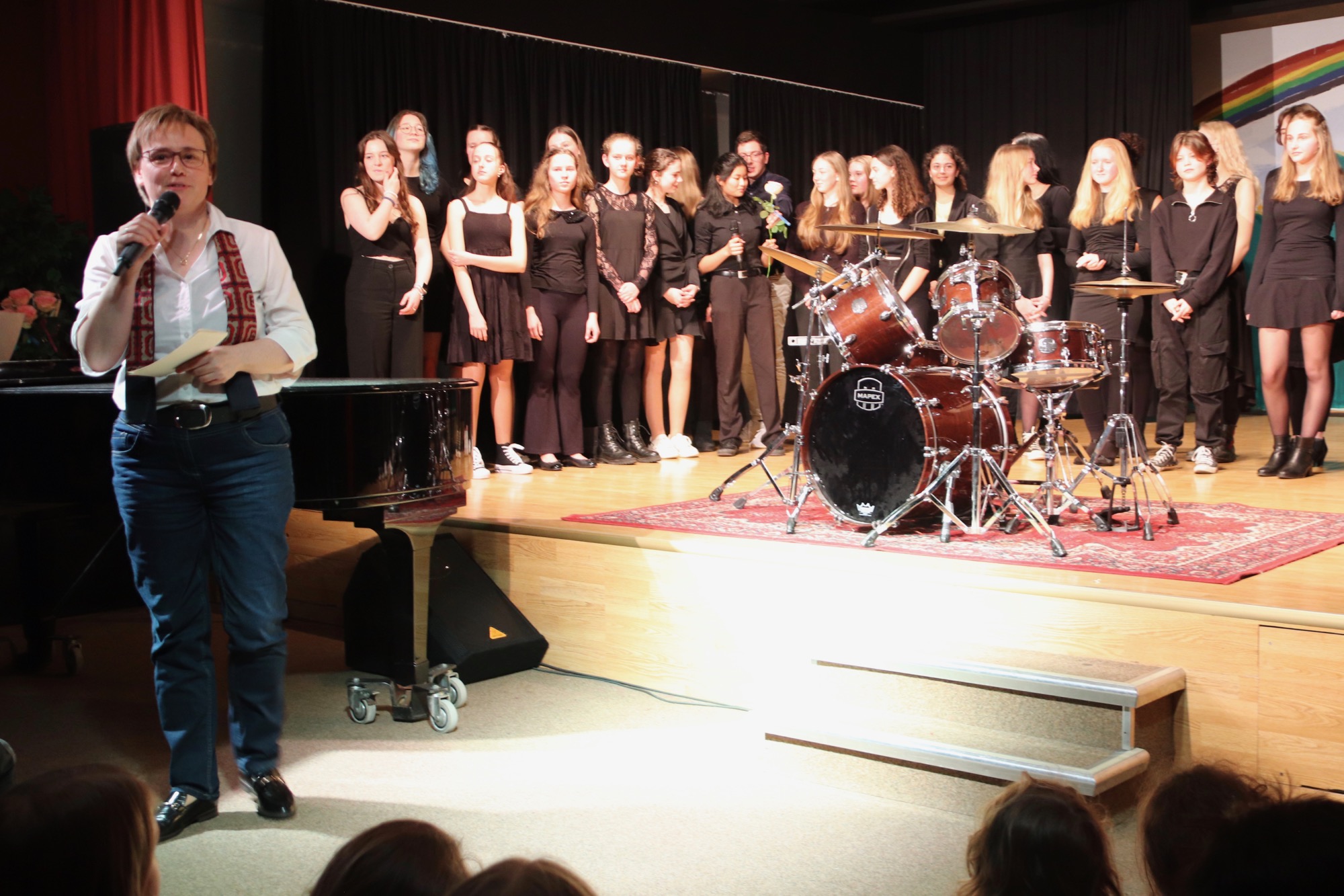 Zu einem Wohlfühl-Finale verhalf schließlich der große Chor „Taunus Tunes“ unter Leitung von Herrn Franke, der sich den Bob-Marley-Hit „One Love“ vorgenommen hatte und ihn mitreißend interpretierte; den Solo-Gesang übernahm Emi Phawarie Kanithasen (9f), Herr Franke begleitete am Flügel.