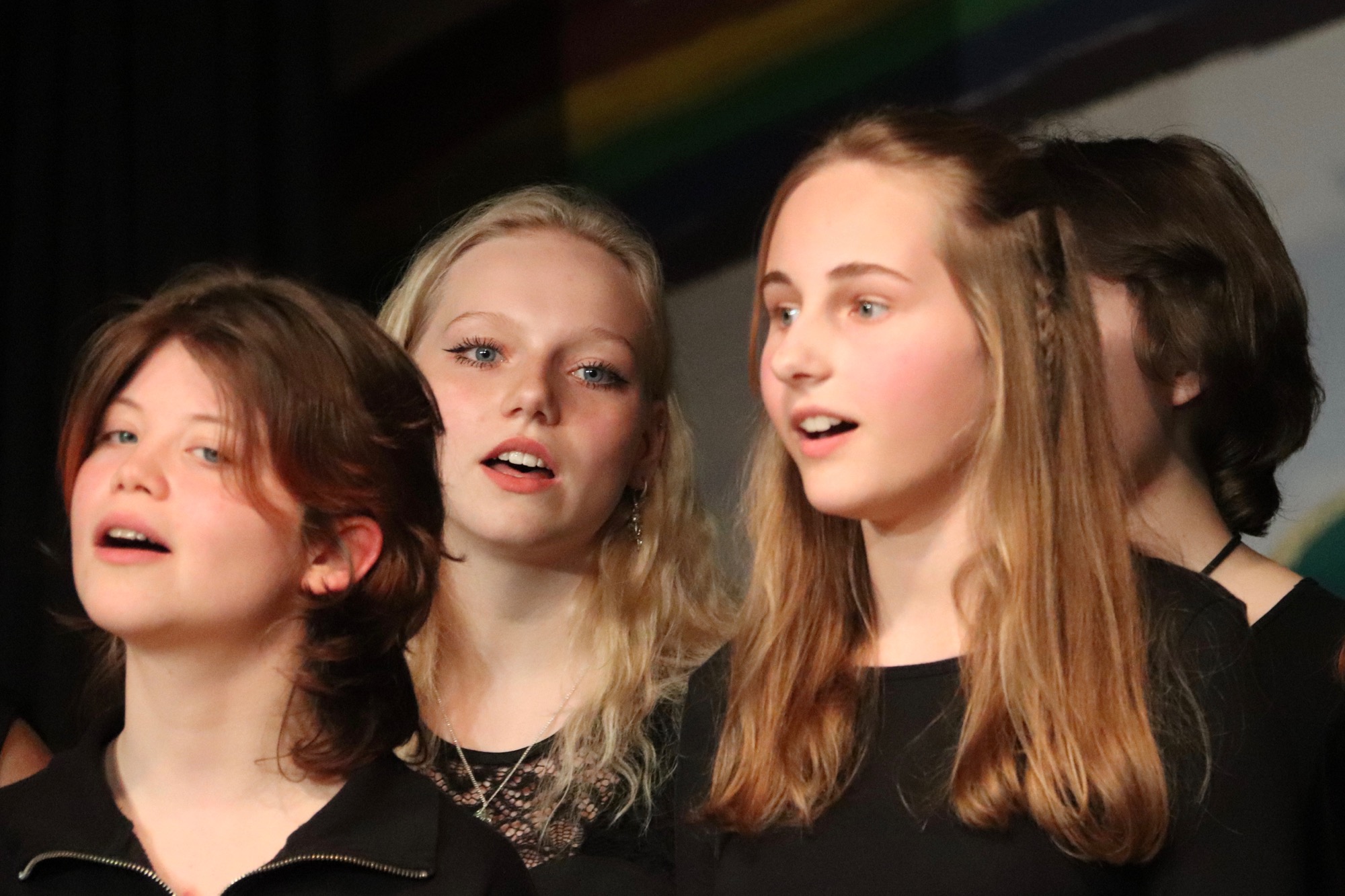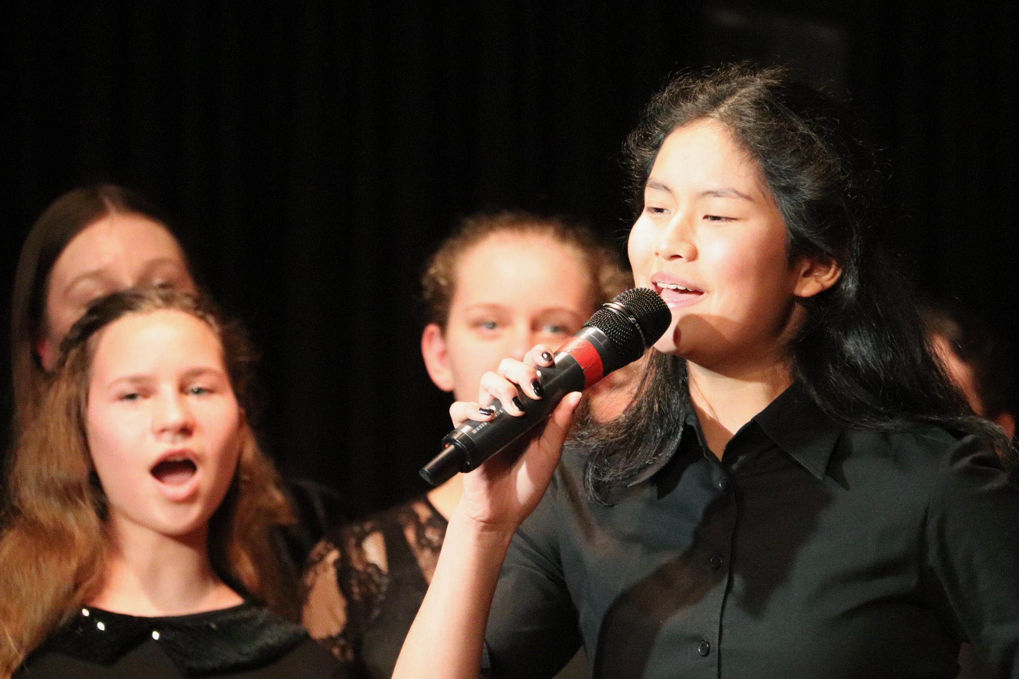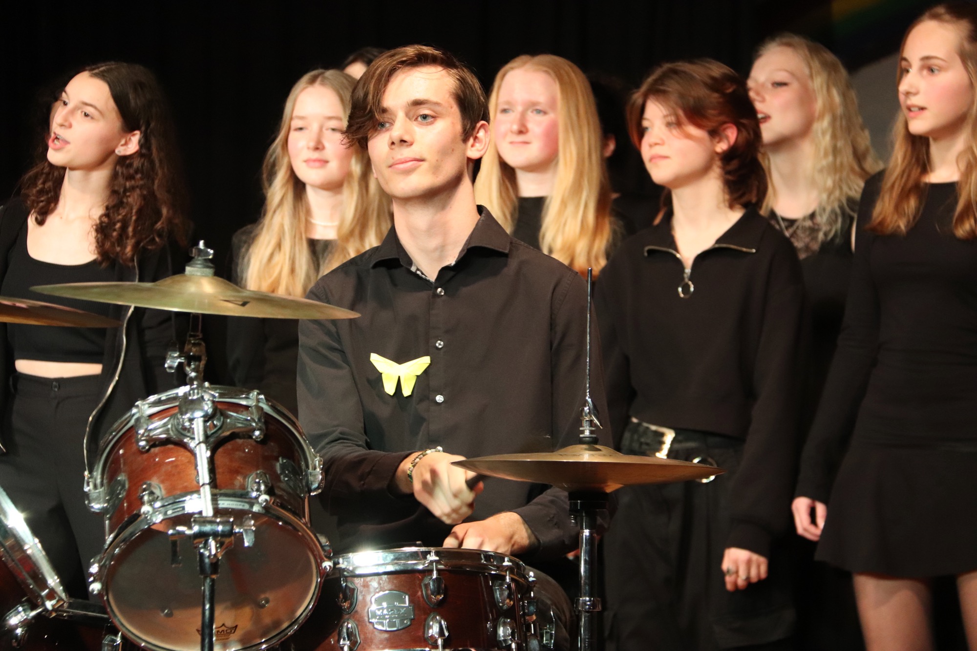 Zu einem Wohlfühl-Finale verhalf schließlich der große Chor „Taunus Tunes“ unter Leitung von Herrn Franke, der sich den Bob-Marley-Hit „One Love“ vorgenommen hatte und ihn mitreißend interpretierte; den Solo-Gesang übernahm Emi Phawarie Kanithasen (9f), Herr Franke begleitete am Flügel.