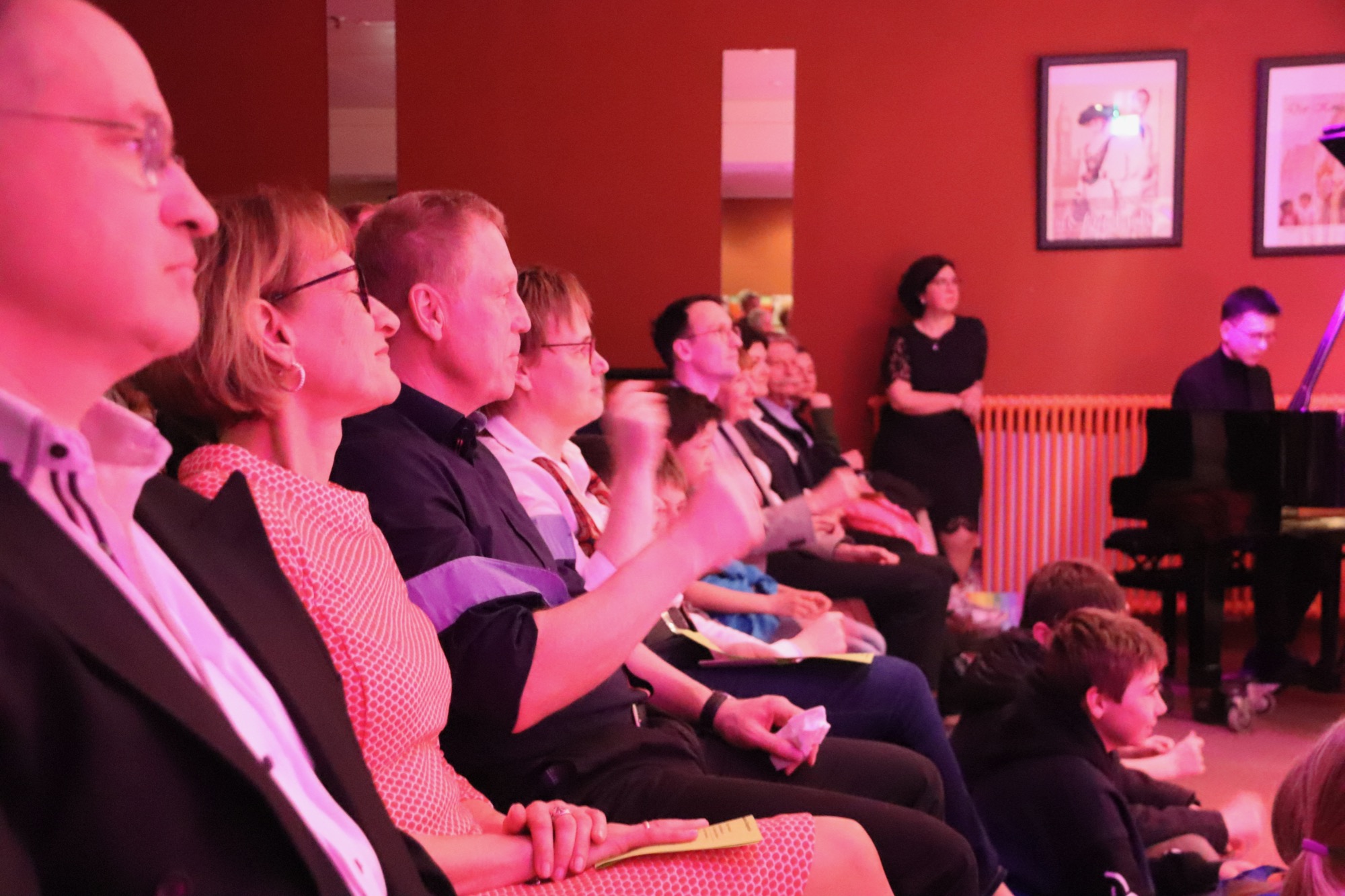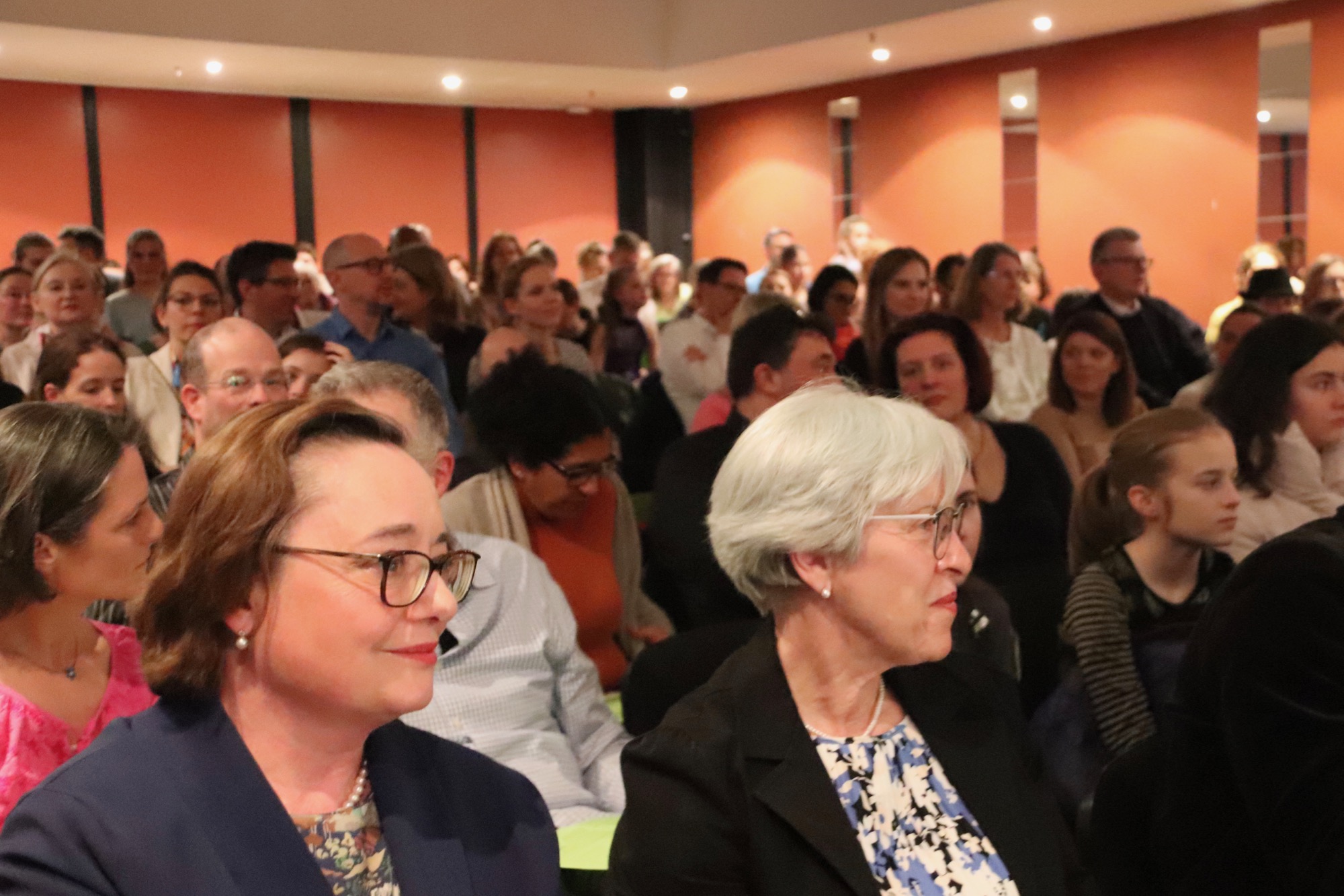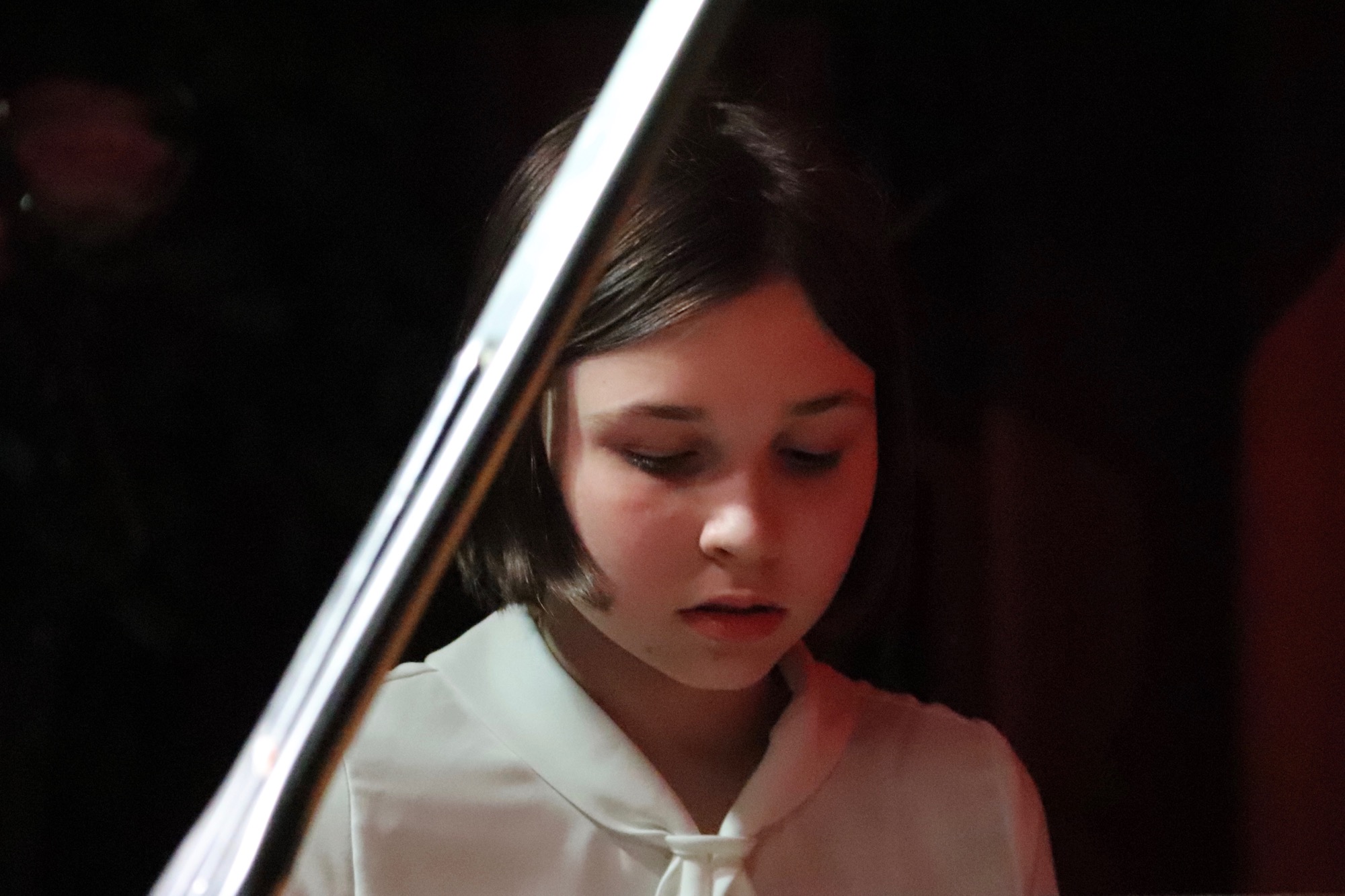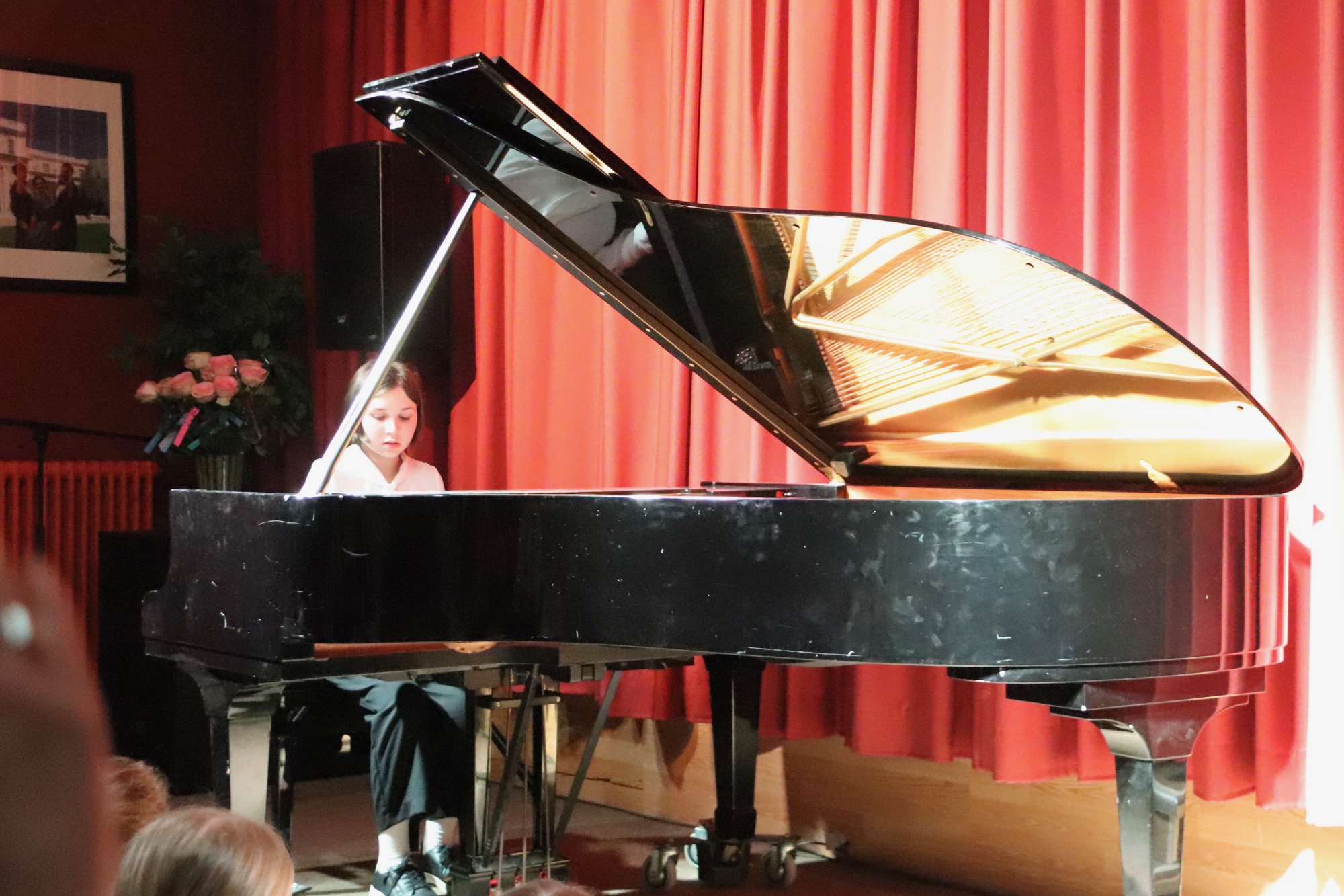 Catarina von Hoffmeister (6e) verzauberte das Publikum mit den „Variationen über ein Thema von Paganini“ von Isaak Berkowitsch am Flügel. Anschließend beeindruckten Tara Grimm (E2) an der Violine, Carlotta Hembach (als Gast) ebenfalls an der Violine und Frau Dr. Eden am Flügel mit dem anspruchsvollen 1. Satz aus dem Doppelkonzert für zwei Violinen und Klavier (BWV 1043) von Johann Sebastian Bach.