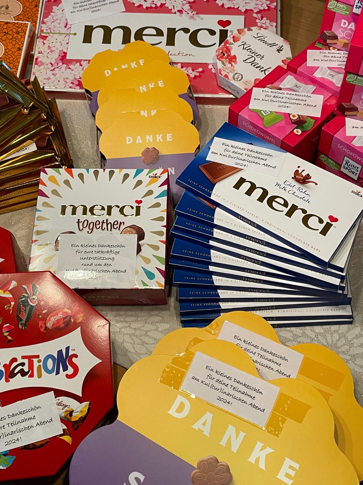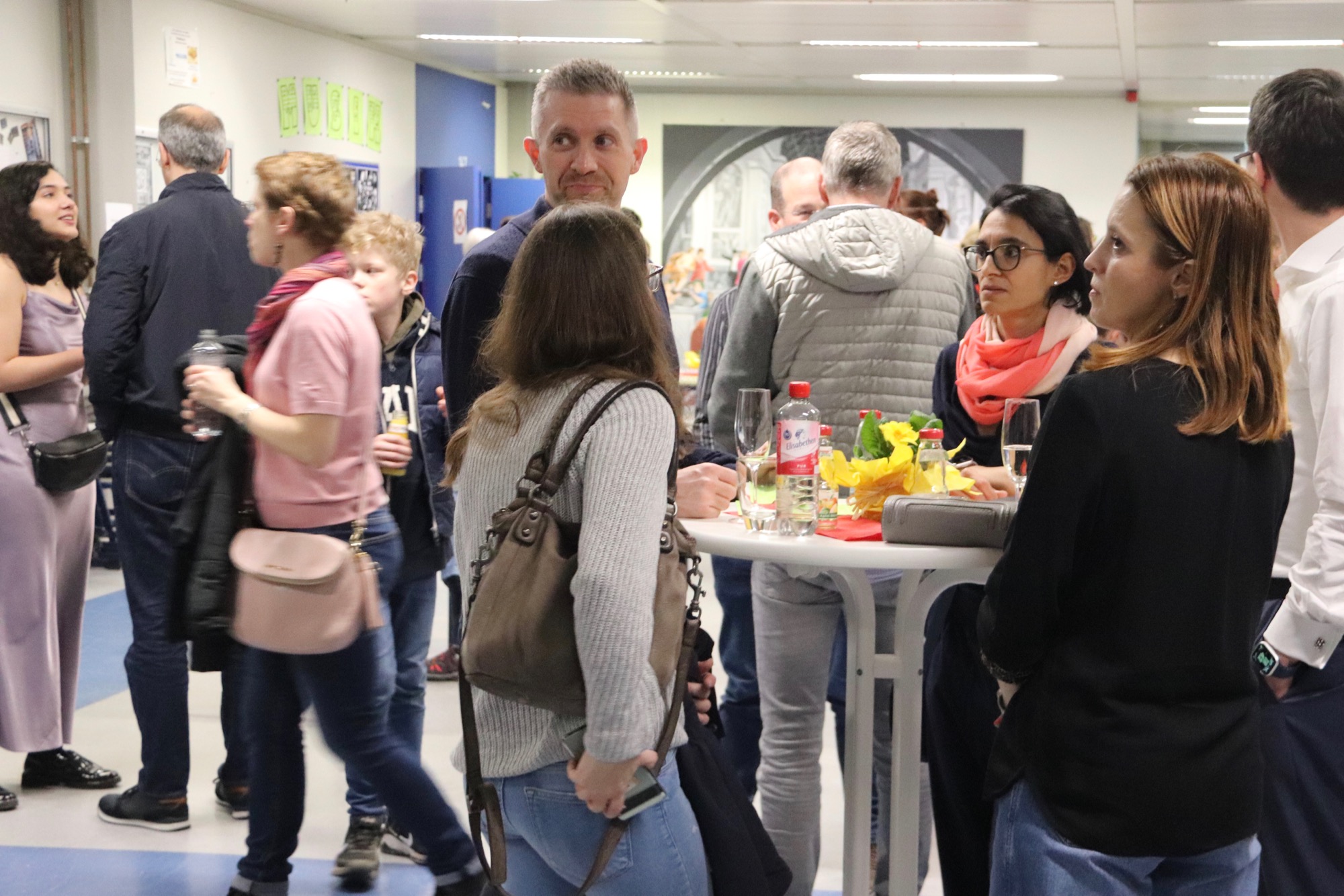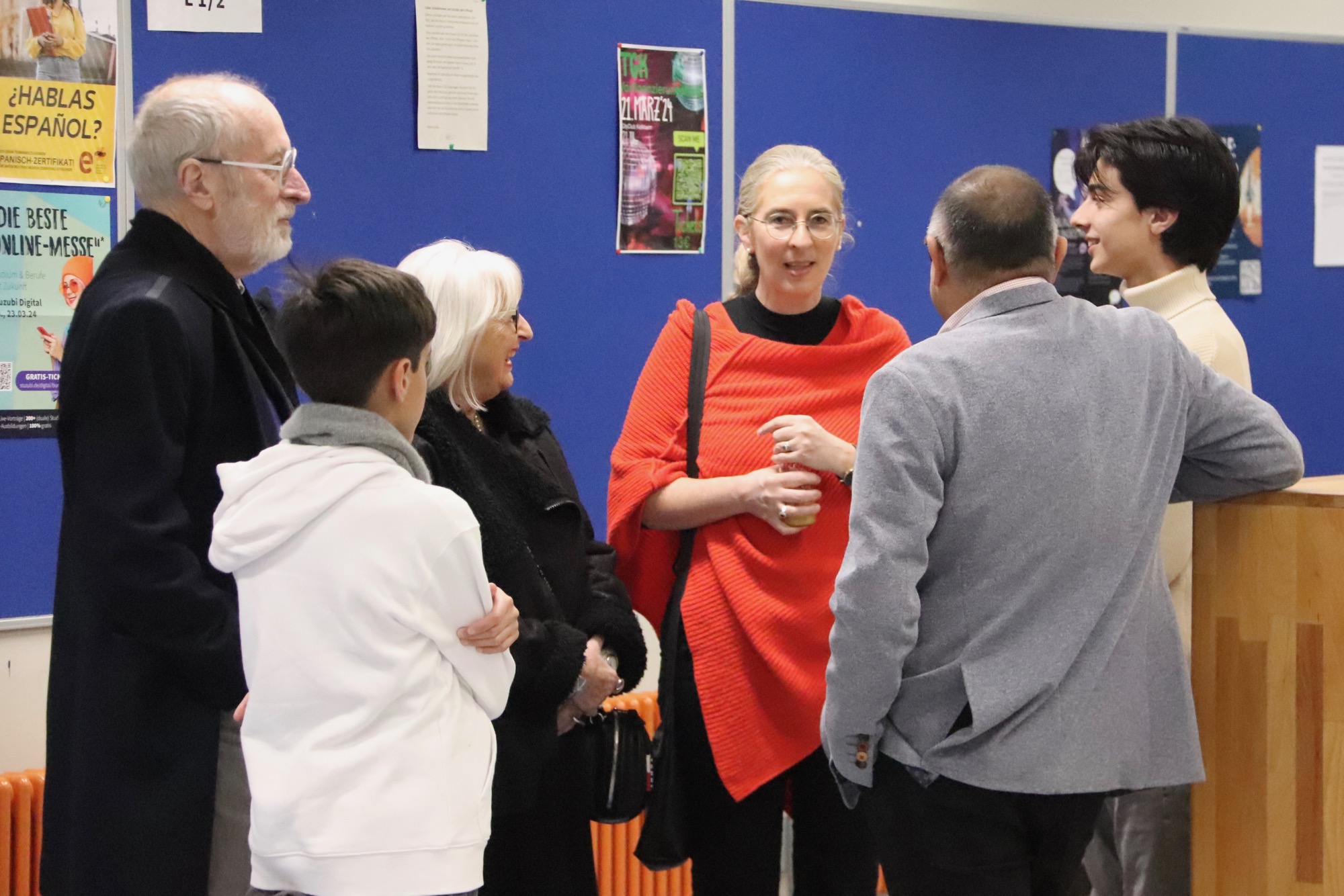 Nachdem die stellvertretende Schulleiterin Frau Koch den beiden Organisatoren Frau Antony und Herrn Rauschmayer für den gelungenen und umsichtig geplanten Abend gedankt hatte und den beiden zusammen mit Herrn Linke riesige Blumensträuße überreicht hatte, ging es ein Stockwerk tiefer in der Cafeteria weiter: Der kulinarische Teil des Abends konnte beginnen. Frau Hellbach, Frau Milke, Frau Stahl-Nessler, Frau Draheim und zahlreiche Helfer*innen aus dem WoB-Team sowie aus dem Abiturjahrgang 2025 hatten leckere Antipasti-Teller vorbereitet, die zu einer feinen Getränke-Auswahl genossen wurden. Gegen Spenden konnten auch Kuchen und Quiches genossen werden. Und so wurde in stimmungsvoller Atmosphäre noch lange über die zahlreichen Talente geplaudert, die das Taunusgymnasium immer wieder hervorbringt, und die oft erstmals am Kul(tur)inarischen Abend zum Vorschein kommen. (Rmy)