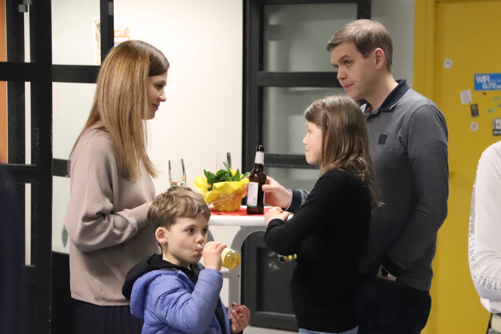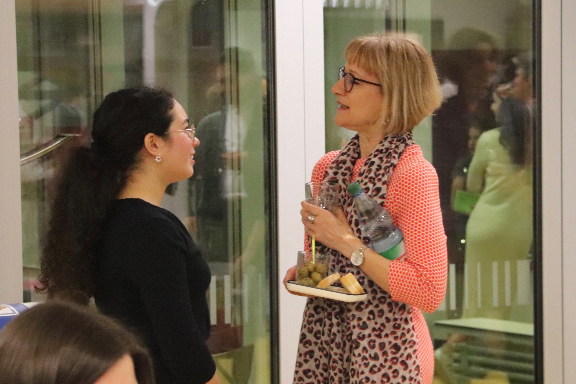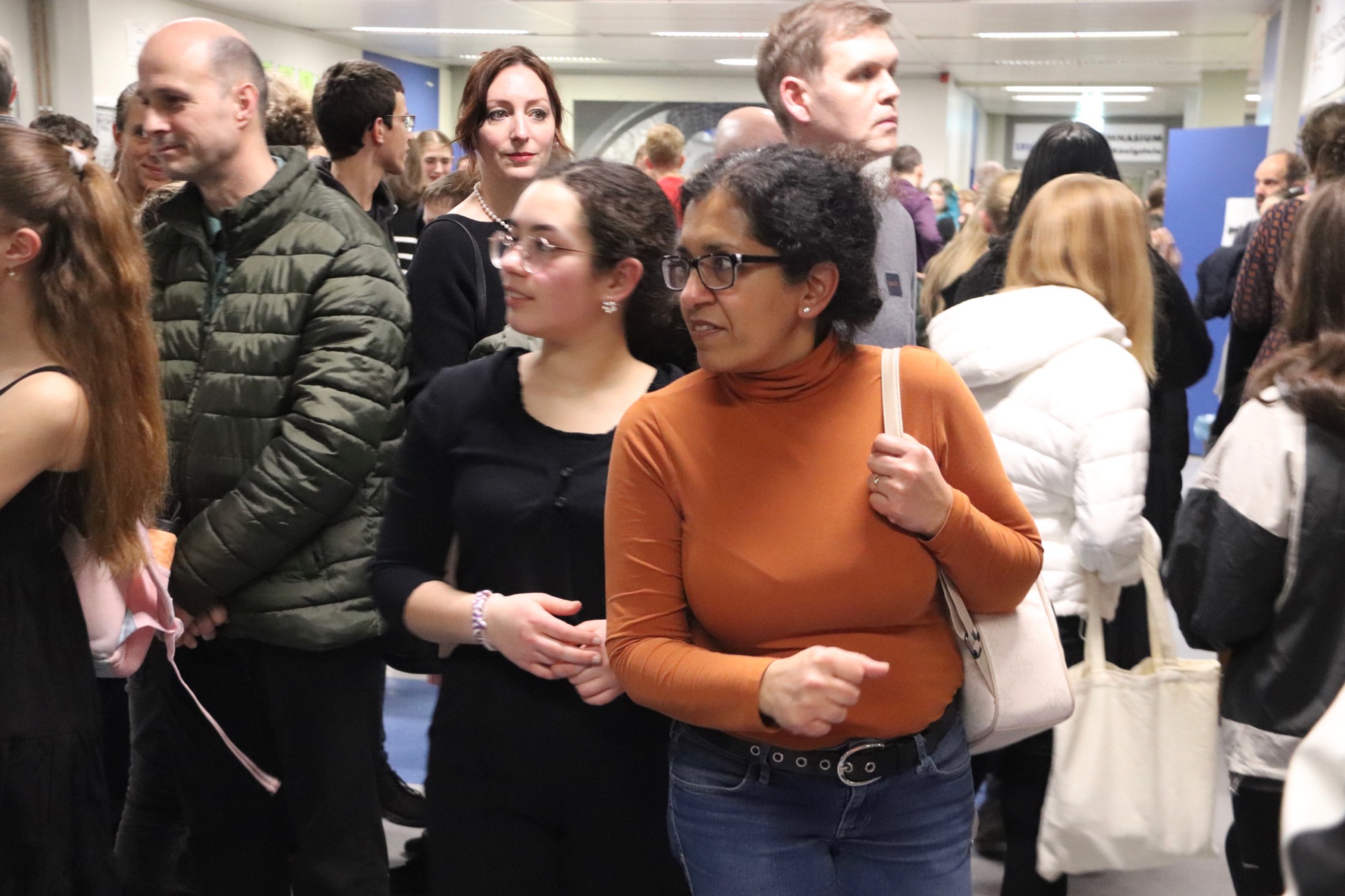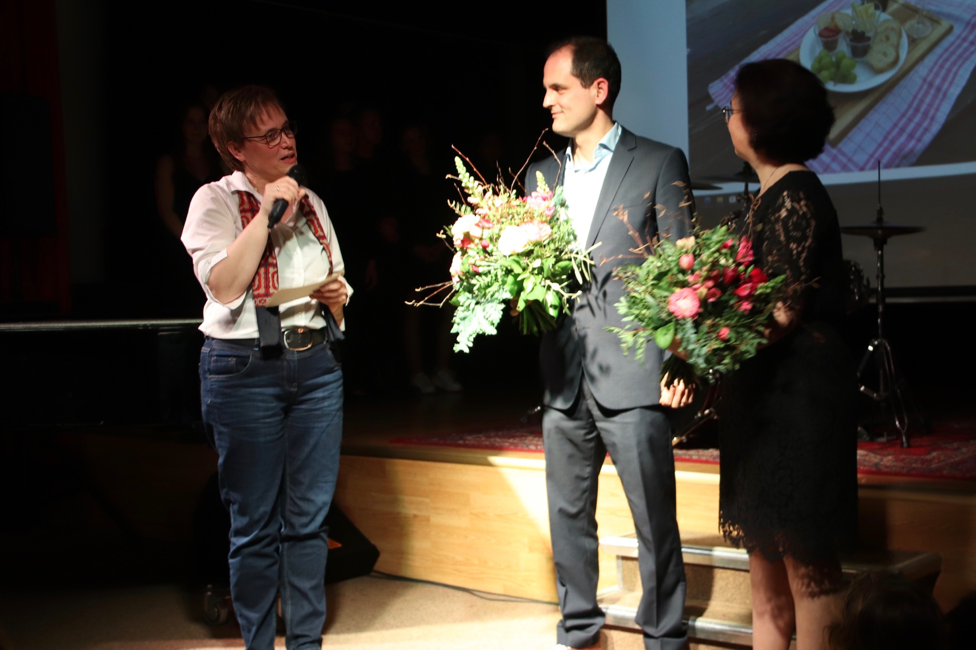 Nachdem die stellvertretende Schulleiterin Frau Koch den beiden Organisatoren Frau Antony und Herrn Rauschmayer für den gelungenen und umsichtig geplanten Abend gedankt hatte und den beiden zusammen mit Herrn Linke riesige Blumensträuße überreicht hatte, ging es ein Stockwerk tiefer in der Cafeteria weiter: Der kulinarische Teil des Abends konnte beginnen. Frau Hellbach, Frau Milke, Frau Stahl-Nessler, Frau Draheim und zahlreiche Helfer*innen aus dem WoB-Team sowie aus dem Abiturjahrgang 2025 hatten leckere Antipasti-Teller vorbereitet, die zu einer feinen Getränke-Auswahl genossen wurden. Gegen Spenden konnten auch Kuchen und Quiches genossen werden. Und so wurde in stimmungsvoller Atmosphäre noch lange über die zahlreichen Talente geplaudert, die das Taunusgymnasium immer wieder hervorbringt, und die oft erstmals am Kul(tur)inarischen Abend zum Vorschein kommen. (Rmy)