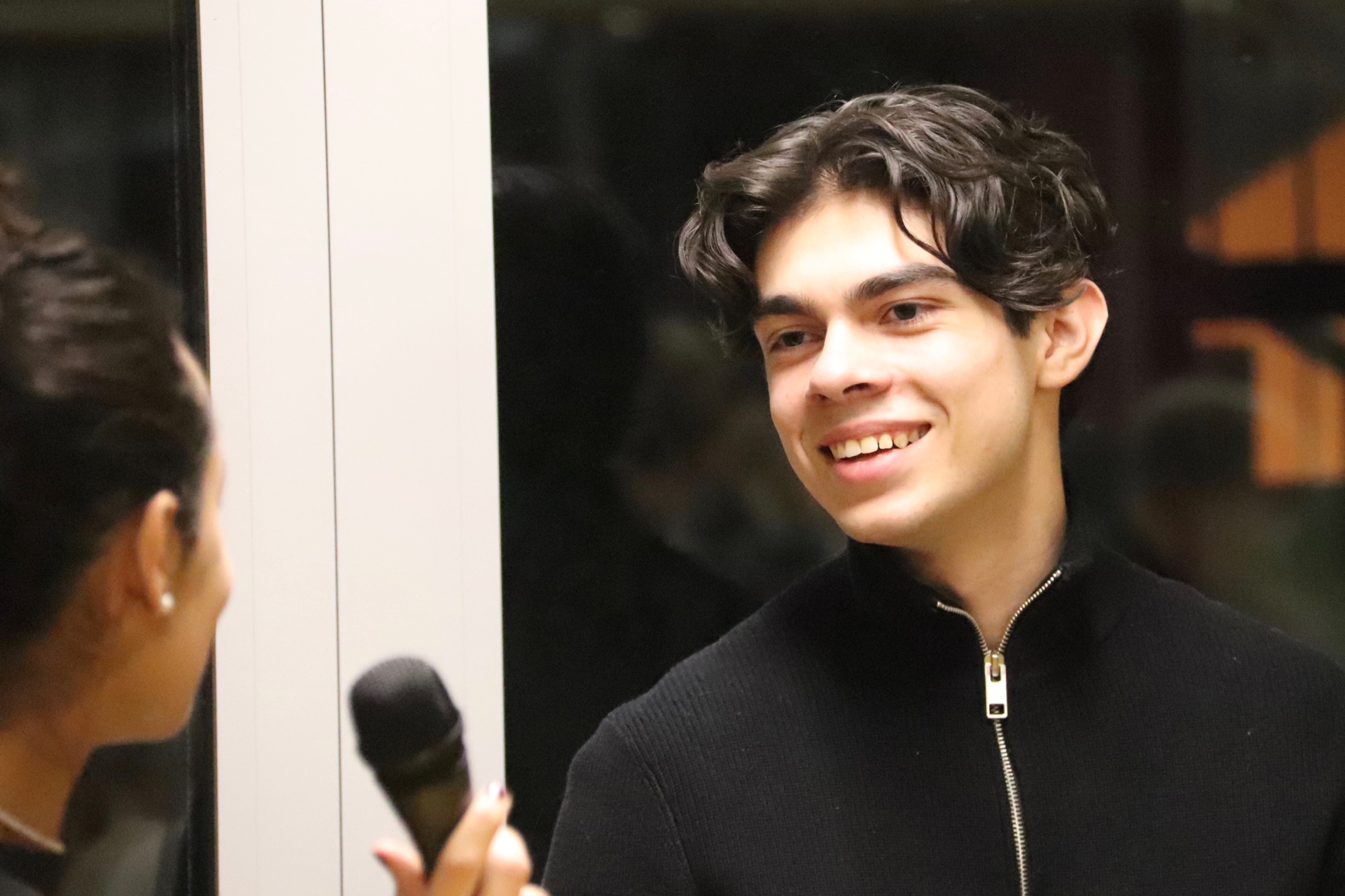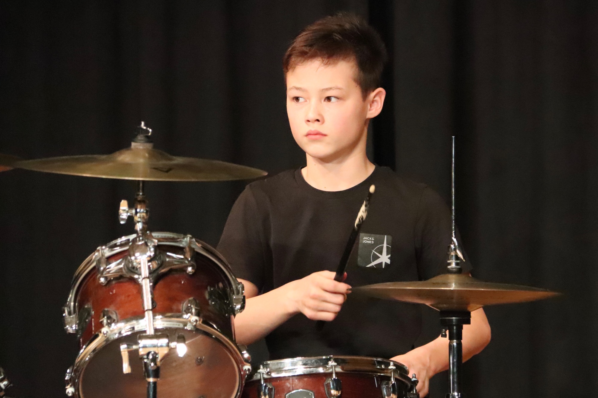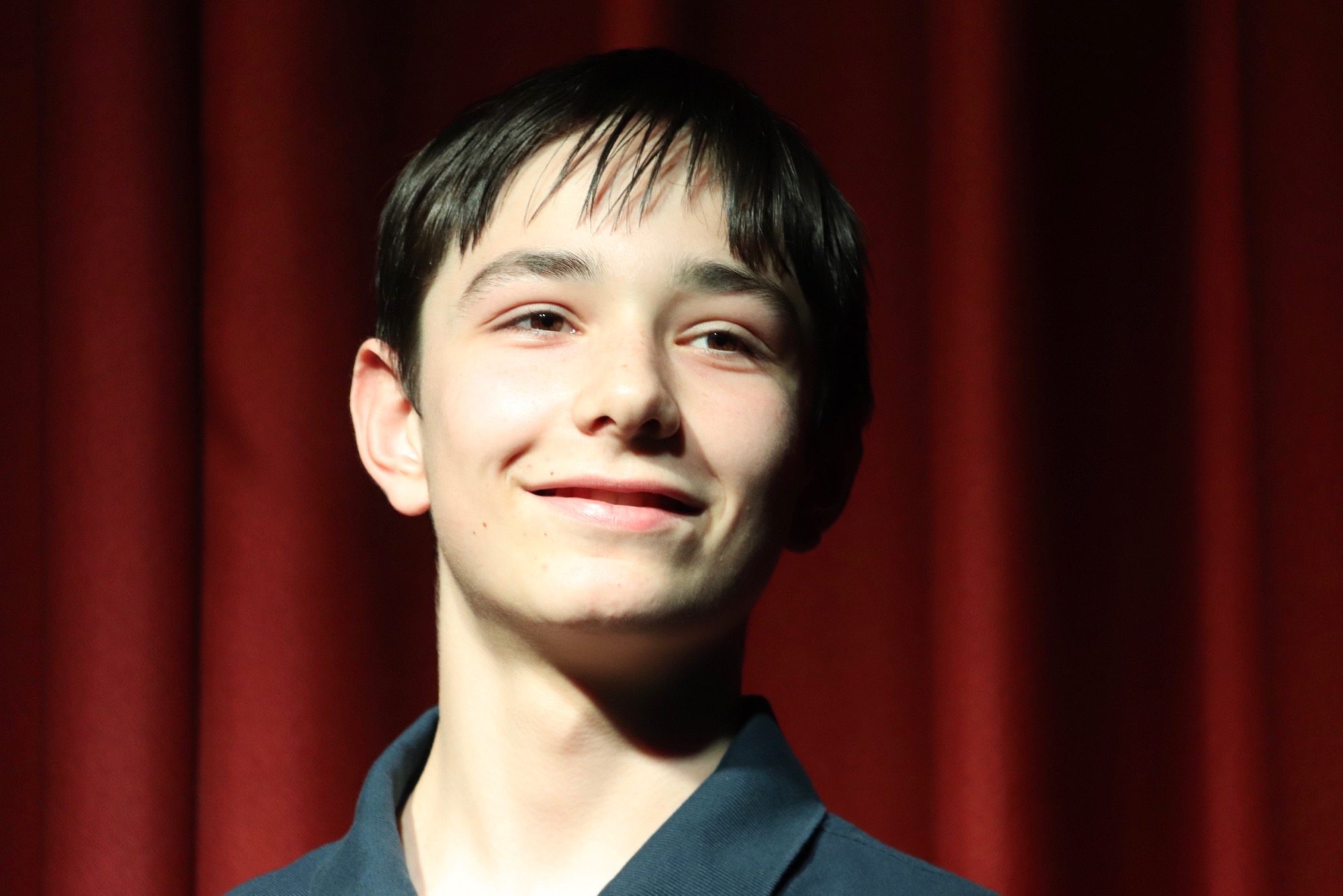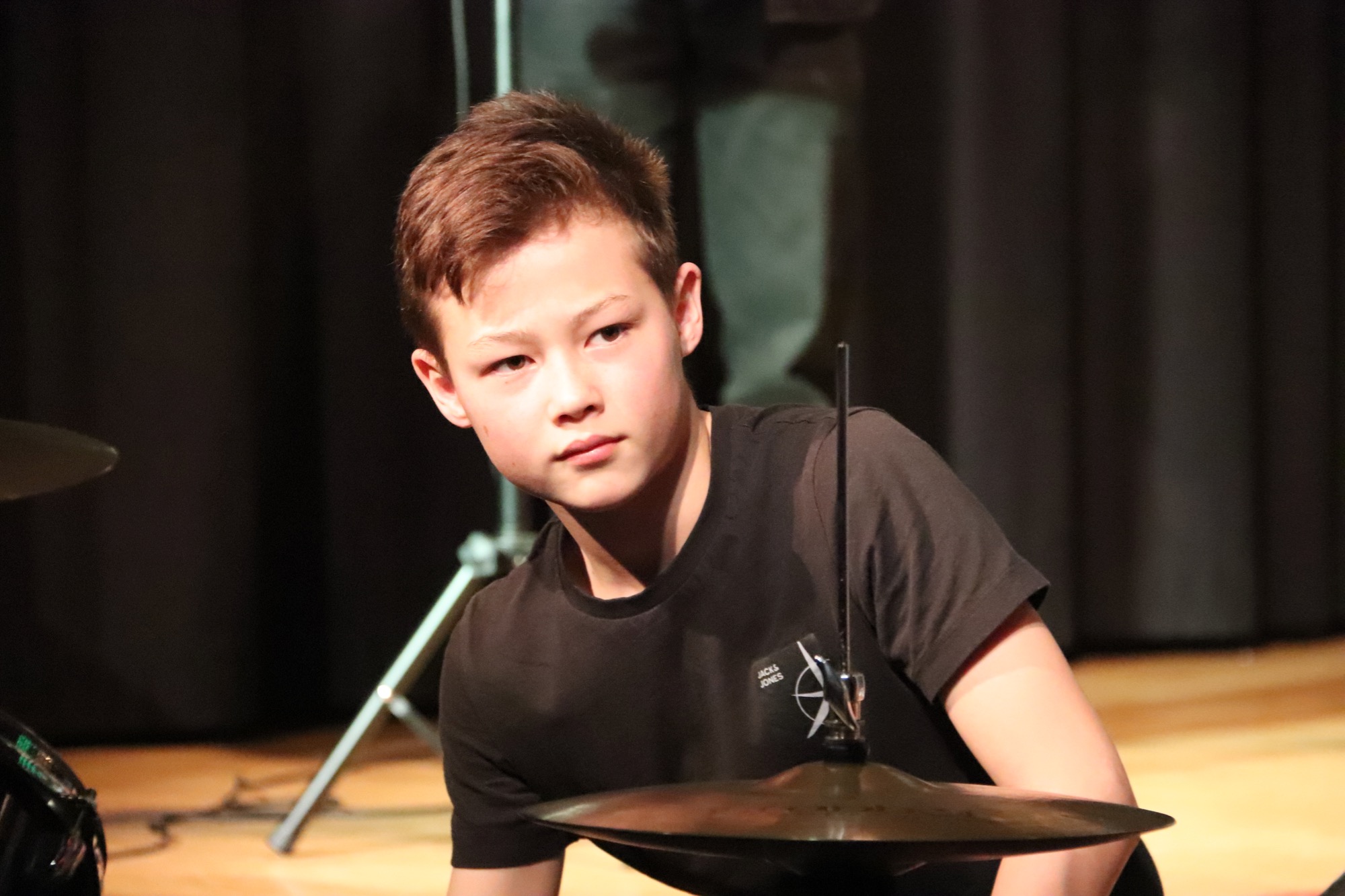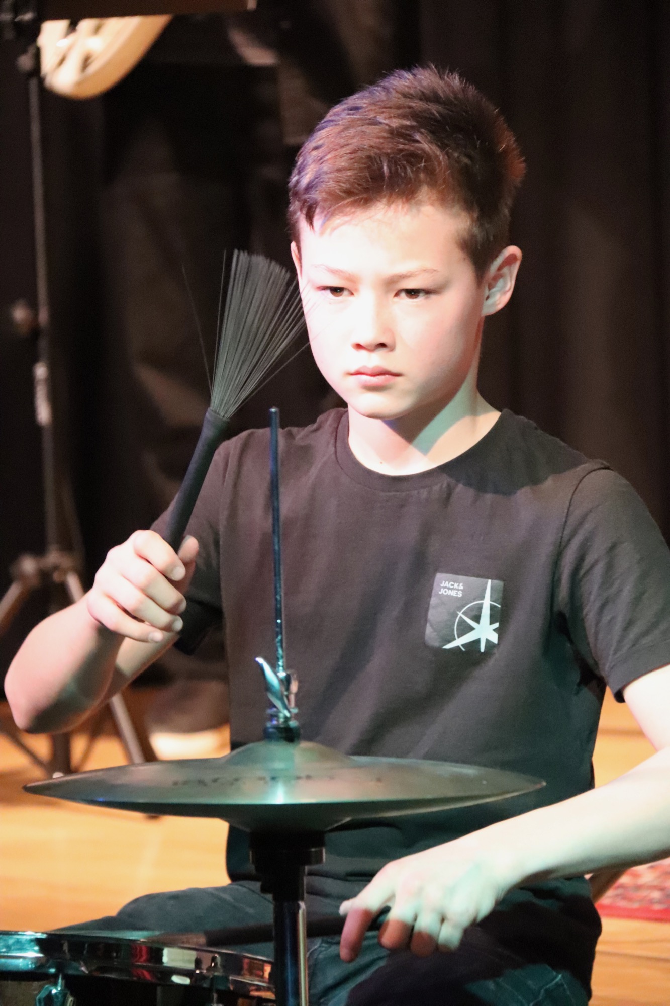Sander Bock (Q4), der vor kurzem beim Musical „Oz“ brilliert hatte, gab eine weitere Kostprobe seiner Bühnenpräsenz: Er interpretierte ausdrucksstark den Song „One Jump Ahead“ von Alan Menken aus Disneys „Aladdin“, wobei er virtuos von Elias Leemüller (Q2) am Flügel und von Herrn Lany an dessen genialem portablem Cajón-Schlagzeug begleitet wurde.