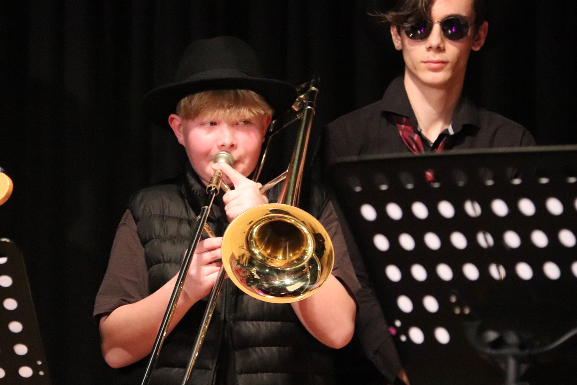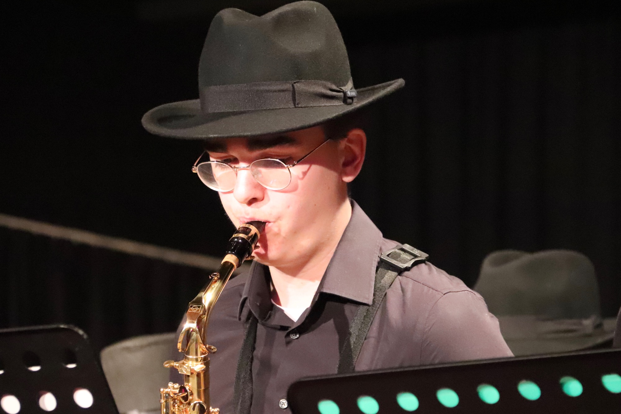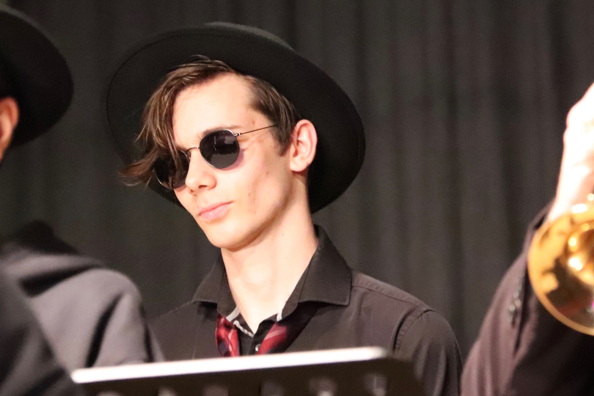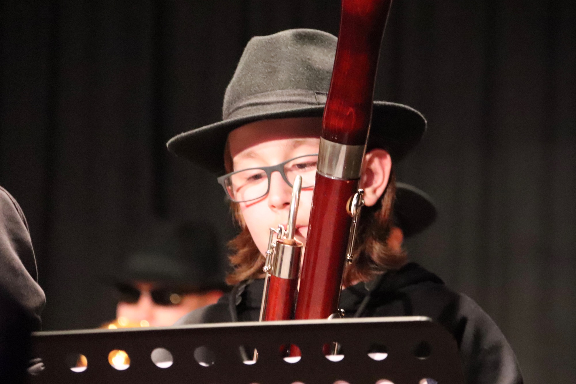 Der Tradition folgend, startete die TGK-BigBand unter der Leitung von Herrn Kriegeskotte und Herrn Hublow mit den mitreißenden Stücken „The Pink Panther“ und „Walk On By“, letzteres gefühlvoll gesanglich unterstützt von der ehemaligen Schülerin Lea Klein. An den Klarinetten spielten Felix Dölken (7a) und Johannes Hogg (7c), am Horn Darius Cleppien (7a), an den Saxophonen Lugh Dittmer (Q4), Denis Reznichenko (7f) und Luca Straßberger (8f), am Fagott David Wagner (8a), an den Trompeten Woo June Kang (7a) und Herr Kriegeskotte, an den Posaunen Johann Behling (10b), Roman Klein (7e), Richard Michels (Q4) und Felix Weiland (Q4), an der Tuba Robert Michels (10b); die Rhythmusgruppe bestand aus Philipp Dützmann (Gitarre, 7a), dem ehemaligen Taunusgymnasiasten Alex Poppe (Gitarre), Zhe Cheng (E-Bass, E2), Elias Leemüller (Piano, Q2), Linus Fujita (Schlagzeug, 7d) sowie dem ehamligen Schüler Lukas Kieslich (Schlagzeug/Perkussion).