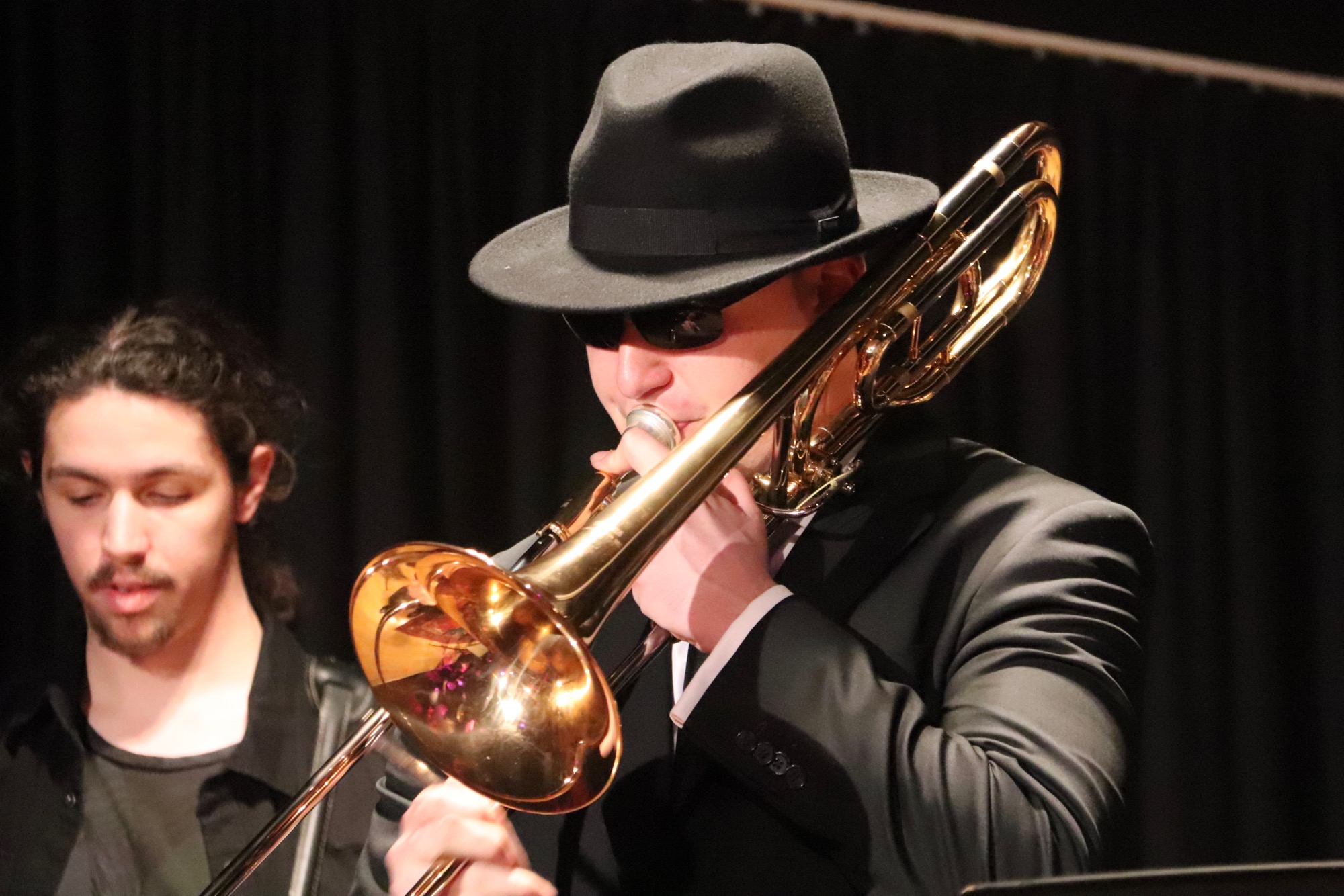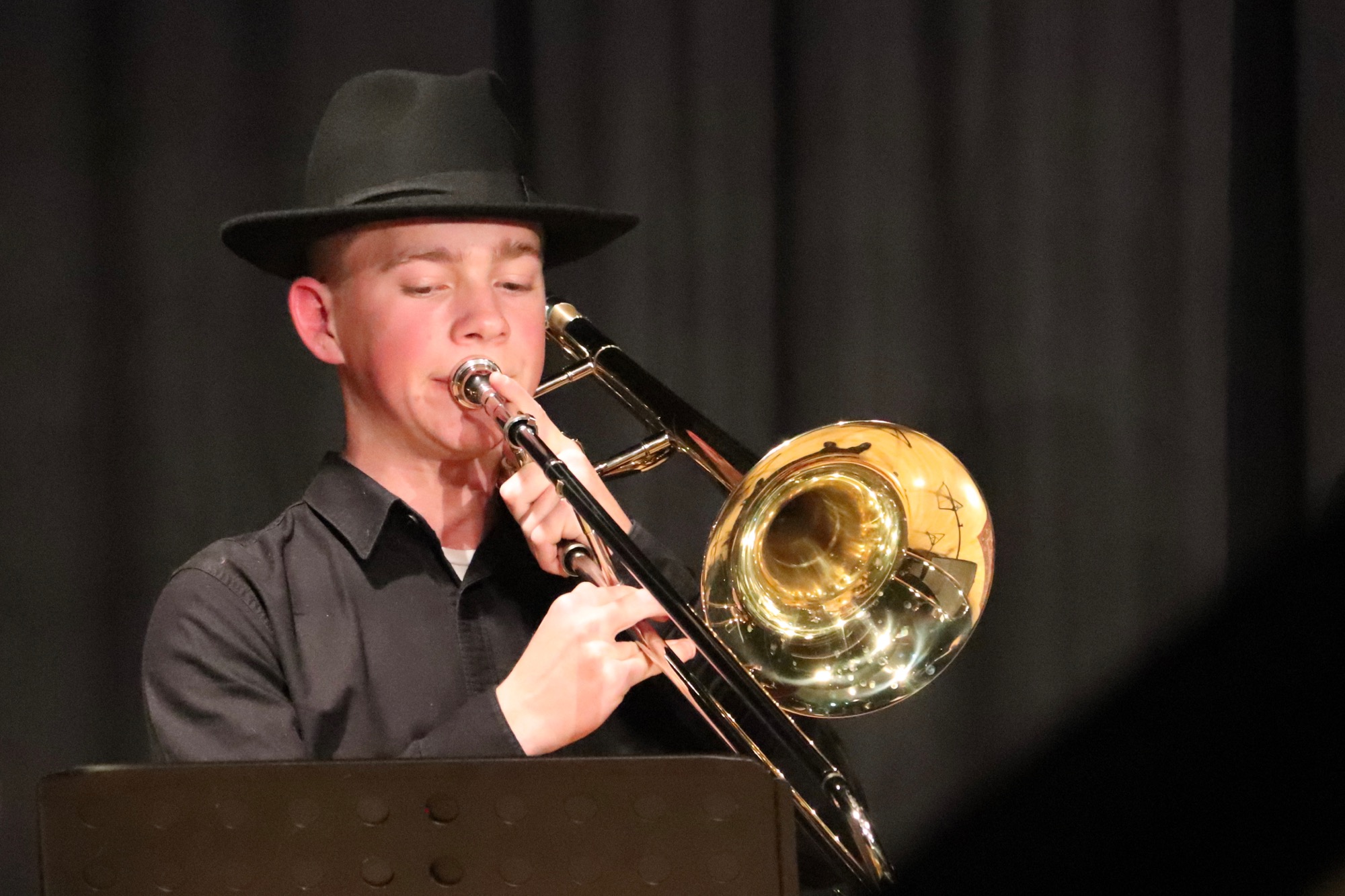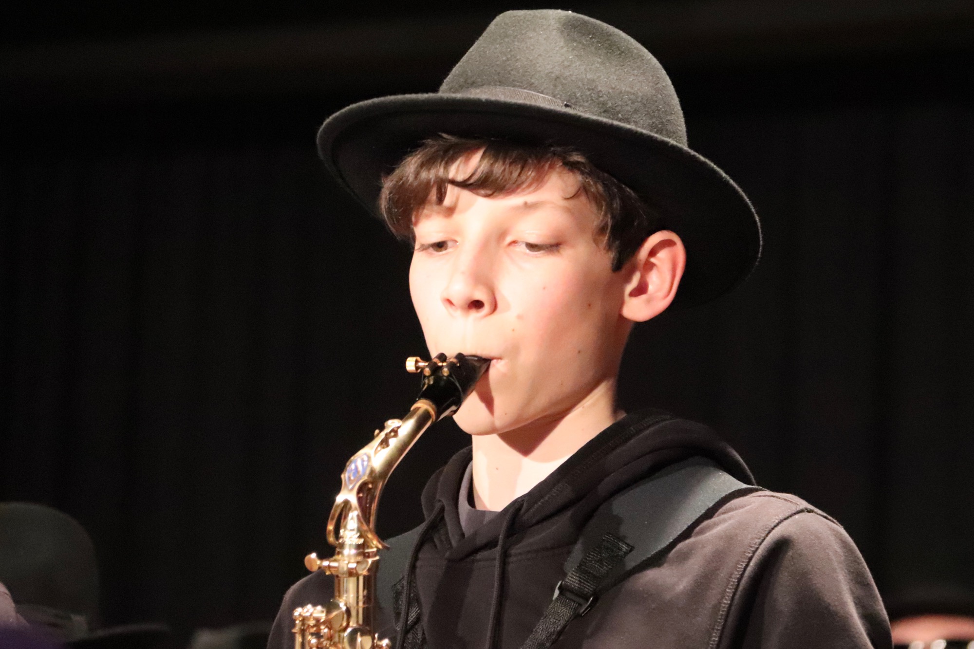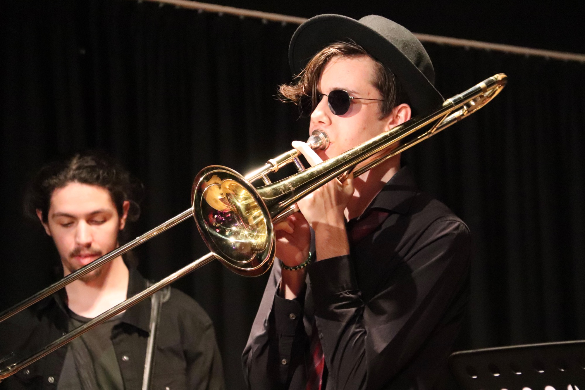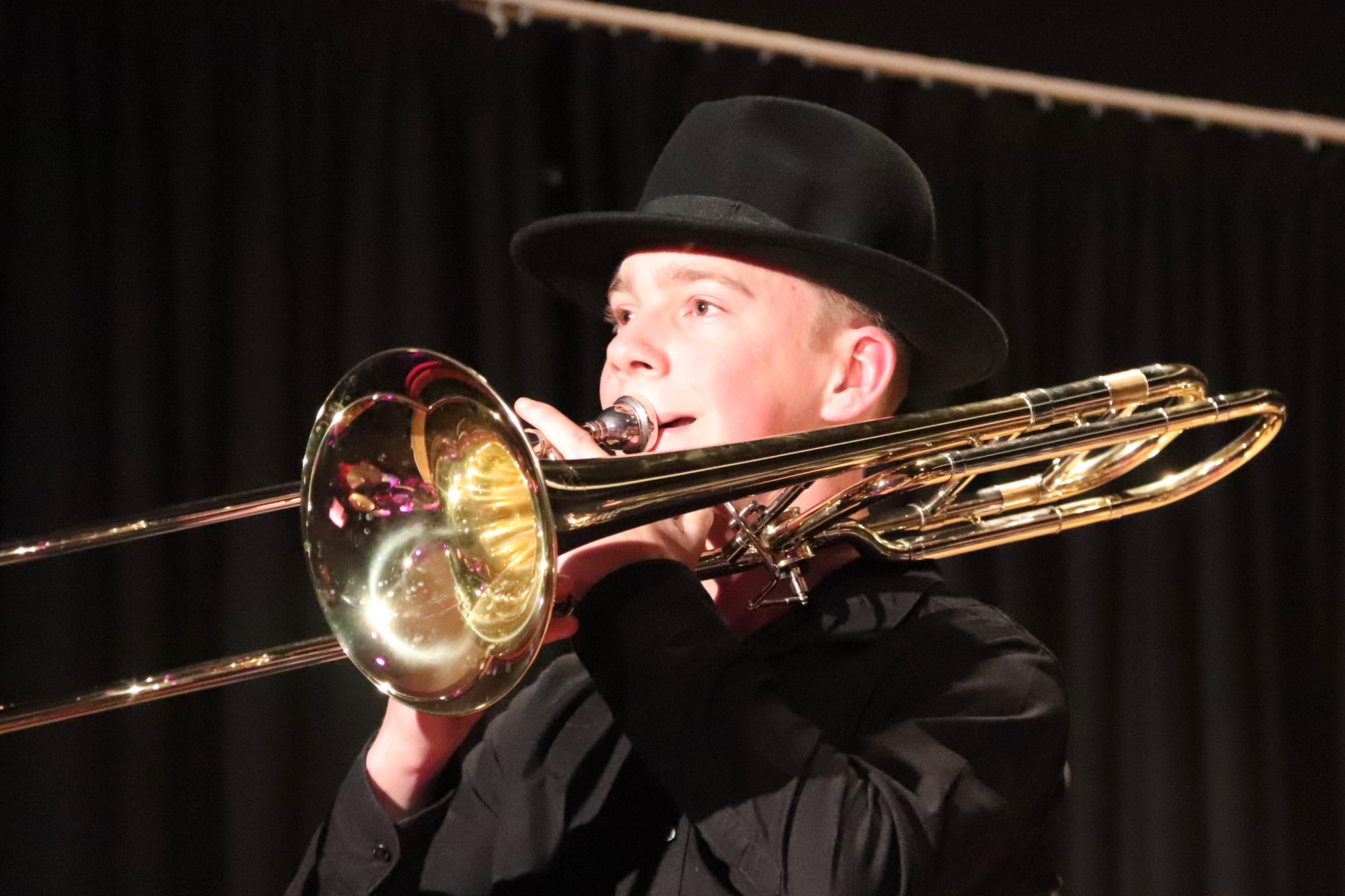 Der Tradition folgend, startete die TGK-BigBand unter der Leitung von Herrn Kriegeskotte und Herrn Hublow mit den mitreißenden Stücken „The Pink Panther“ und „Walk On By“, letzteres gefühlvoll gesanglich unterstützt von der ehemaligen Schülerin Lea Klein. An den Klarinetten spielten Felix Dölken (7a) und Johannes Hogg (7c), am Horn Darius Cleppien (7a), an den Saxophonen Lugh Dittmer (Q4), Denis Reznichenko (7f) und Luca Straßberger (8f), am Fagott David Wagner (8a), an den Trompeten Woo June Kang (7a) und Herr Kriegeskotte, an den Posaunen Johann Behling (10b), Roman Klein (7e), Richard Michels (Q4) und Felix Weiland (Q4), an der Tuba Robert Michels (10b); die Rhythmusgruppe bestand aus Philipp Dützmann (Gitarre, 7a), dem ehemaligen Taunusgymnasiasten Alex Poppe (Gitarre), Zhe Cheng (E-Bass, E2), Elias Leemüller (Piano, Q2), Linus Fujita (Schlagzeug, 7d) sowie dem ehamligen Schüler Lukas Kieslich (Schlagzeug/Perkussion).