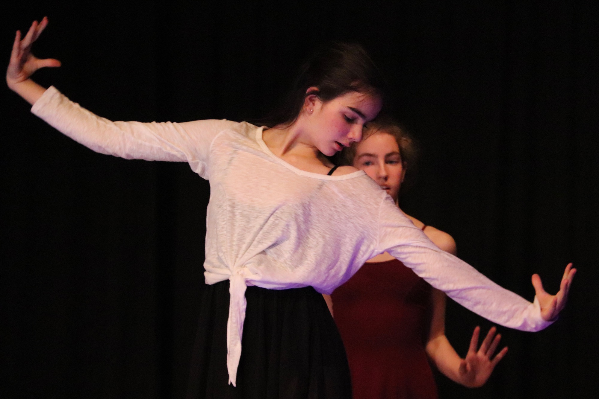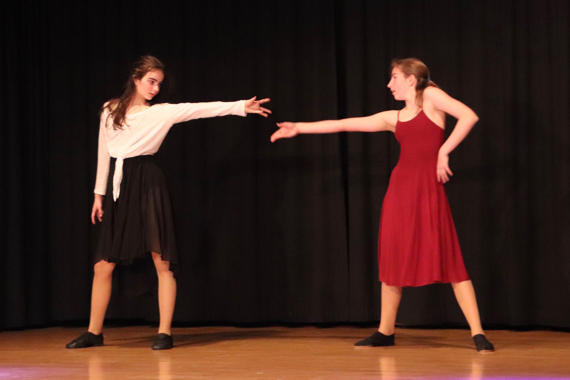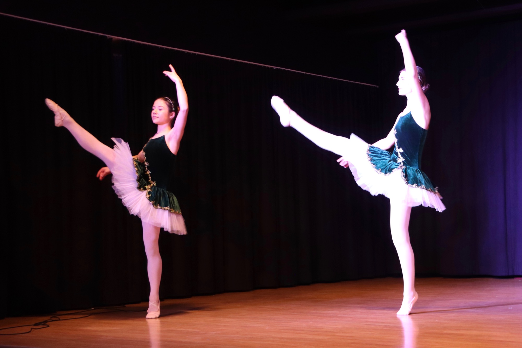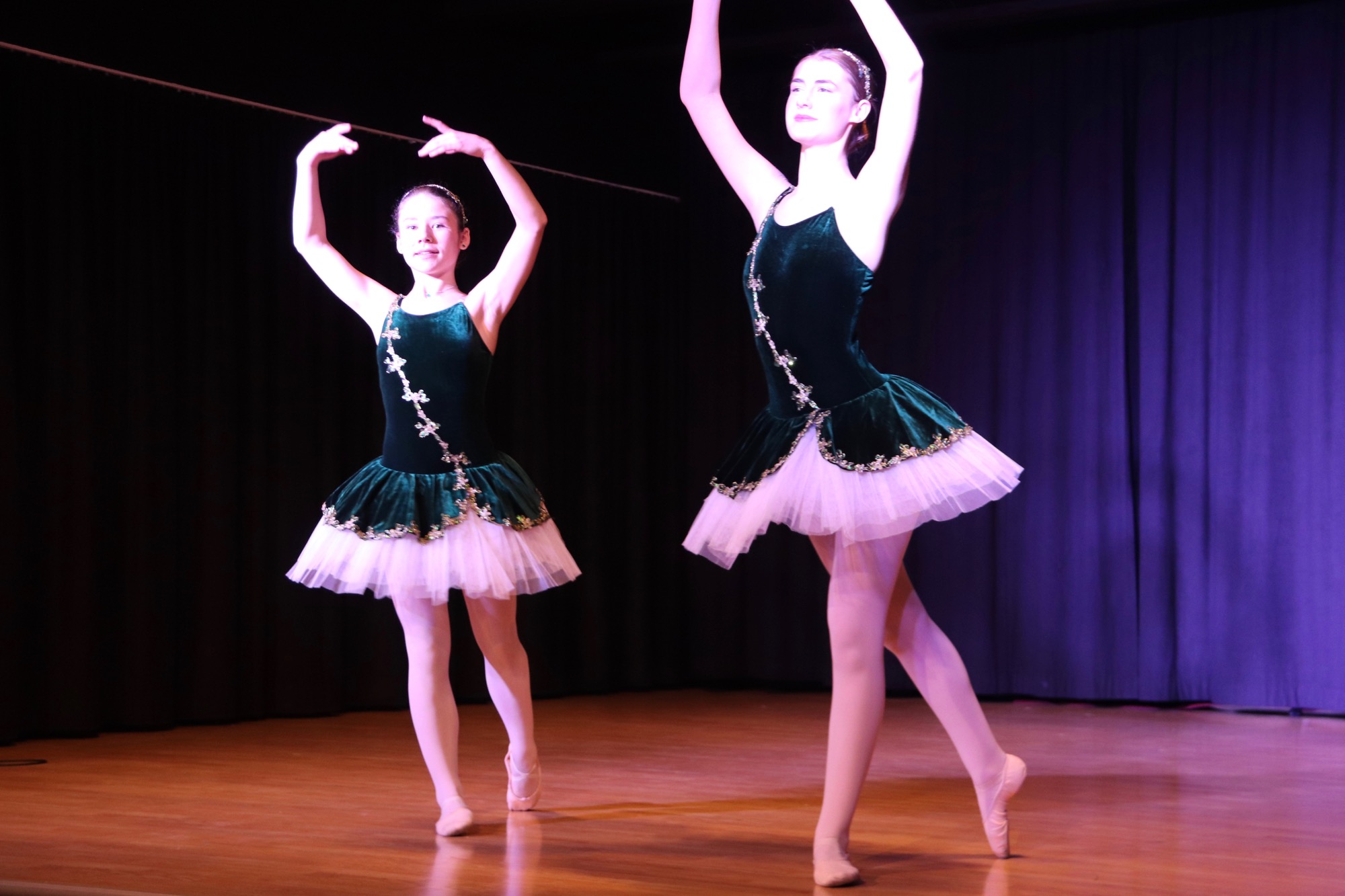 Zwei äußerst anmutige Tänzerinnen zogen nun die Zuschauer mit ihrer synchronen, spannungsvollen Darbietung in ihren Bann: Ksenia Blazhko (6c) und Nina Löhr (E2) zeigten ein anspruchsvolles Ballettduett aus „Paquita“.