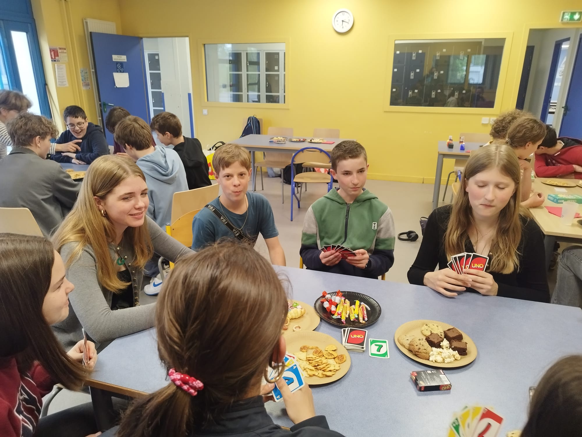 Le lundi, nous avons assisté à des cours pour avoir un aperçu du système éducatif français, suivi d'un déjeuner ensemble à la cafétéria. L'après-midi, nous avons fait une dernière visite à Paris pour voir la cathédrale Notre-Dame et avons profité du temps libre pour faire du shopping en petits groupes. En soirée, nous avons organisé une soirée de jeux à l'école, ce qui nous a permis de mieux connaître nos camarades français.