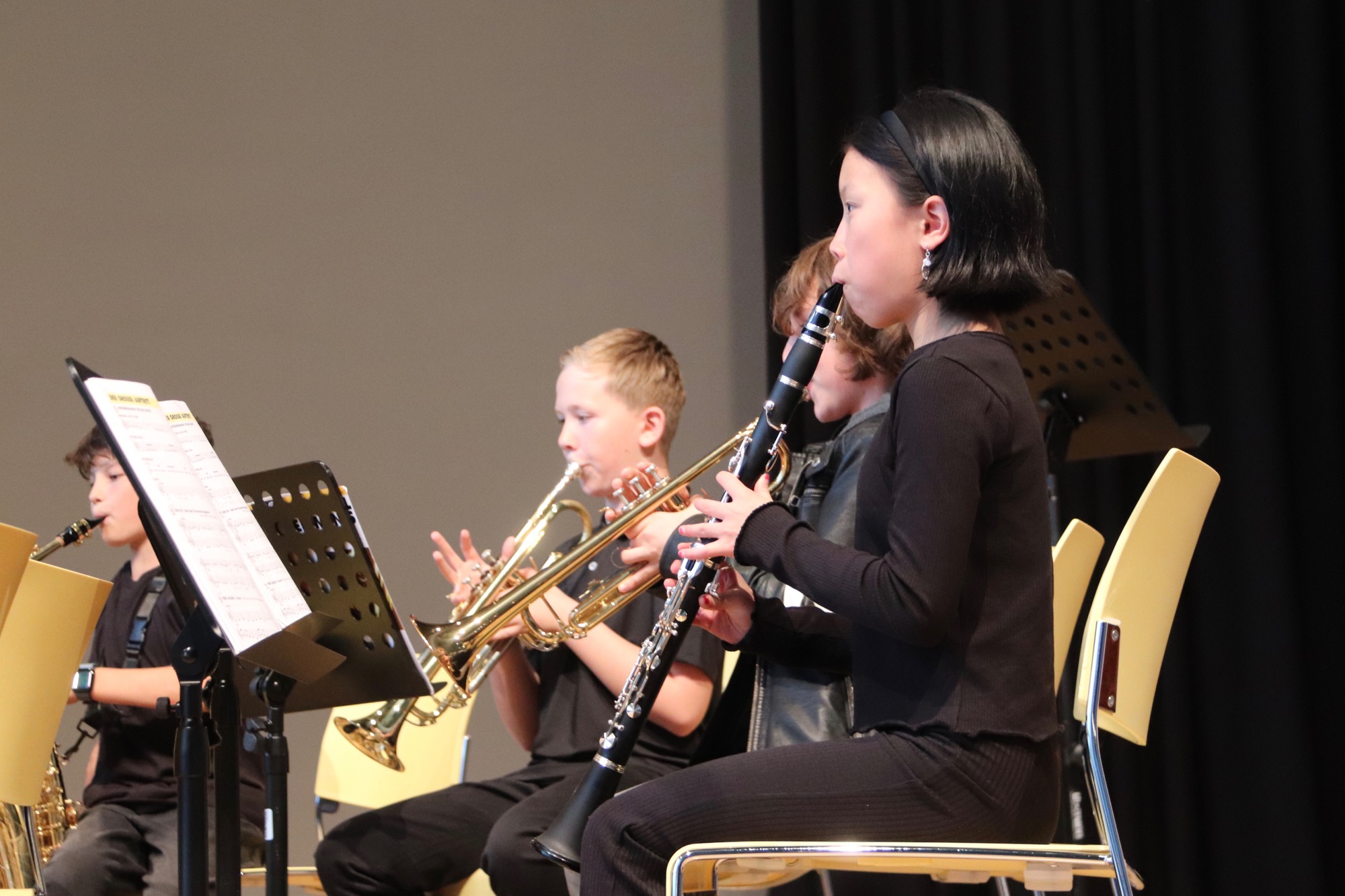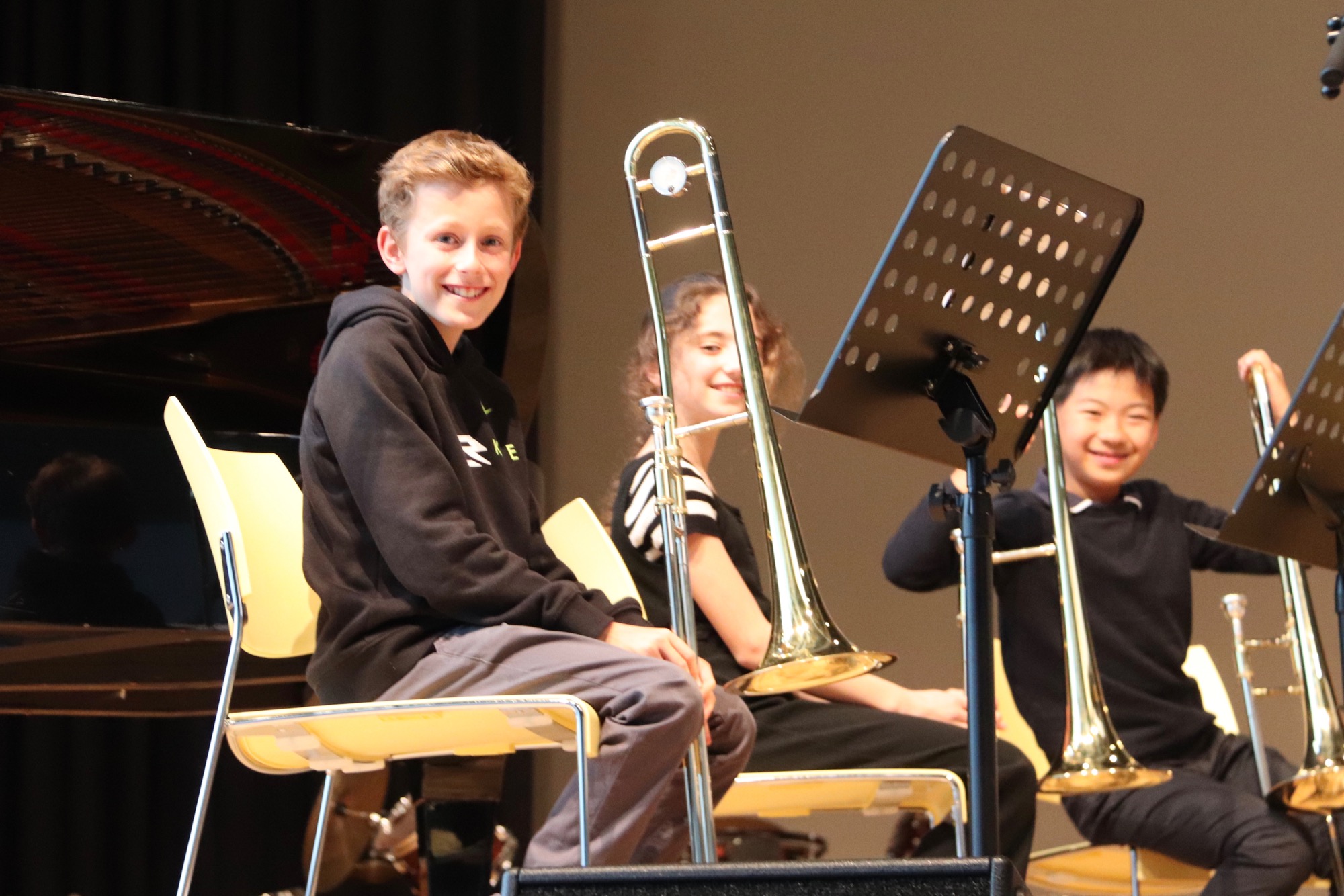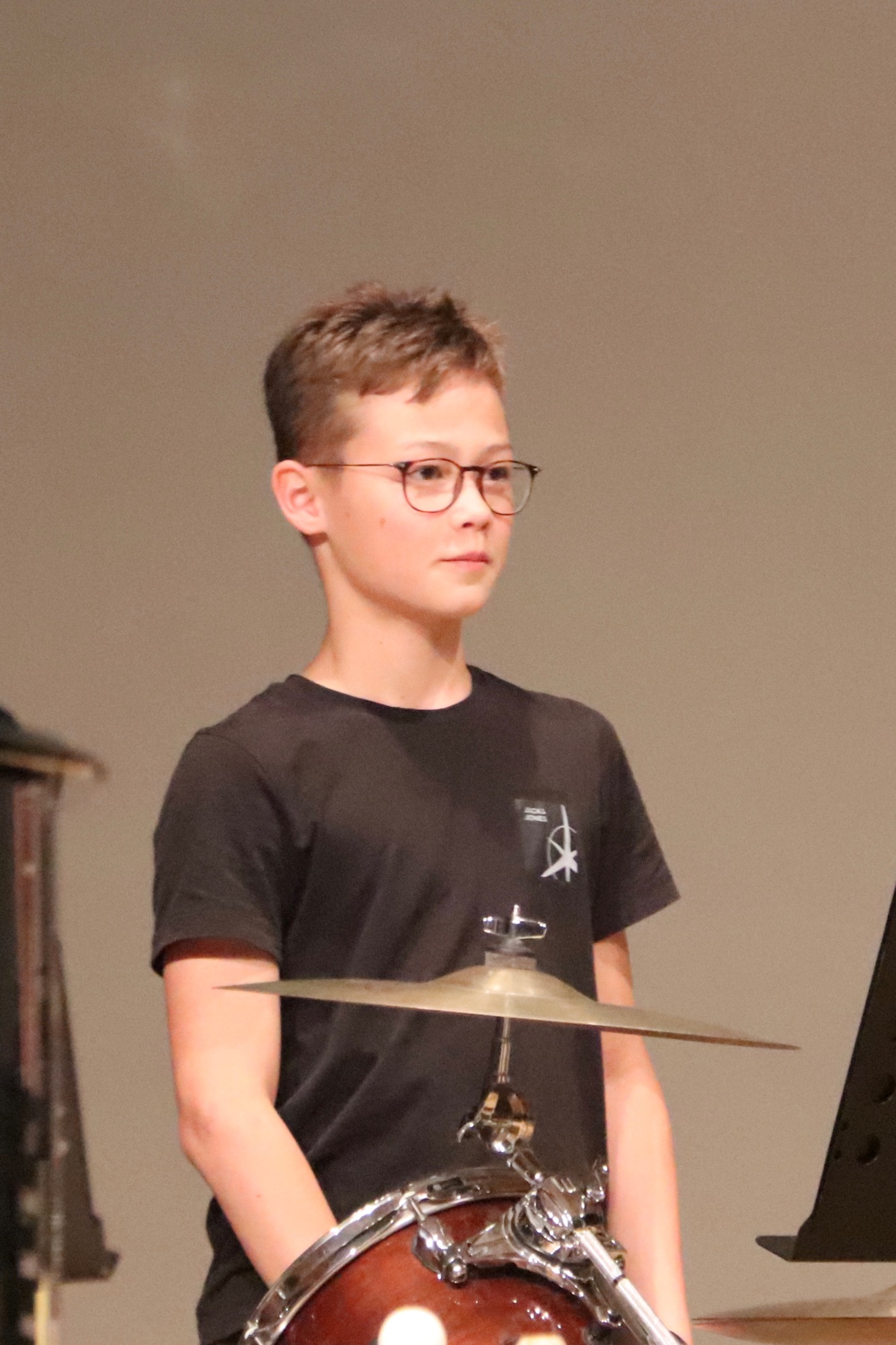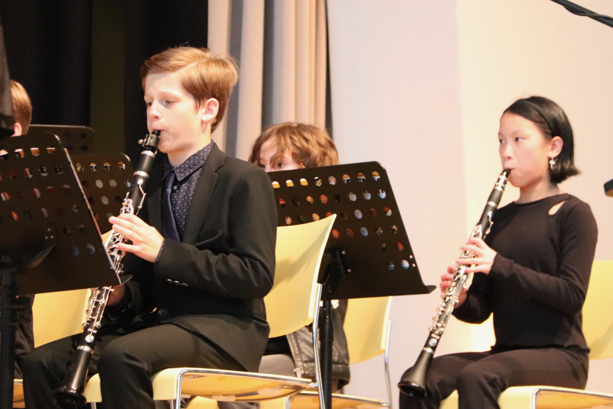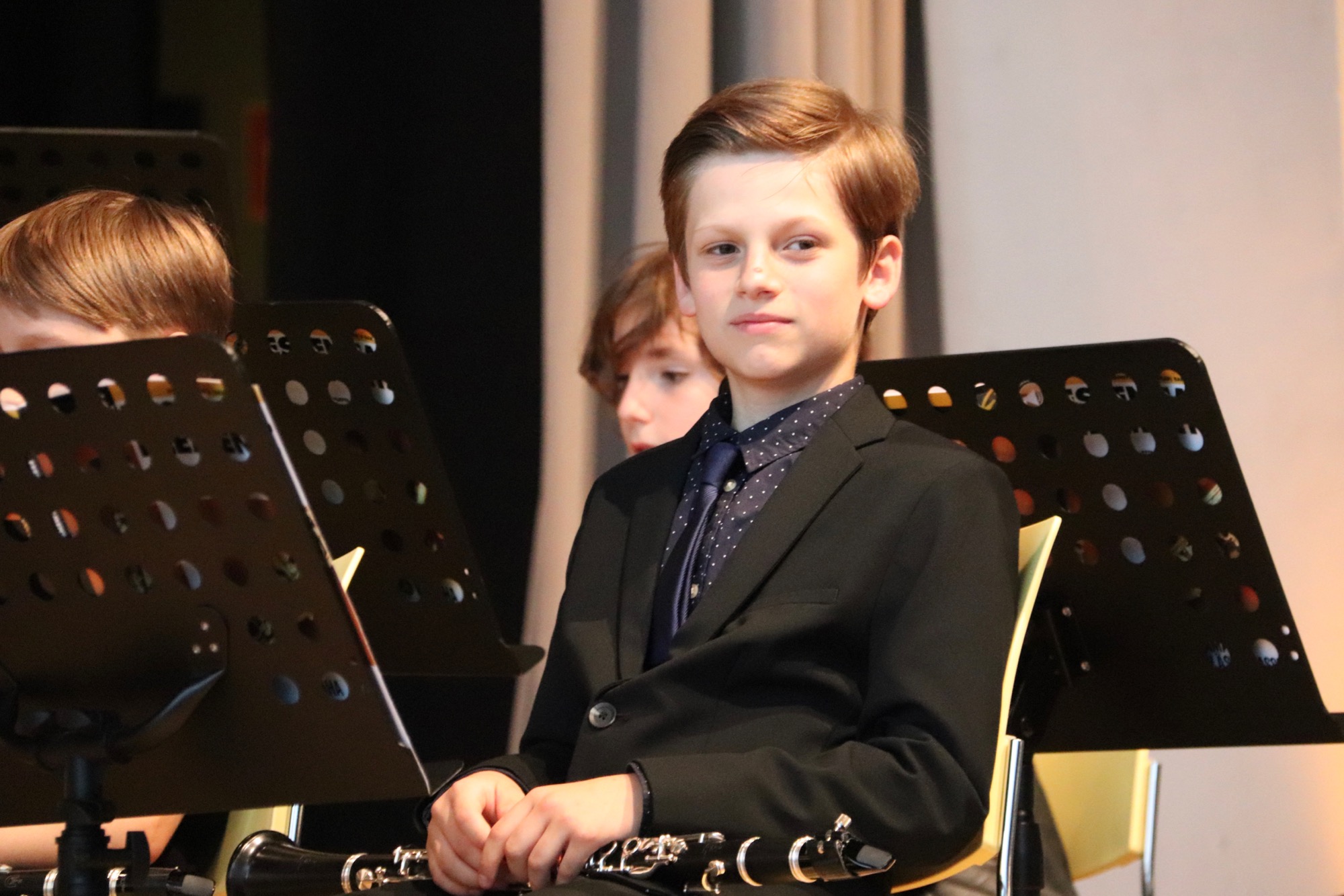 Das erste Konzert war den Musik-Schwerpunktklassen der Jahrgangsstufen 5 und 6 vorbehalten. Die Bläsergruppe der Klasse 5 machte mit dem traditionellen Stück „When The Saints Go Marching In“ den Auftakt, es folgte „Hard Rock Blues“ von John Higgins in einem Arrangement von Herrn Hublow – letzterer leitete die Bläsergruppe auch.