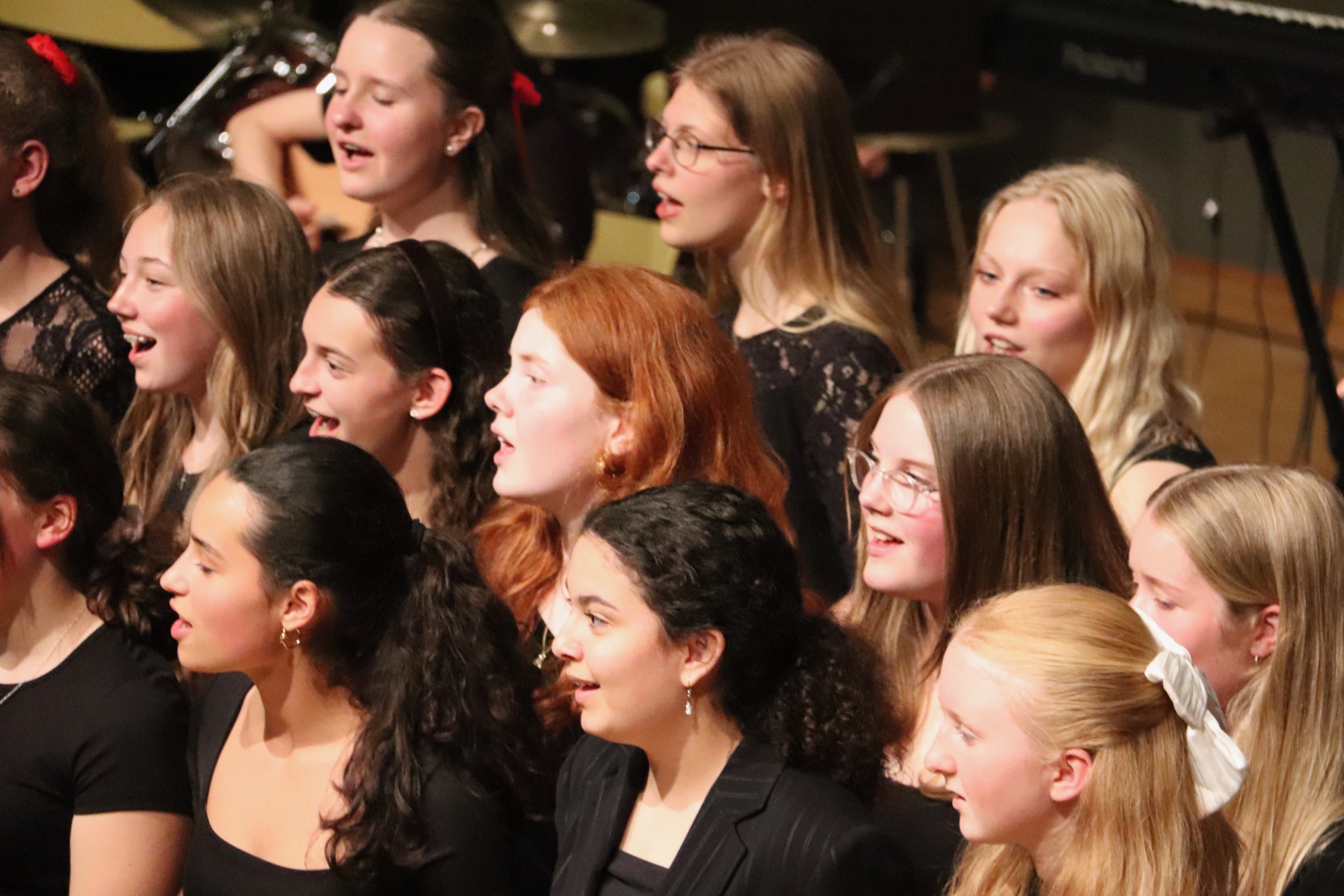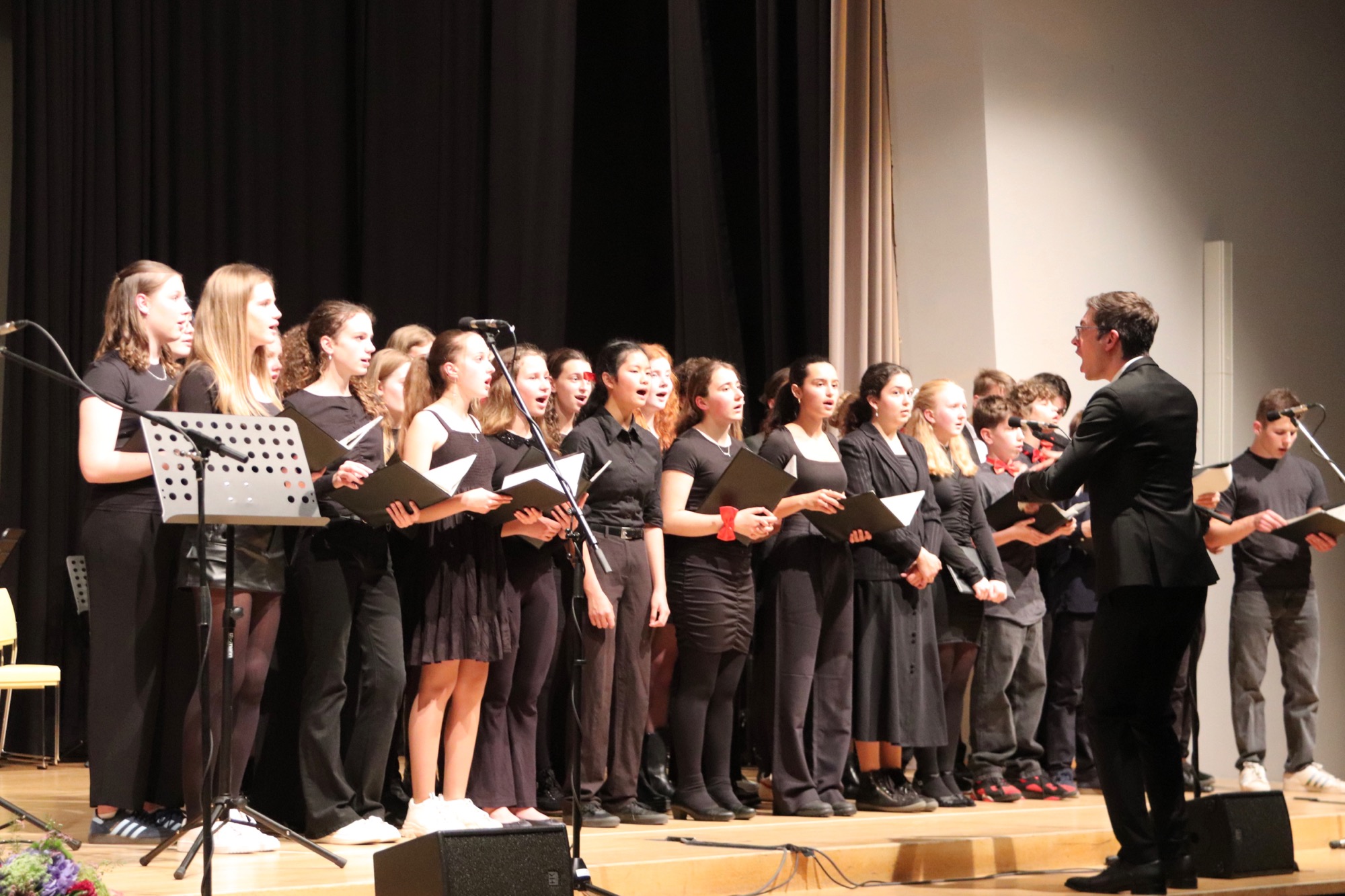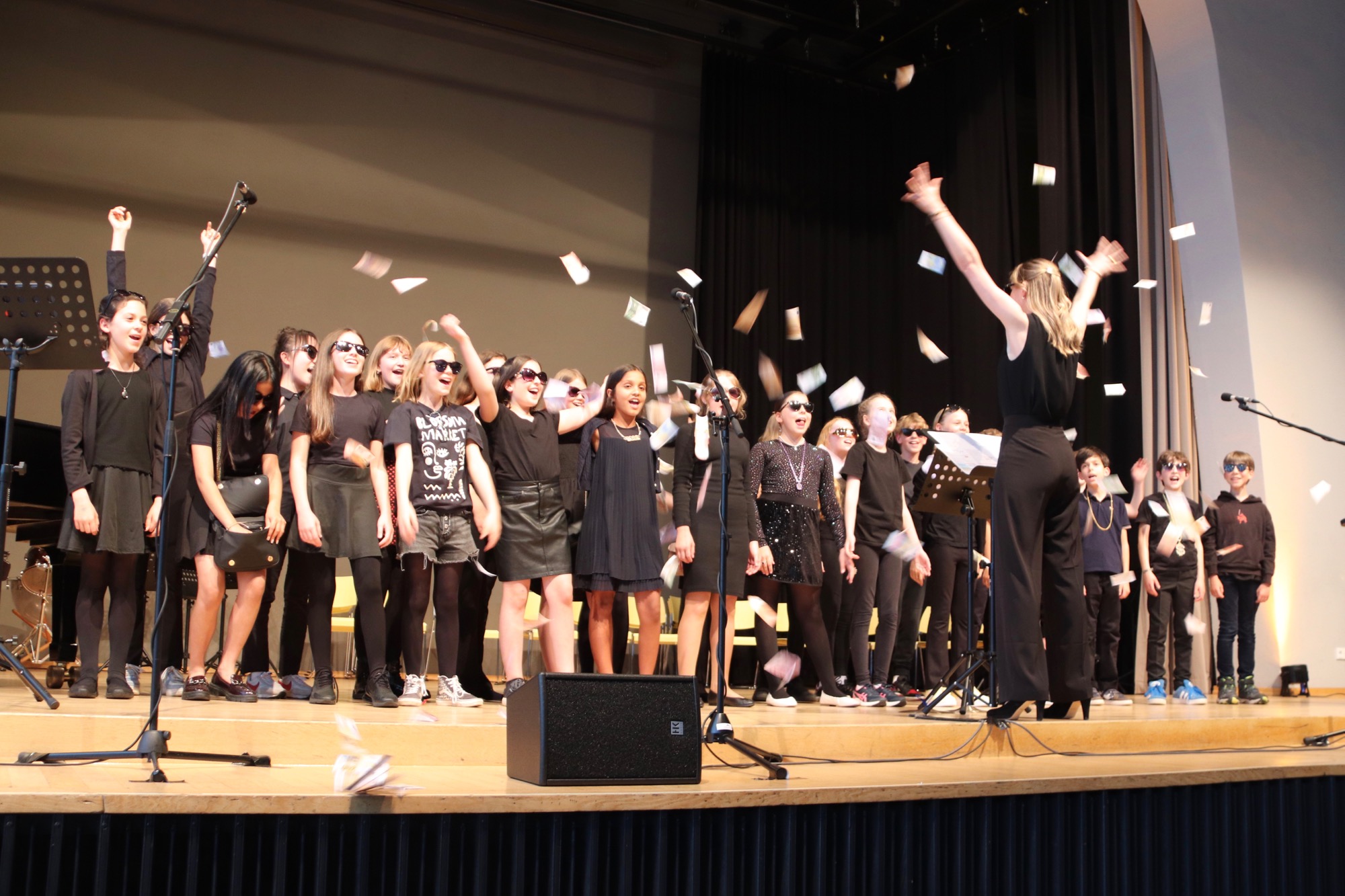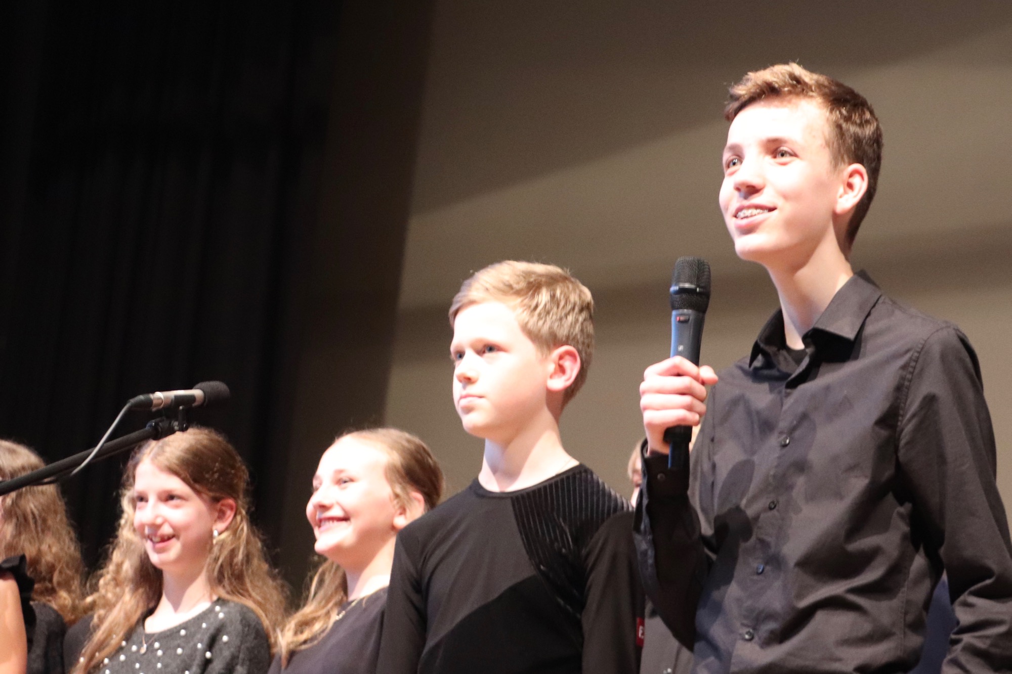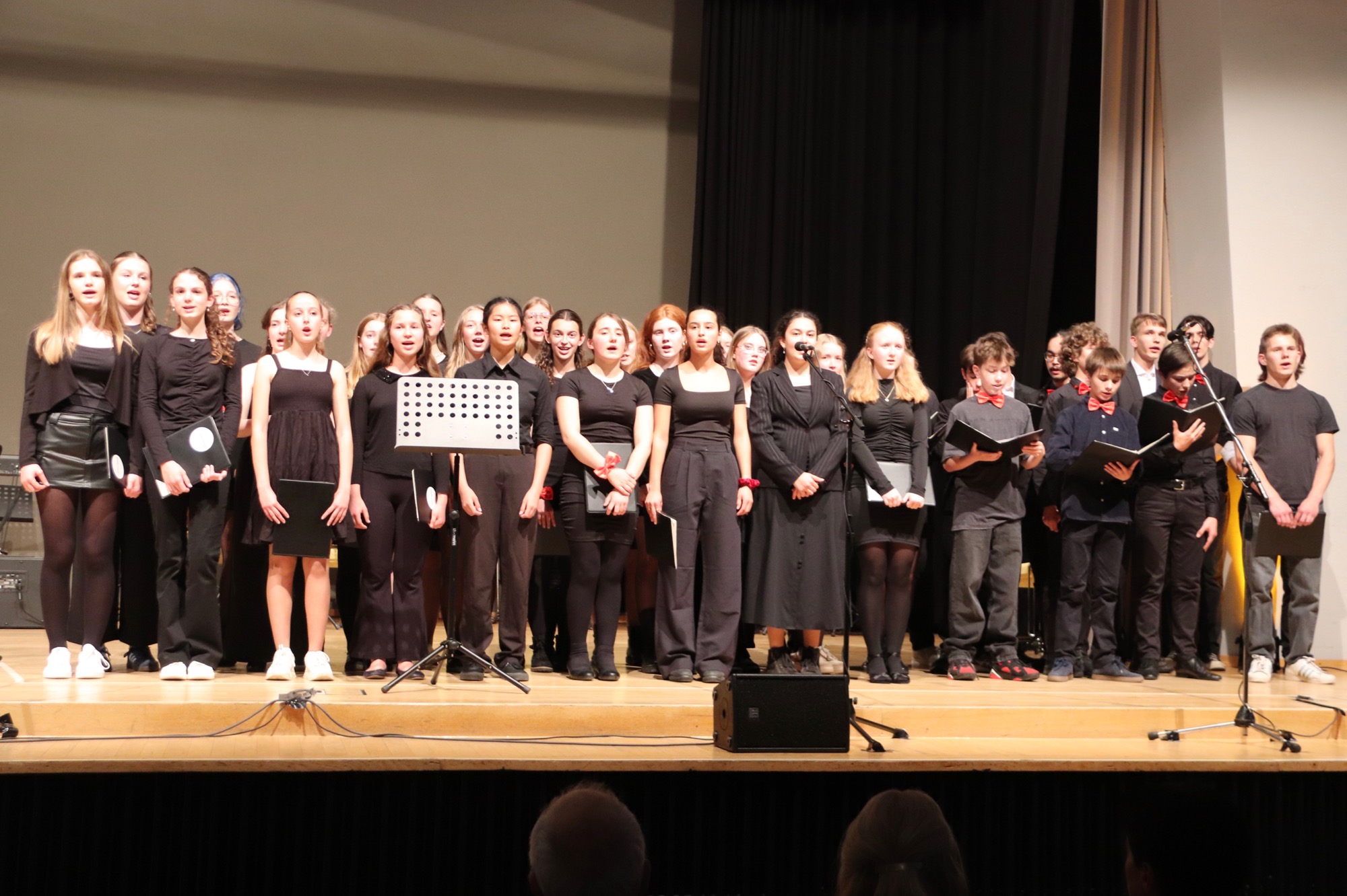 Die etwas größeren Sängerinnen und Sänger formieren mittlerweile einen eigenen Chor, genannt „ChorUs“, der sich auf begeisternde Art verschiedenen Pop-Genres widmet. Der Hit „I want it that way“ von den Backstreet Boys, „Pompeii“ von Bastille – mit einem Gesangs-Solo von Lucio Ramírez del Prado Vetter (Q2) – und der beliebte Abba-Song „Mamma Mia“ – mit Solo-Einlagen von Kira Milke (7b) und Hanna Jang (7f) – brachten den Saal zum Beben.