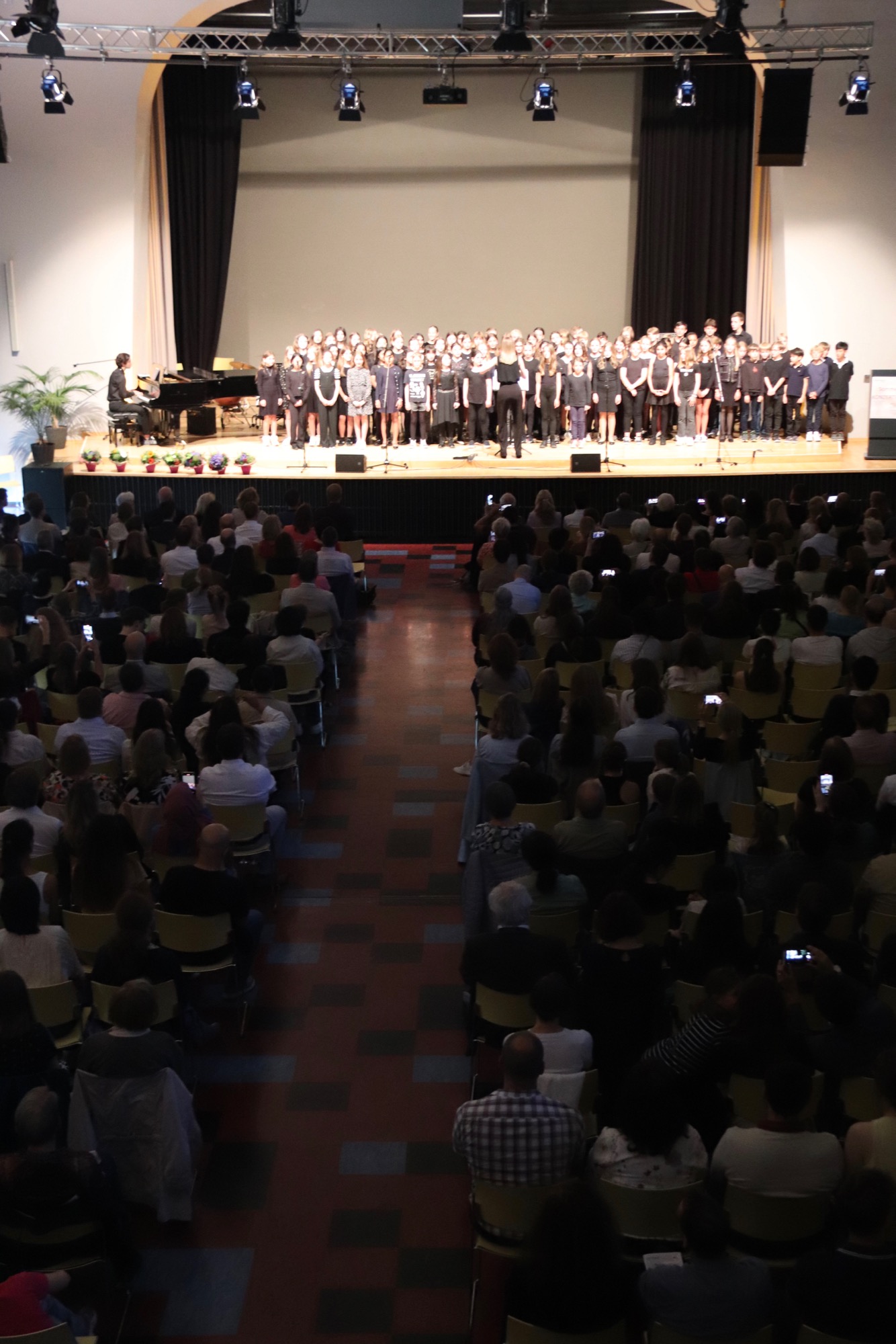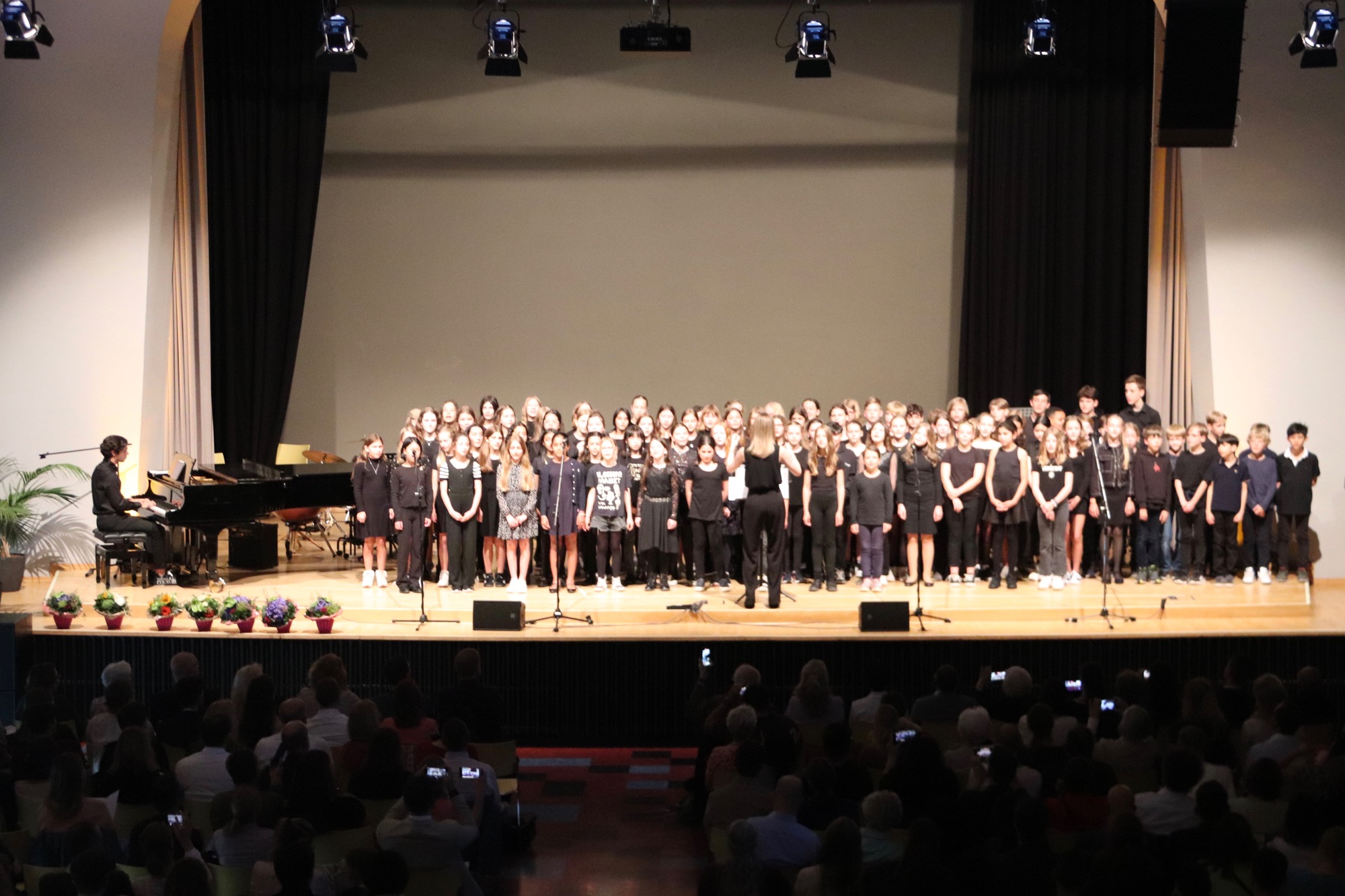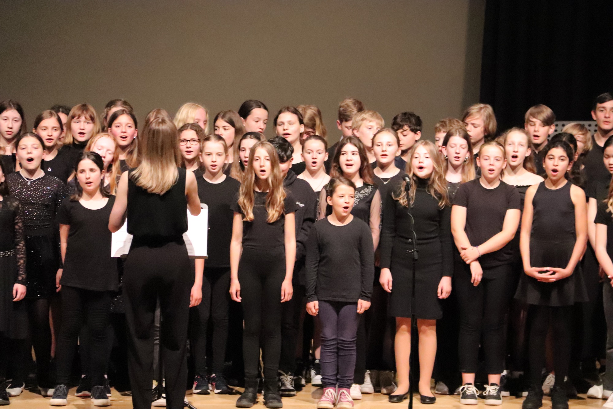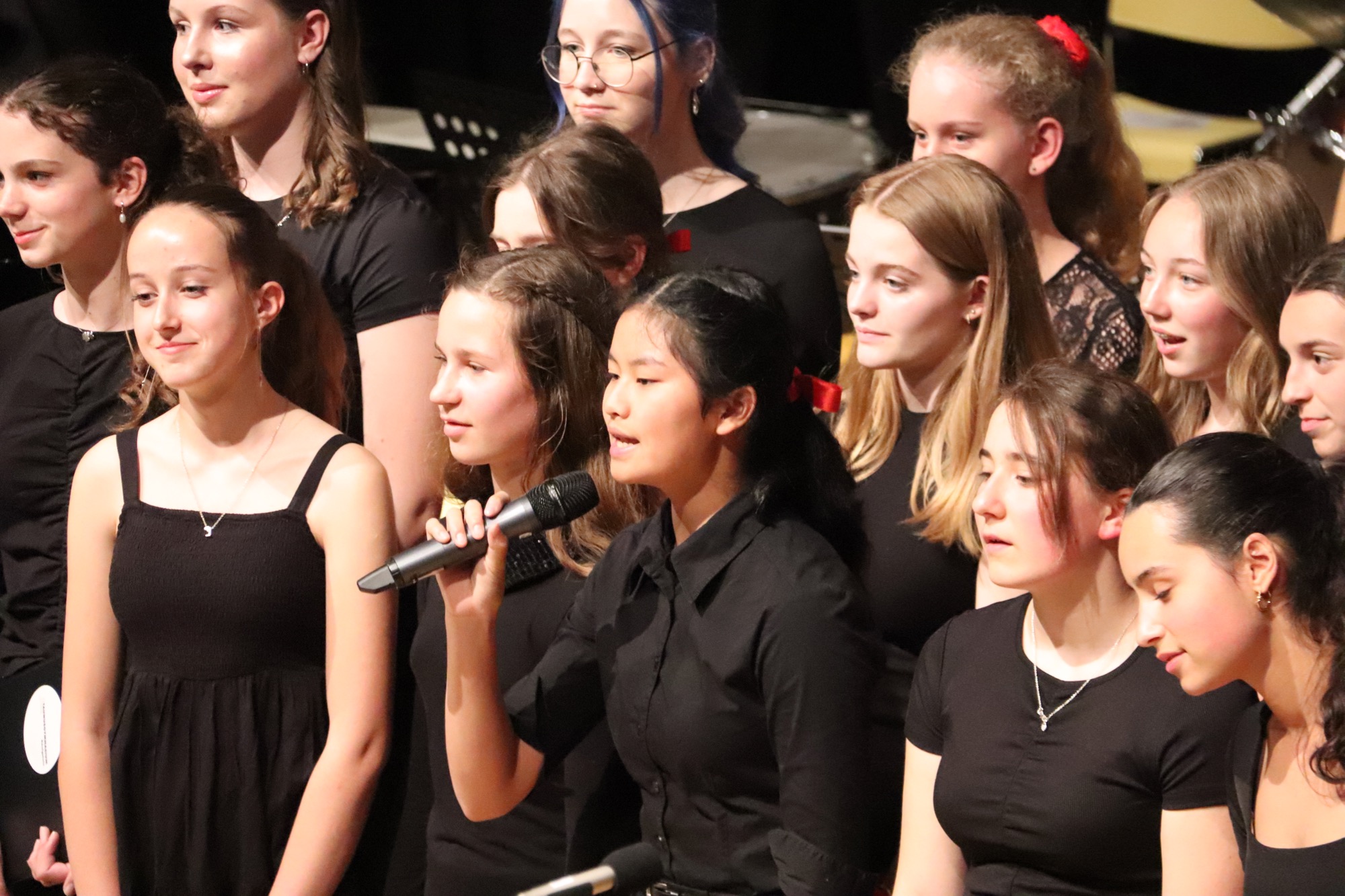 Die etwas größeren Sängerinnen und Sänger formieren mittlerweile einen eigenen Chor, genannt „ChorUs“, der sich auf begeisternde Art verschiedenen Pop-Genres widmet. Der Hit „I want it that way“ von den Backstreet Boys, „Pompeii“ von Bastille – mit einem Gesangs-Solo von Lucio Ramírez del Prado Vetter (Q2) – und der beliebte Abba-Song „Mamma Mia“ – mit Solo-Einlagen von Kira Milke (7b) und Hanna Jang (7f) – brachten den Saal zum Beben.