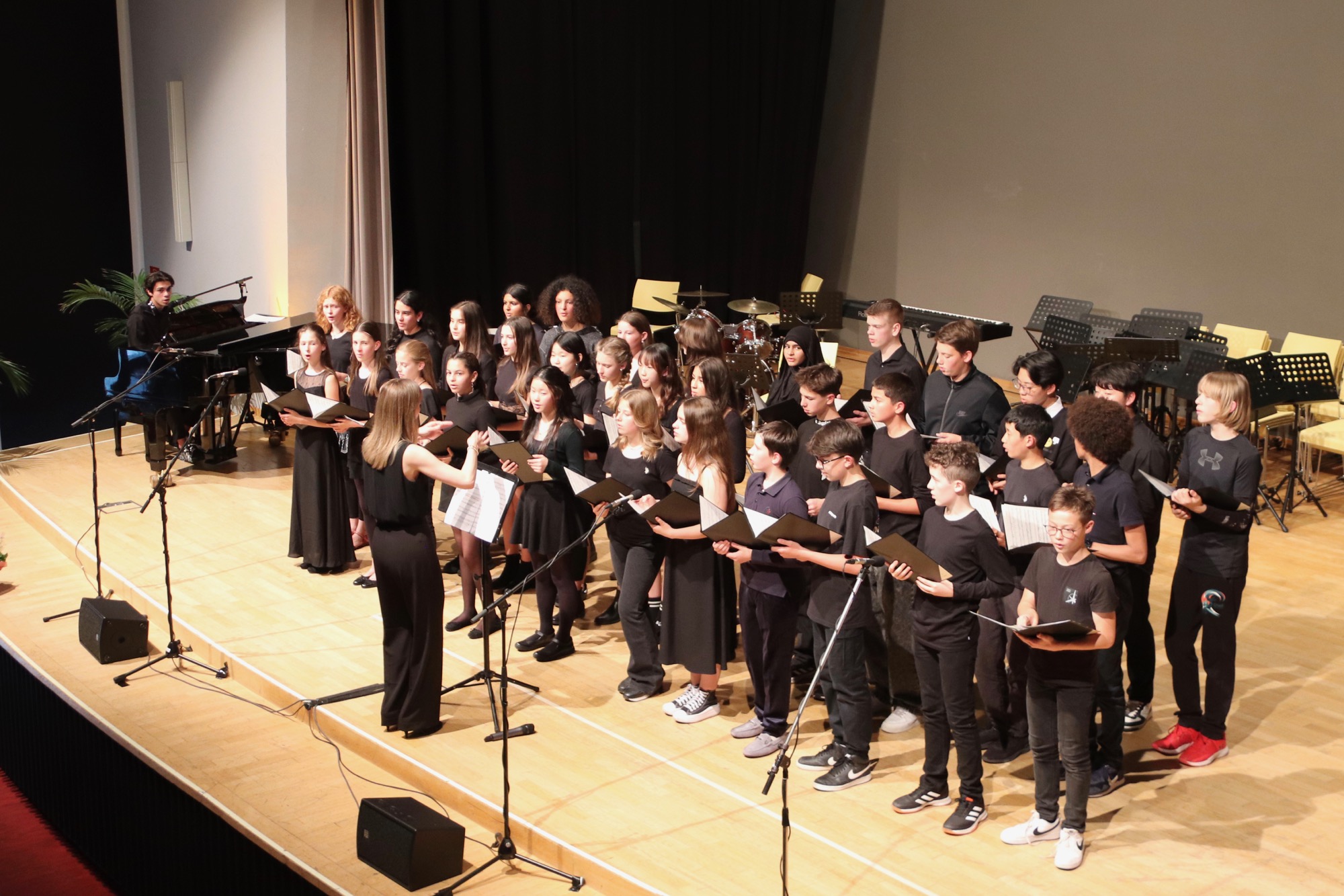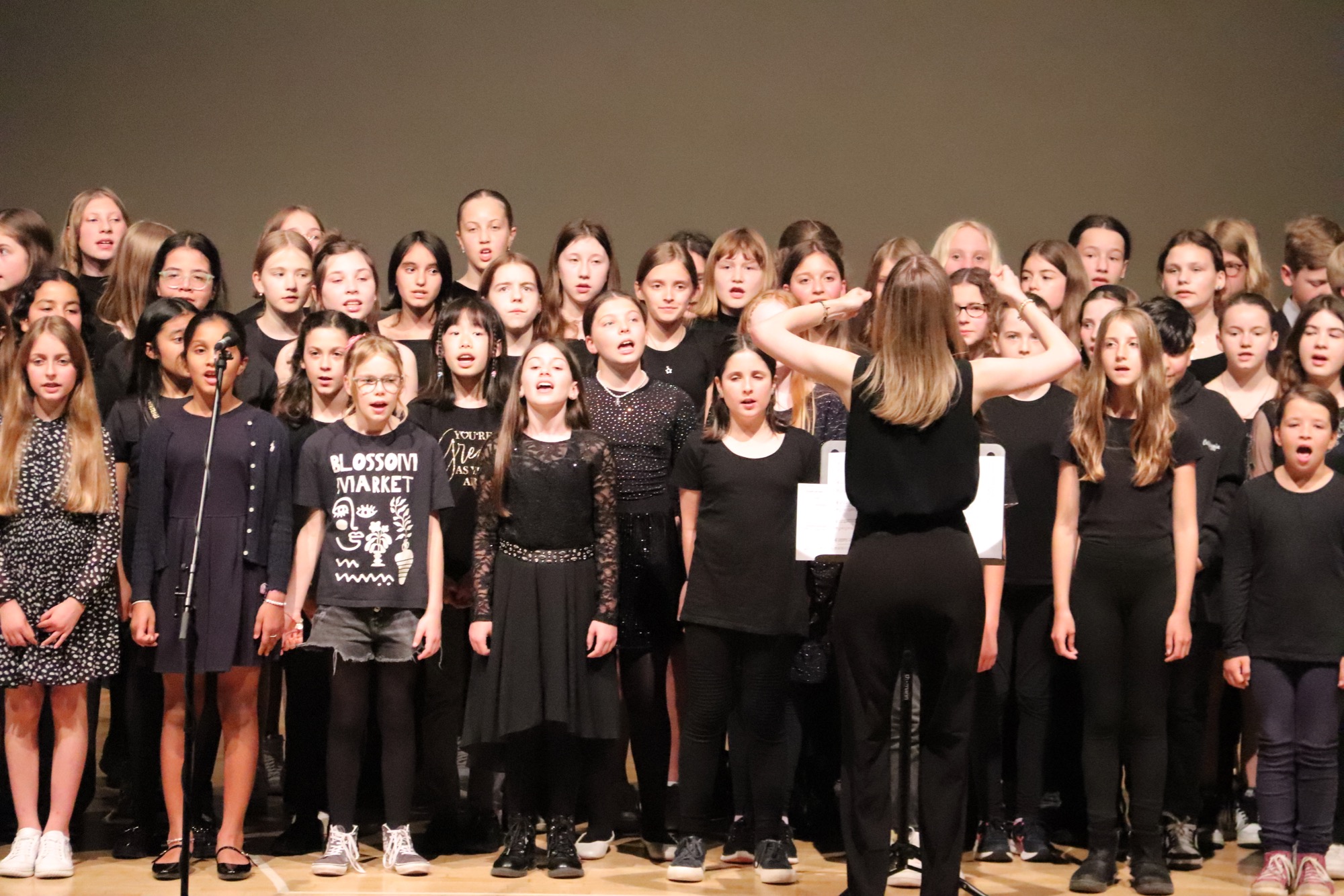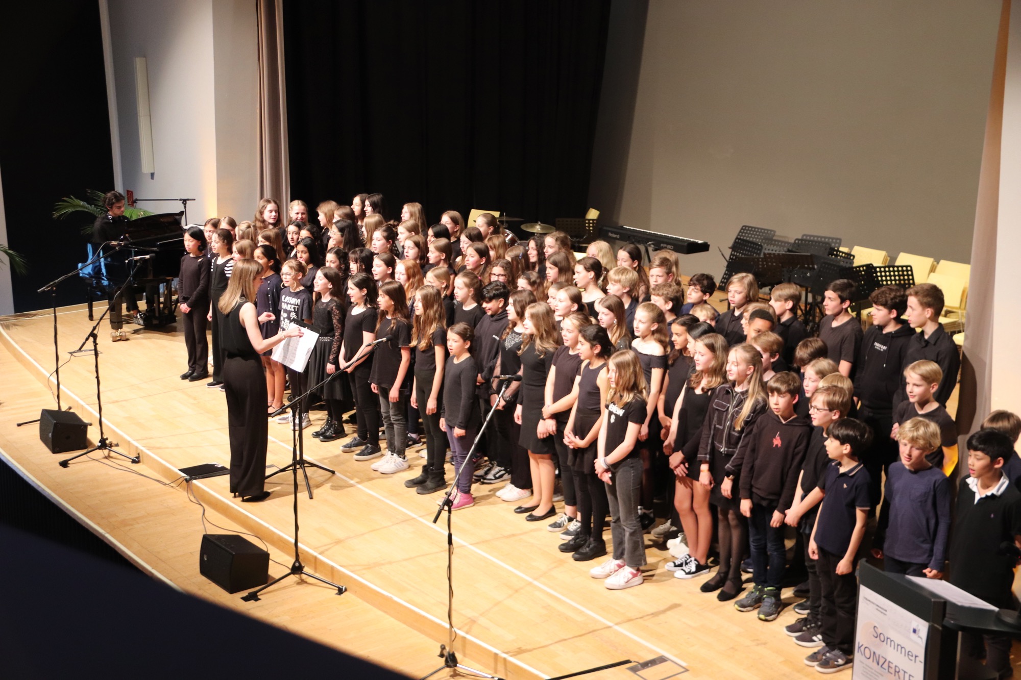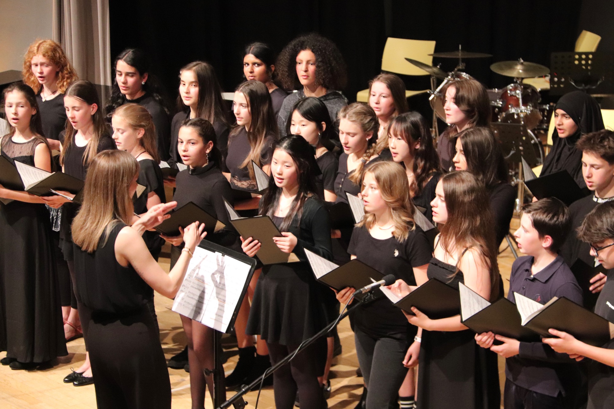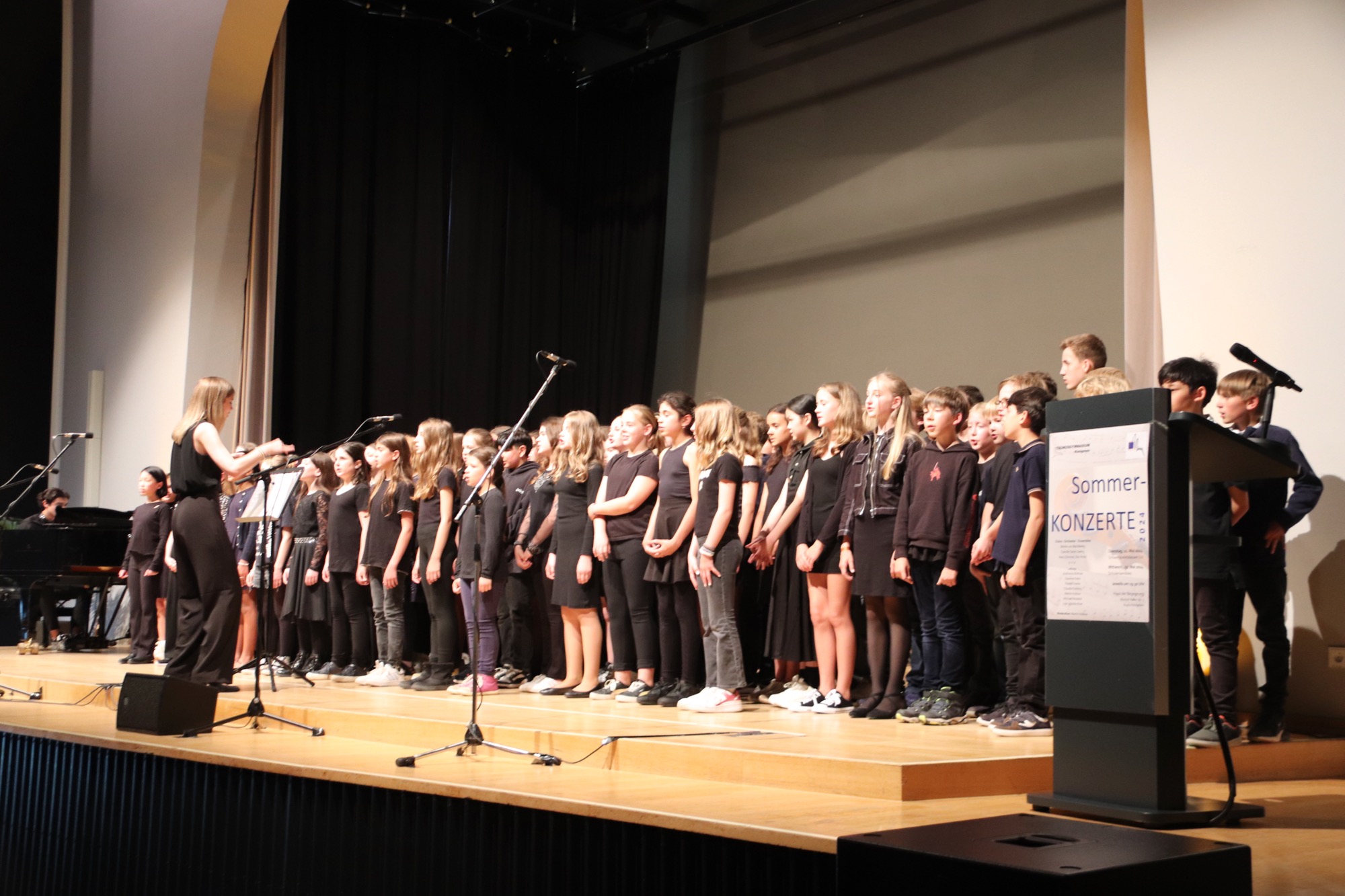 Die etwas größeren Sängerinnen und Sänger formieren mittlerweile einen eigenen Chor, genannt „ChorUs“, der sich auf begeisternde Art verschiedenen Pop-Genres widmet. Der Hit „I want it that way“ von den Backstreet Boys, „Pompeii“ von Bastille – mit einem Gesangs-Solo von Lucio Ramírez del Prado Vetter (Q2) – und der beliebte Abba-Song „Mamma Mia“ – mit Solo-Einlagen von Kira Milke (7b) und Hanna Jang (7f) – brachten den Saal zum Beben.