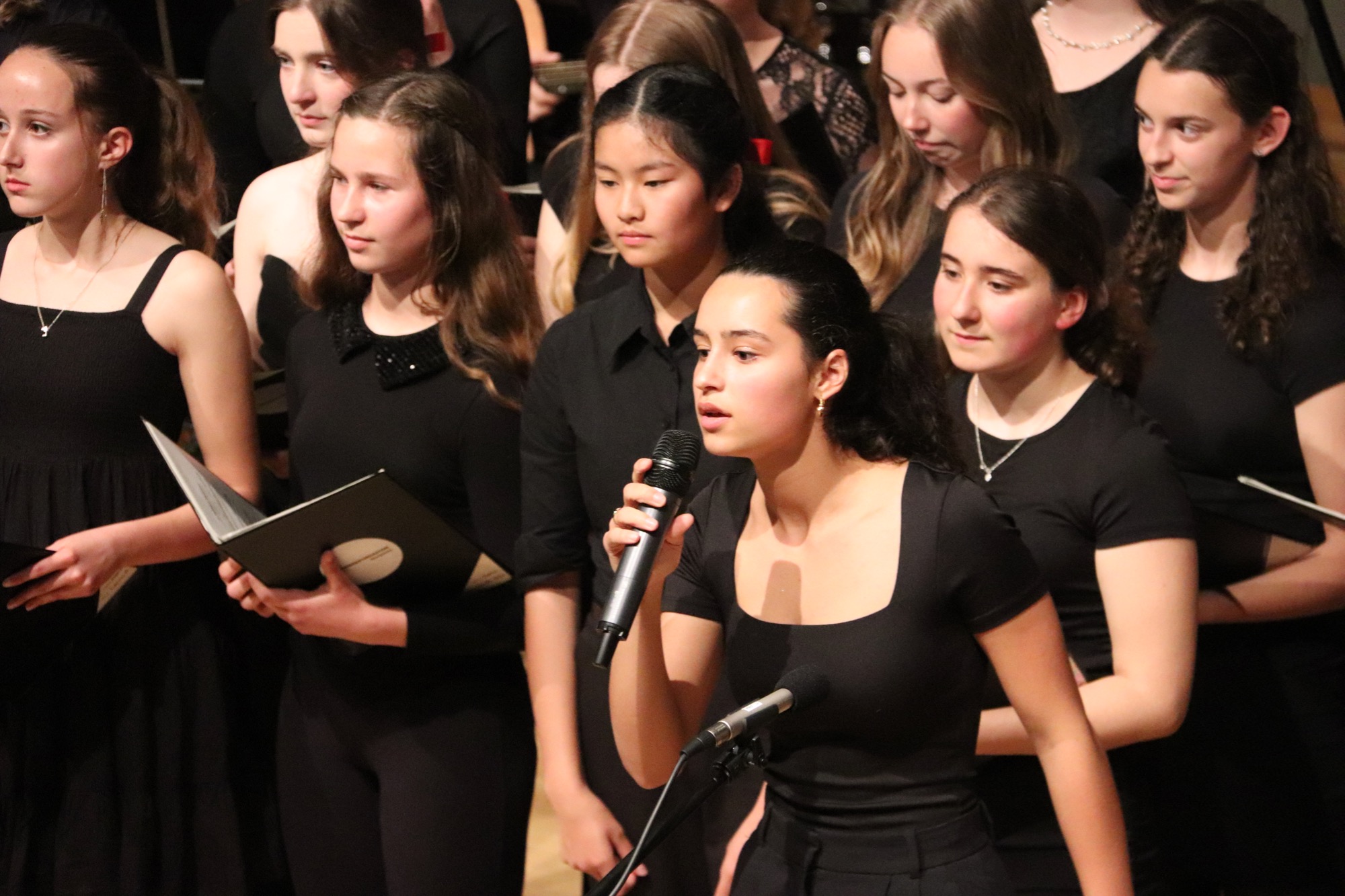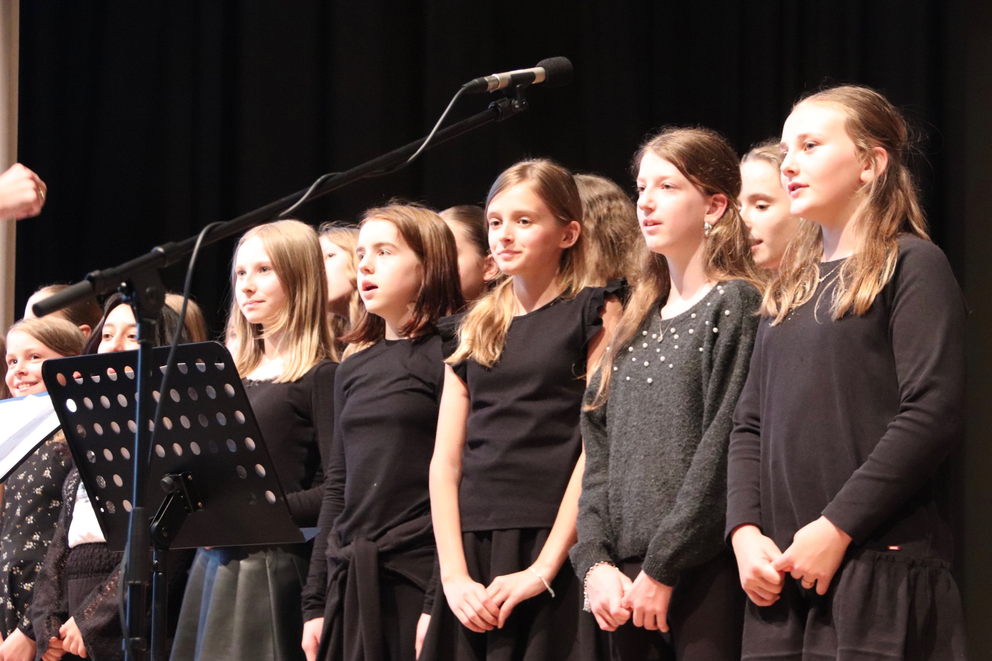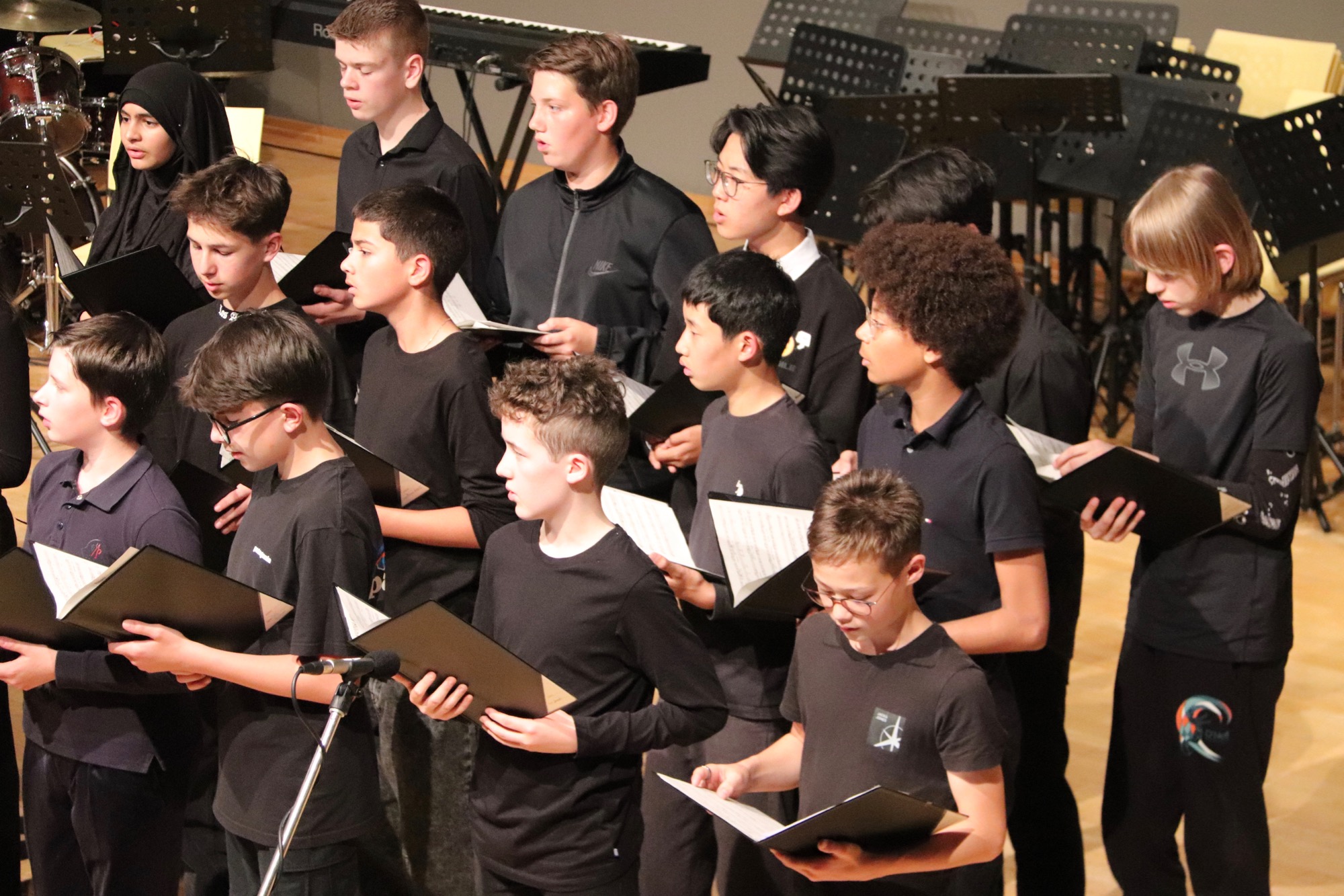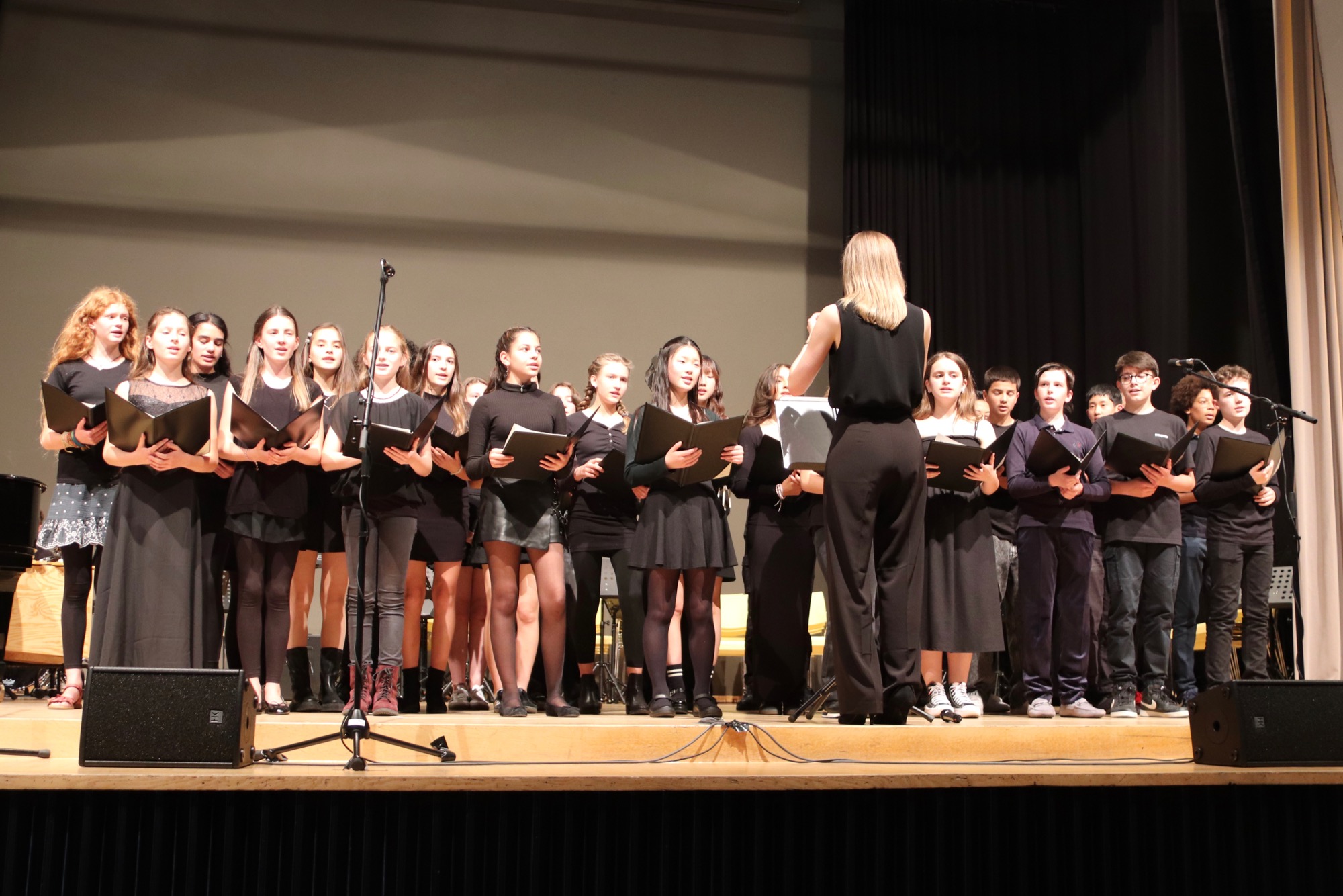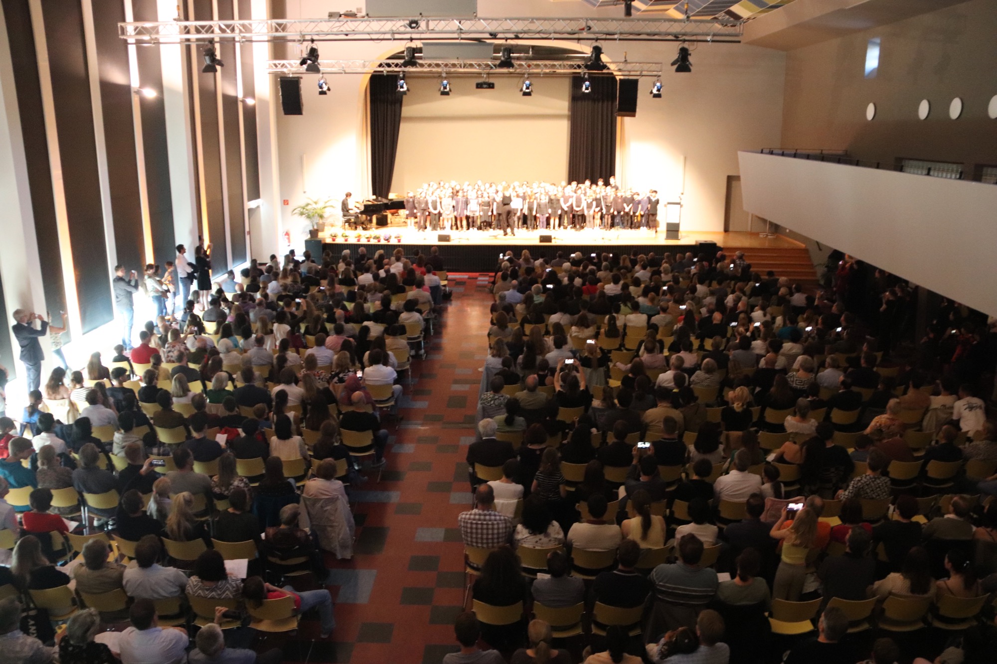 Die etwas größeren Sängerinnen und Sänger formieren mittlerweile einen eigenen Chor, genannt „ChorUs“, der sich auf begeisternde Art verschiedenen Pop-Genres widmet. Der Hit „I want it that way“ von den Backstreet Boys, „Pompeii“ von Bastille – mit einem Gesangs-Solo von Lucio Ramírez del Prado Vetter (Q2) – und der beliebte Abba-Song „Mamma Mia“ – mit Solo-Einlagen von Kira Milke (7b) und Hanna Jang (7f) – brachten den Saal zum Beben.