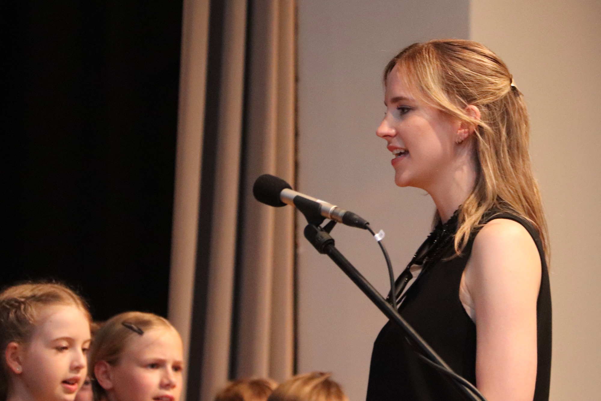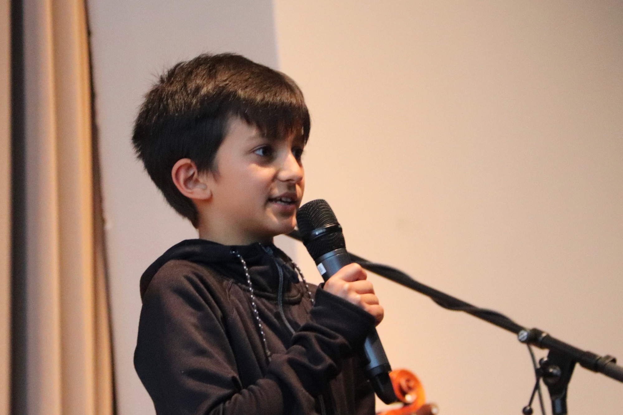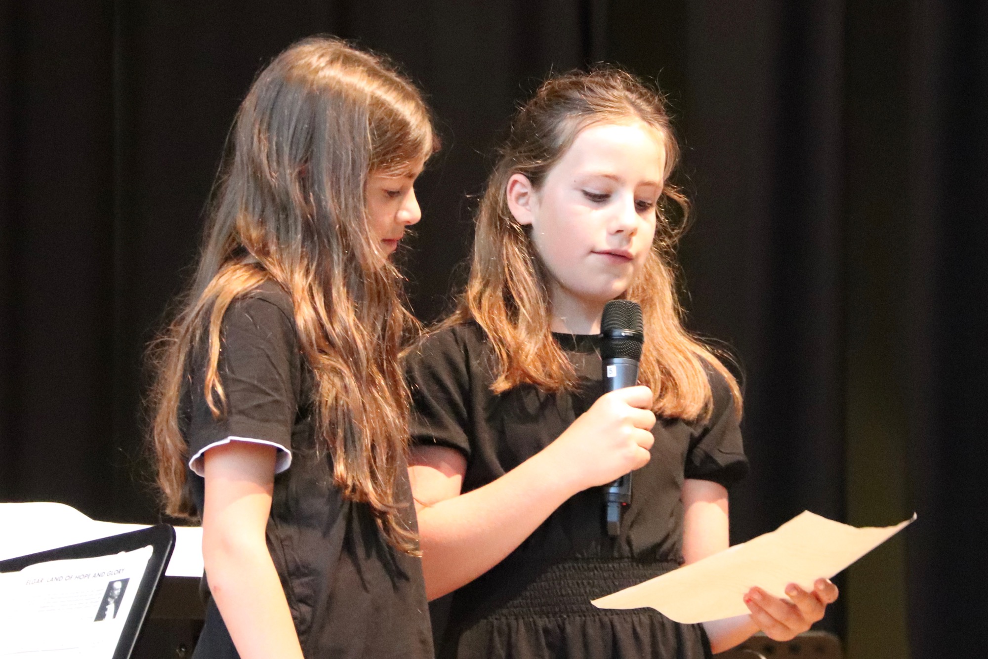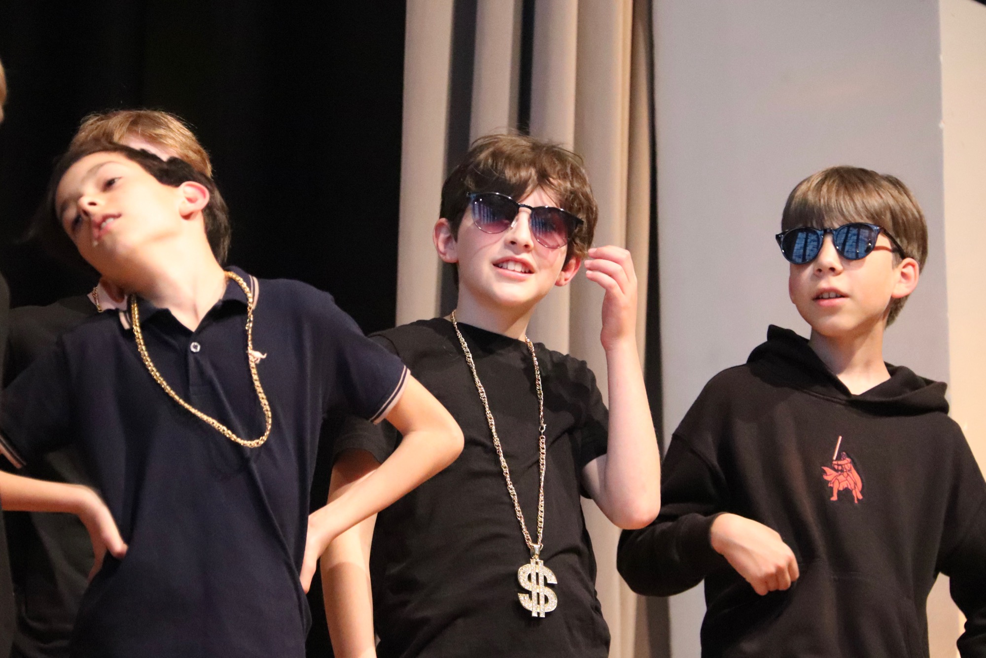 Die Gesangsgruppe der Klasse 5 brachte den Saal mit „Lemon Tree“ der deutschen Band Fools Garden zum Mitwippen, stimmte anschließend das Volkslied „Die Gedanken sind frei“ an und überraschte dann mit passender Kostümierung bei der Interpretation des Prinzen-Hits „Alles nur geklaut“, bei dem sogar massenweise Geldscheine durch die Luft flogen. Geleitet wurde die Gesangsgruppe von Frau Büttner, am Flügel begleitete Lucio Ramírez del Prado Vetter (Q2) – ebenso wie bei der Gesangsgruppe der Klasse 6. Die fortgeschrittenen Gesangstalente brachten „Für immer Frühling“ von Soffie, „Imagine“ von John Lennon und den Evergreen „California Dreamin’“ von The Mamas and the Papas zum Vortrag. Und die Mamas, Papas, Freunde, Großeltern und Lehrkräfte waren begeistert, was sie mit einem donnernden Applaus zum Ausdruck brachten.