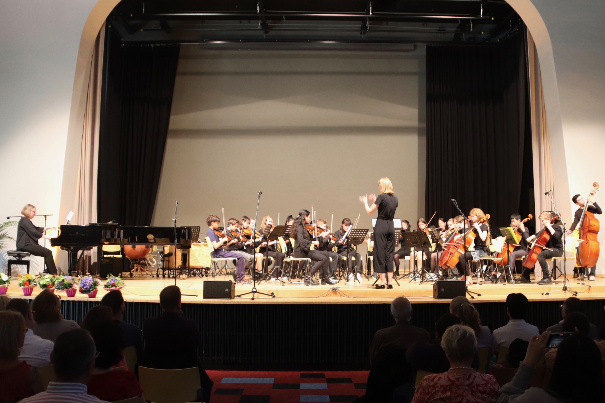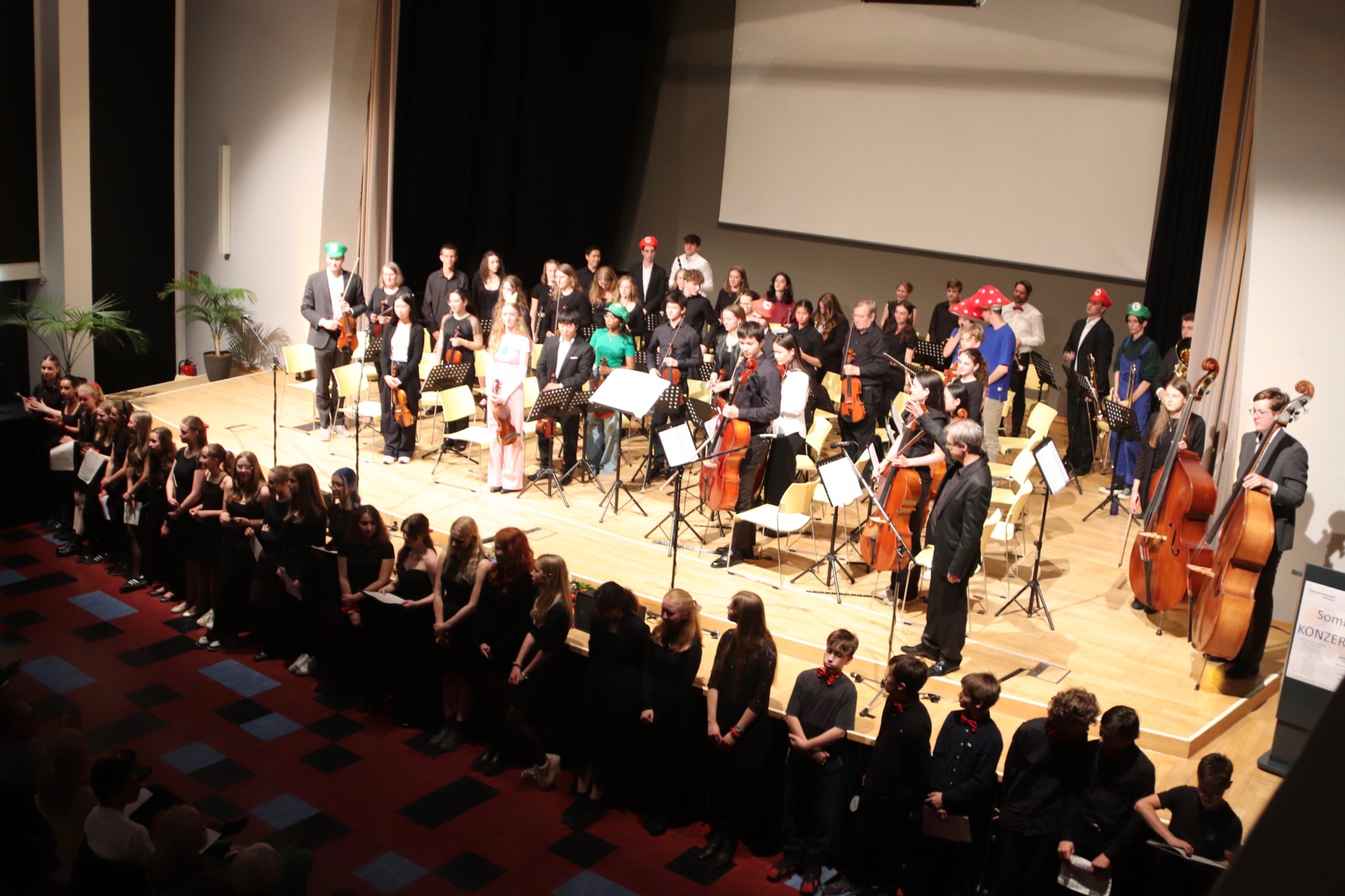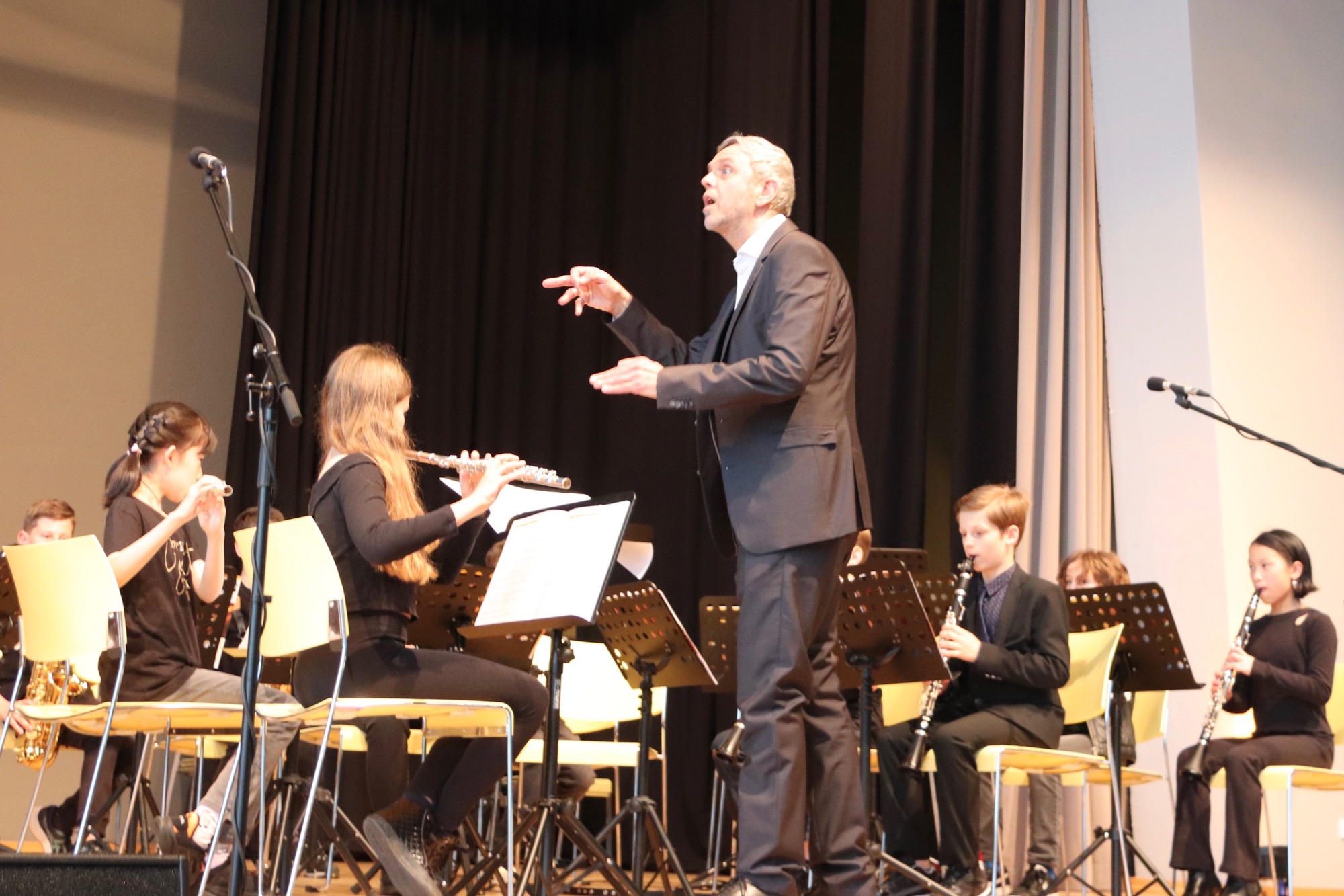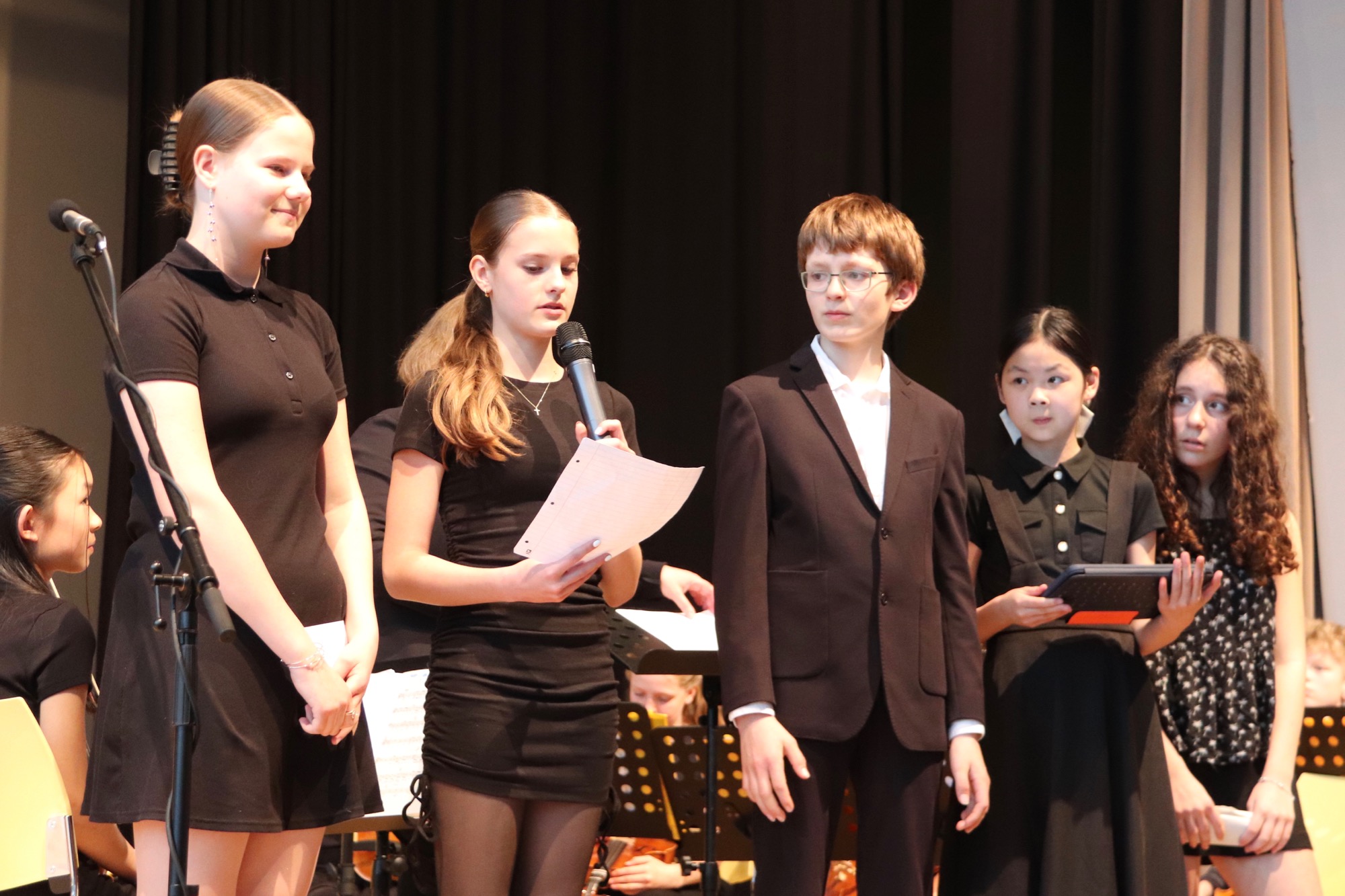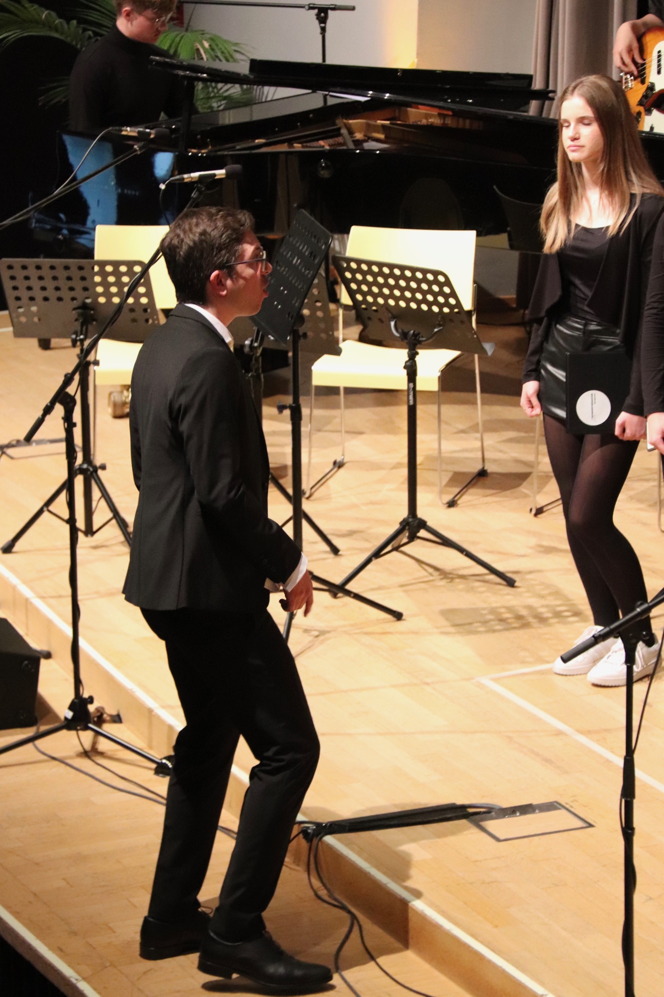 Schulleiterin Frau Herbst lobte in ihrem Grußwort das große Engagement der Musik-Lehrkräfte und beschwor die einigende Kraft der Musik, gerade auch in schwierigen Zeiten. Moderiert wurde der Abend in gewohnt souveräner Art von Herrn Hublow.