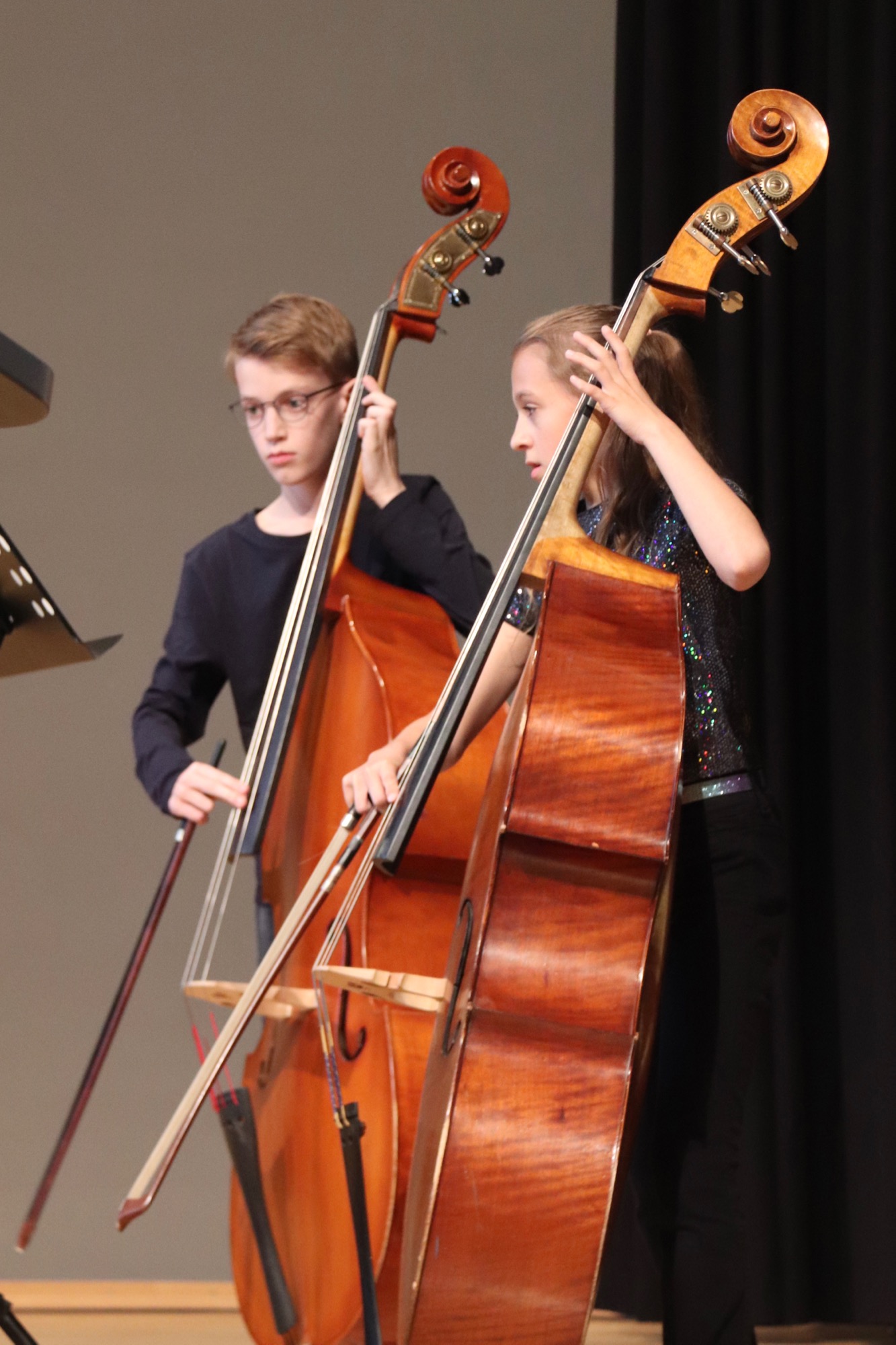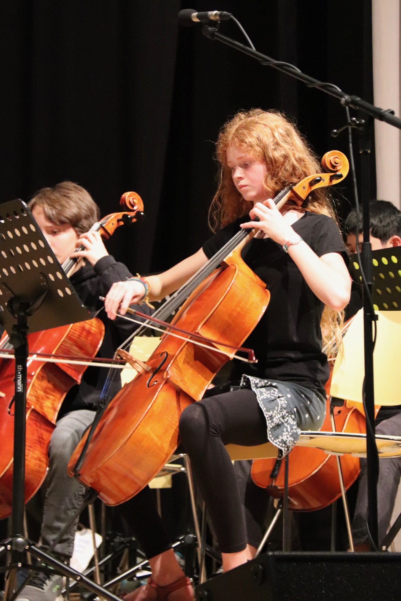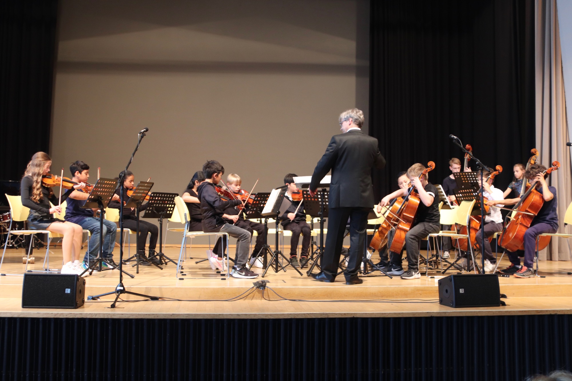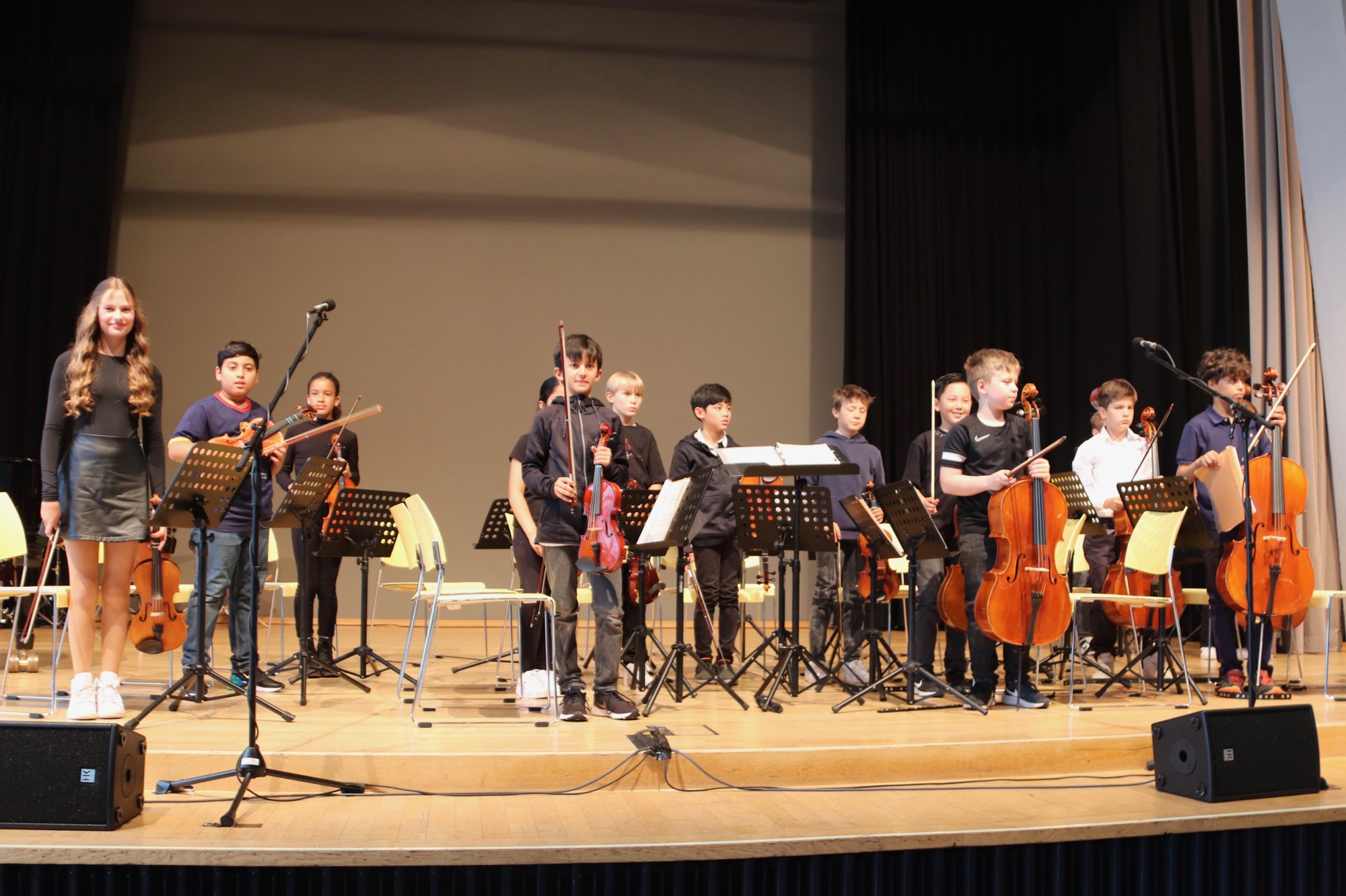 Die Streichergruppe der Klasse 5 spielte das französische Volkslied „Au clair de la lune“, das von Frau Fröhling einstudiert und nun von Herrn Neubeck dirigiert wurde. Die Streichergruppe der Klasse 6 brachte mit dem bekannten „Can Can“ von Jacques Offenbach Schwung in den Konzertsaal und trug mit „The Medallion Calls“ ein weiteres Stück von Klaus Badelt aus dem Soundtrack von „Pirates of the Caribbean“ vor. Geleitet wurde die Gruppe von Frau Dr. Eden.