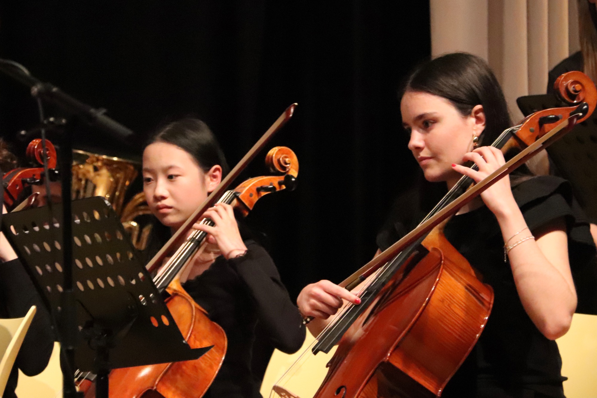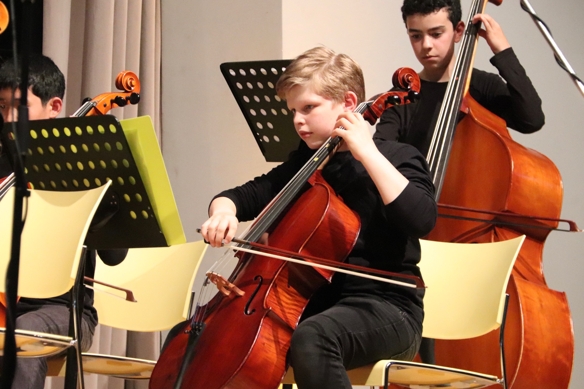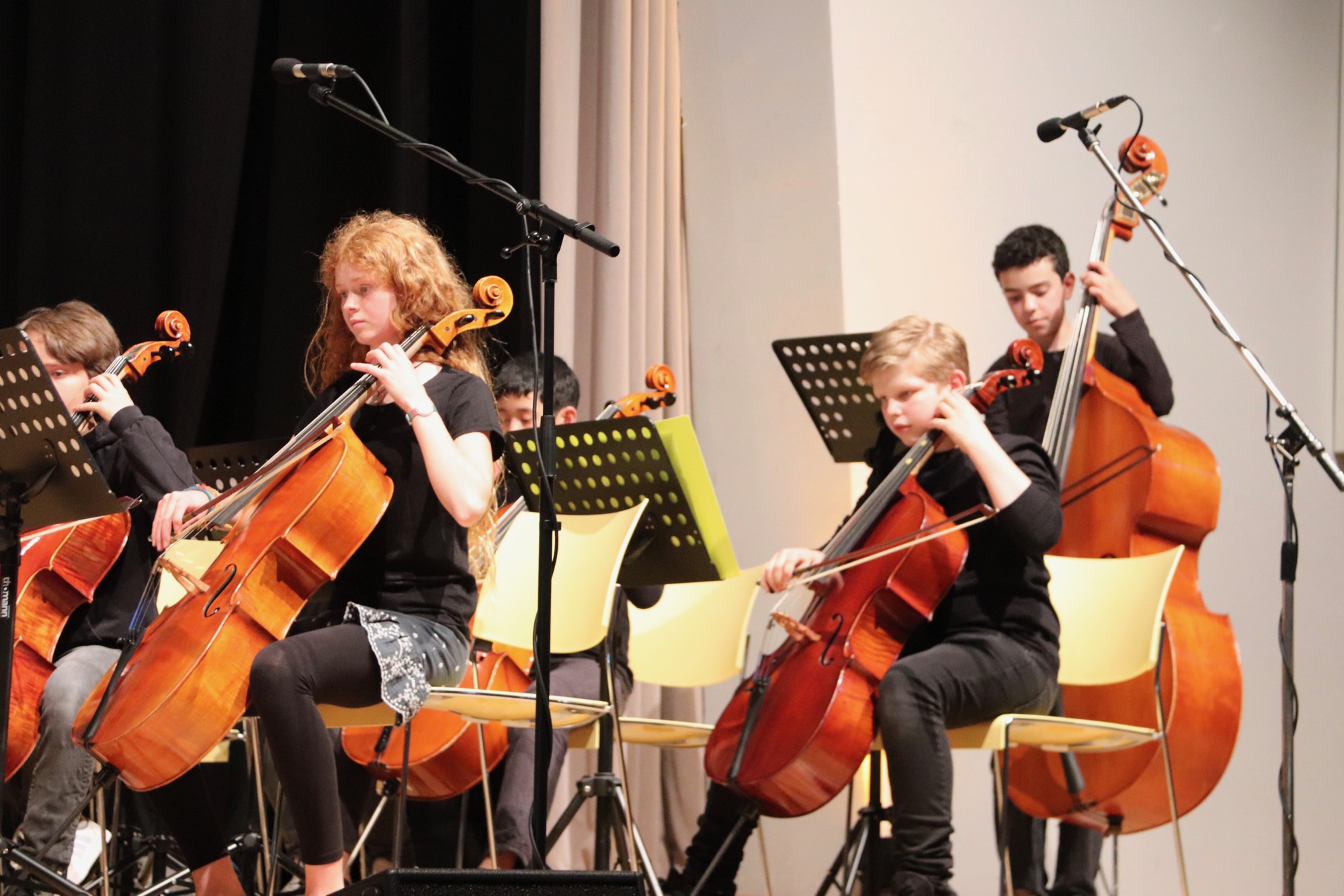 Die Streichergruppe der Klasse 5 spielte das französische Volkslied „Au clair de la lune“, das von Frau Fröhling einstudiert und nun von Herrn Neubeck dirigiert wurde. Die Streichergruppe der Klasse 6 brachte mit dem bekannten „Can Can“ von Jacques Offenbach Schwung in den Konzertsaal und trug mit „The Medallion Calls“ ein weiteres Stück von Klaus Badelt aus dem Soundtrack von „Pirates of the Caribbean“ vor. Geleitet wurde die Gruppe von Frau Dr. Eden.