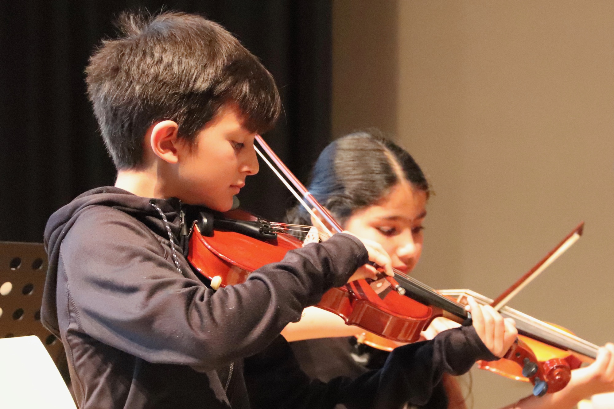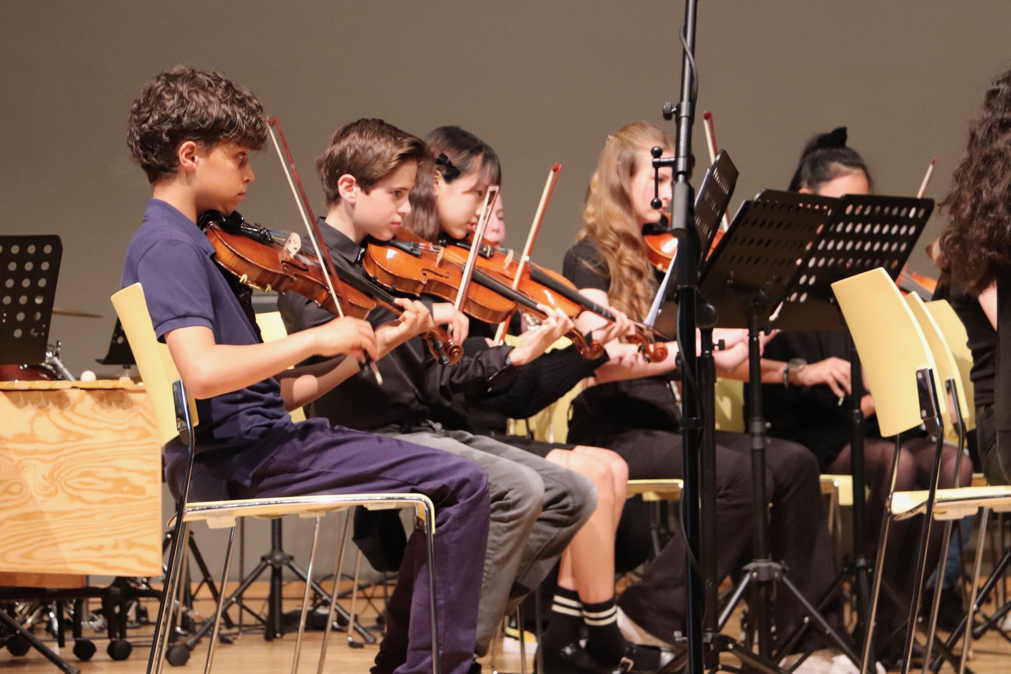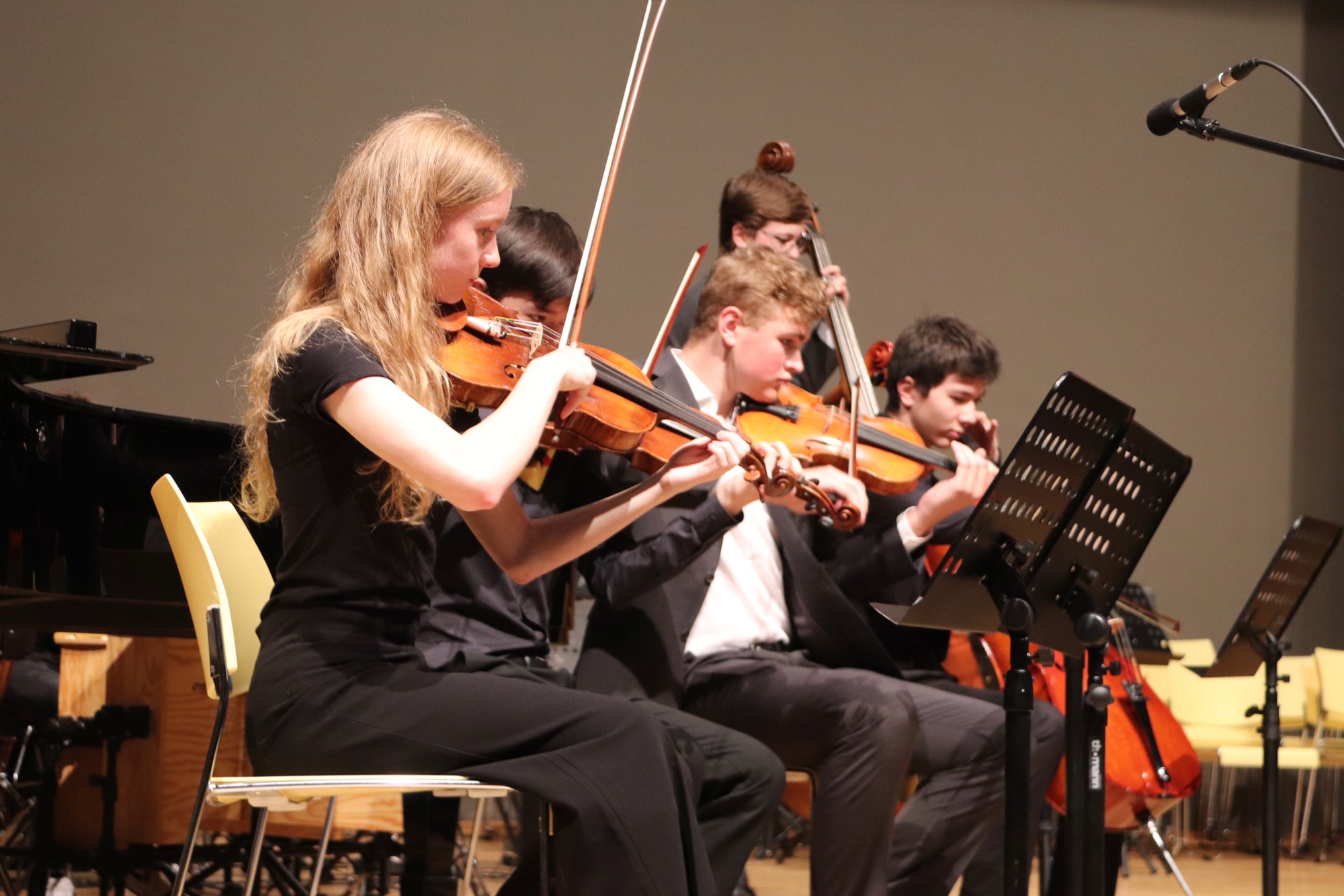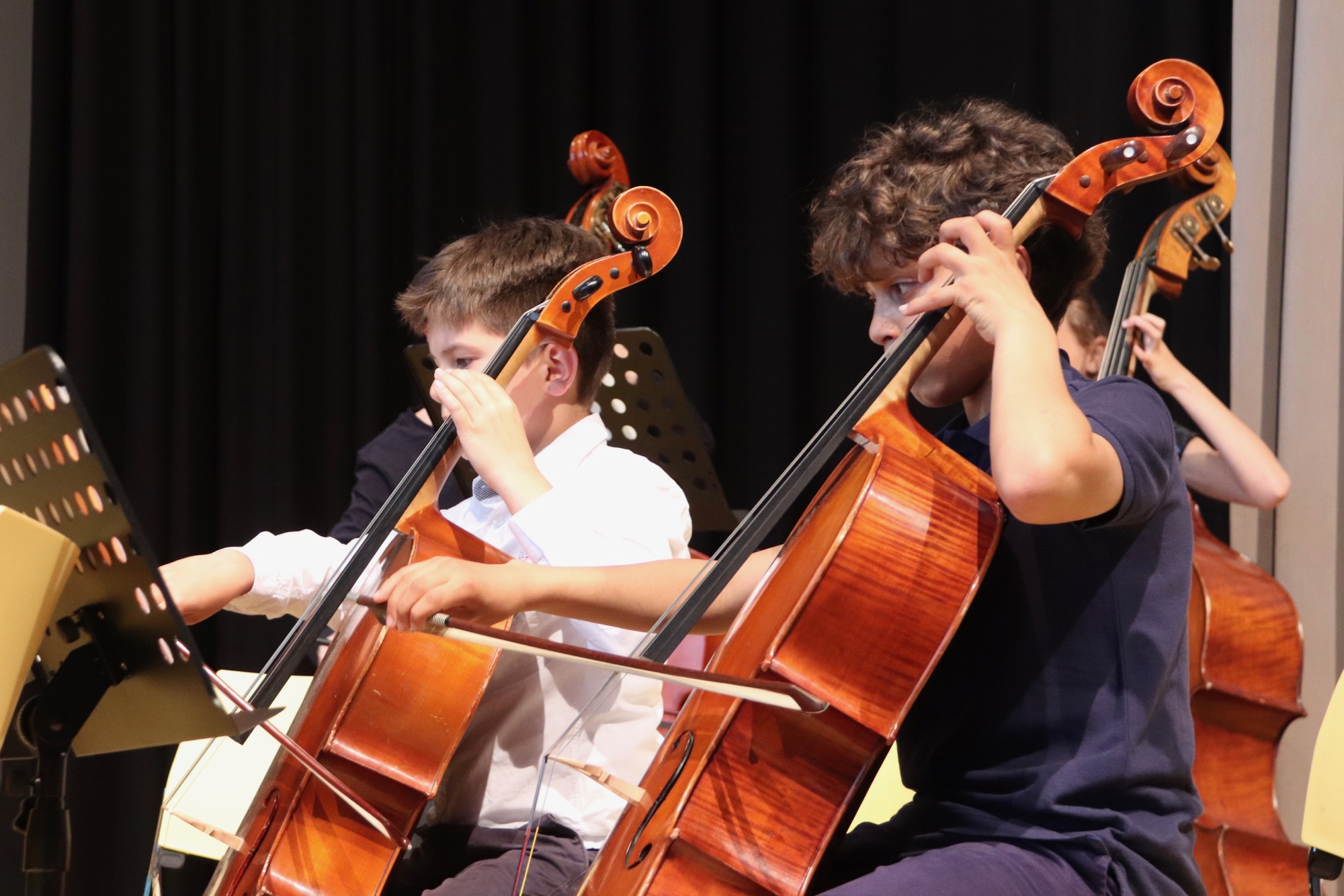 Die Streichergruppe der Klasse 5 spielte das französische Volkslied „Au clair de la lune“, das von Frau Fröhling einstudiert und nun von Herrn Neubeck dirigiert wurde. Die Streichergruppe der Klasse 6 brachte mit dem bekannten „Can Can“ von Jacques Offenbach Schwung in den Konzertsaal und trug mit „The Medallion Calls“ ein weiteres Stück von Klaus Badelt aus dem Soundtrack von „Pirates of the Caribbean“ vor. Geleitet wurde die Gruppe von Frau Dr. Eden.