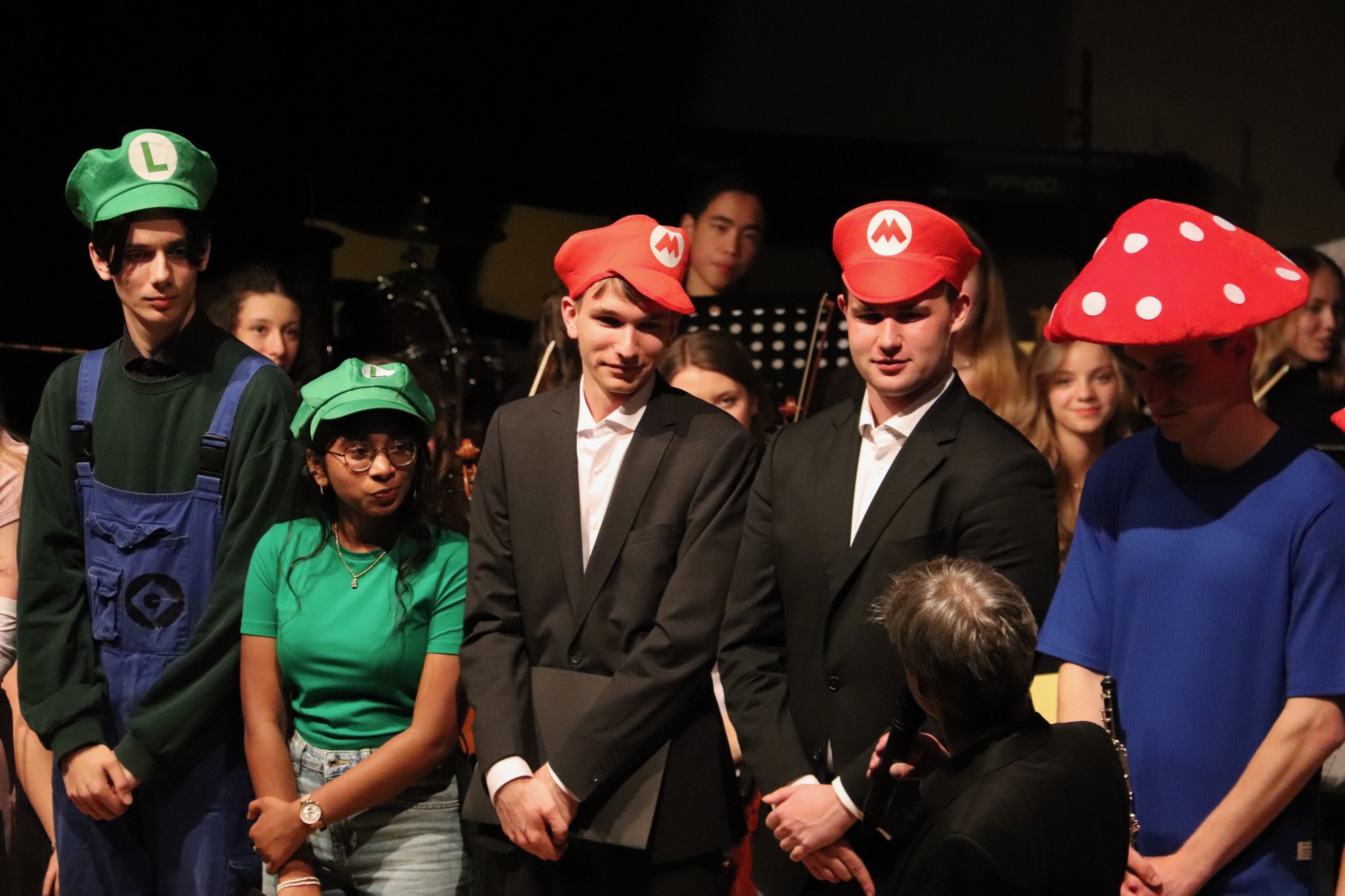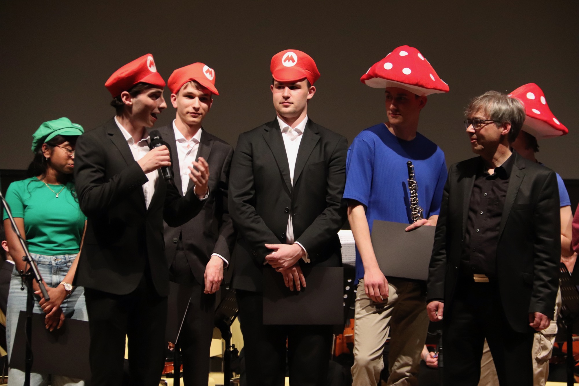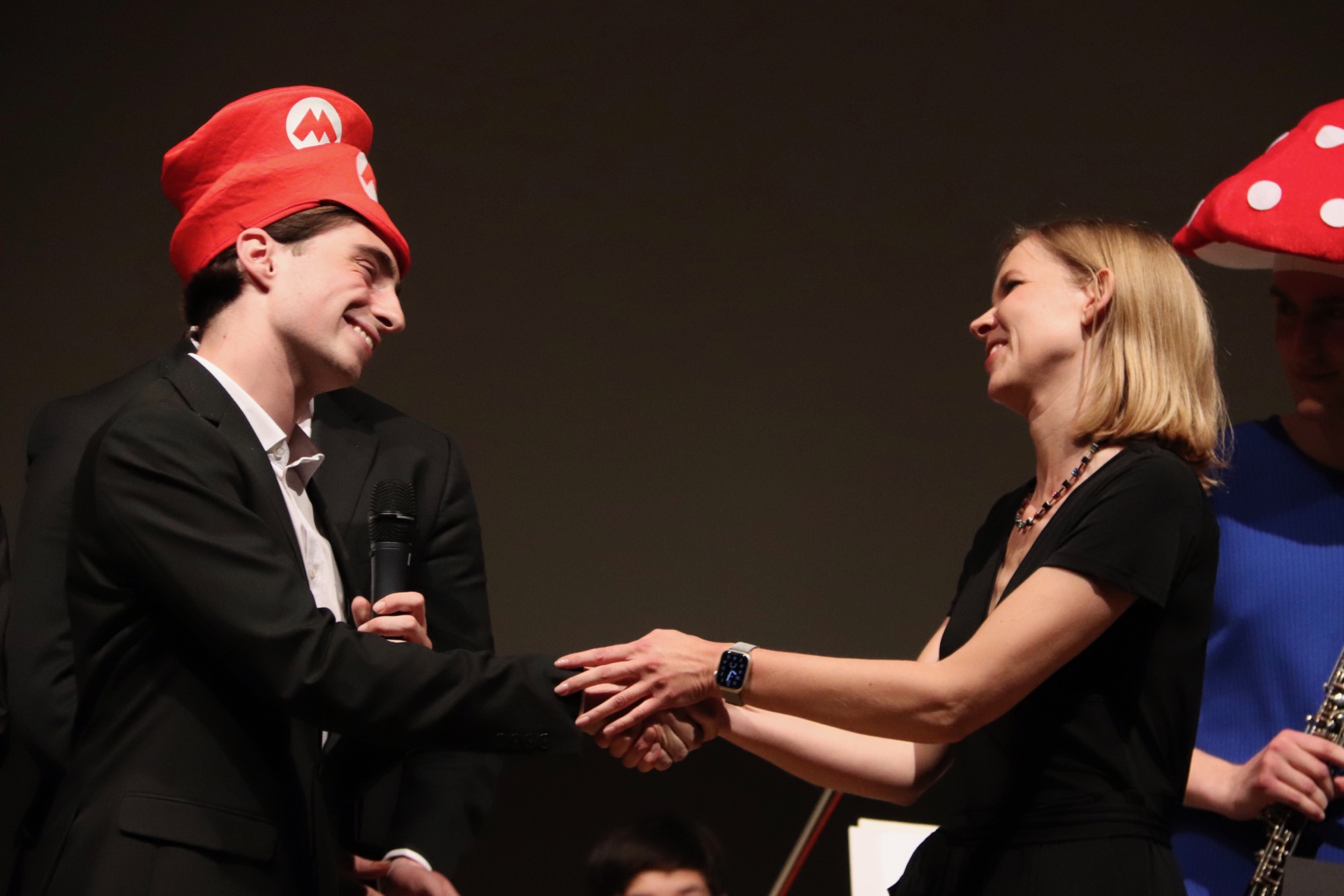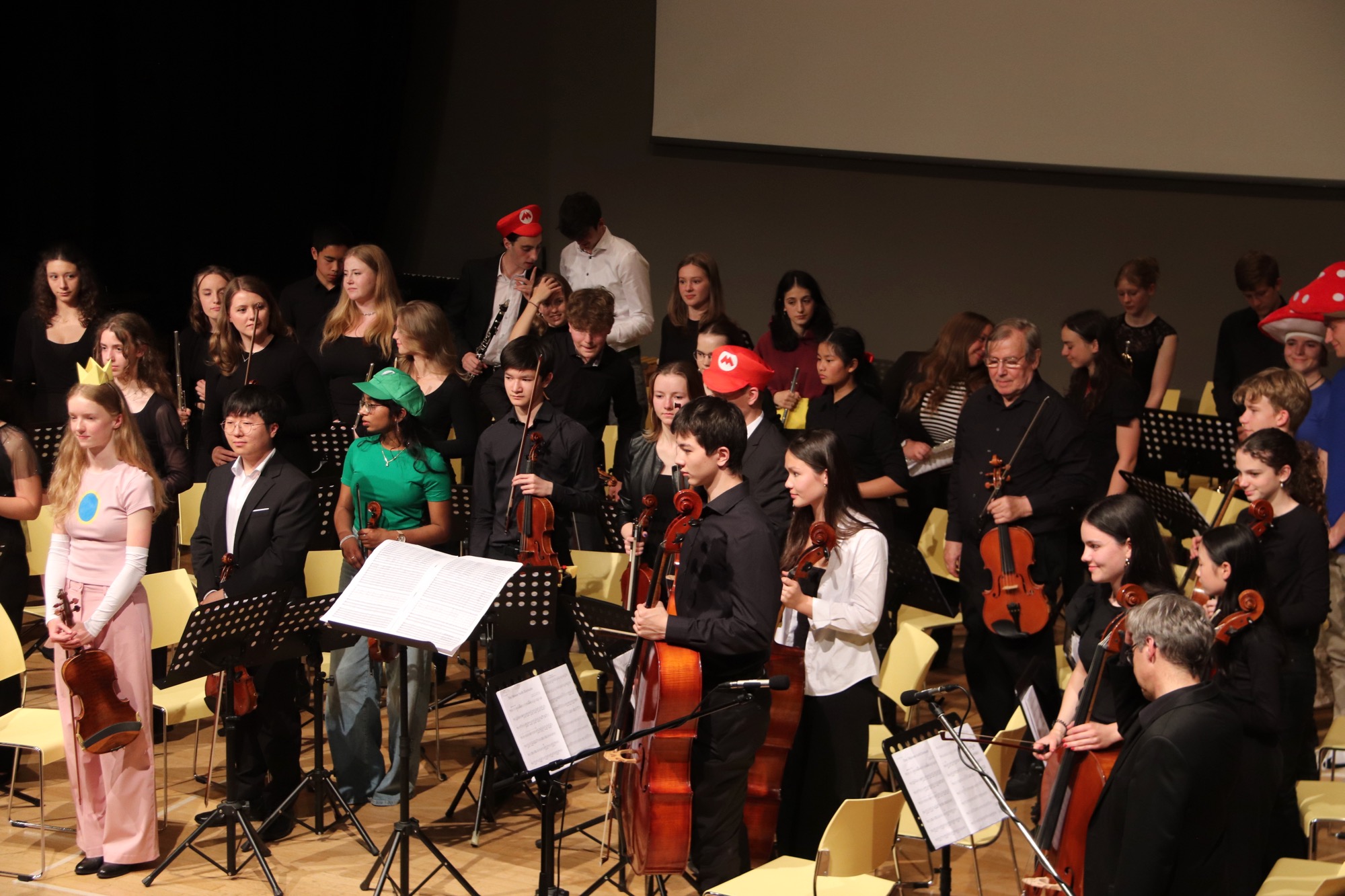 Wie es die Tradition vorsieht, wurden nun wieder die Abiturientinnen und Abiturienten feierlich verabschiedet, die mitunter während ihrer gesamten Gymnasialzeit in den Ensembles des TGK aktiv waren. Die Abiturientinnen und Abiturienten ließen es sich ihrerseits nicht nehmen, den Musik-Lehrkräften für die wunderbaren gemeinsamen Momente zu danken und ihnen dafür auch Blumen zu überreichen. Als kleine Überraschung hatten sie sogar ein Musikstück einstudiert: Sie brachten die „Super Mario“-Musik zu Gehör, untermalt von passenden Mitschnitten der bekannten Videospiele.
