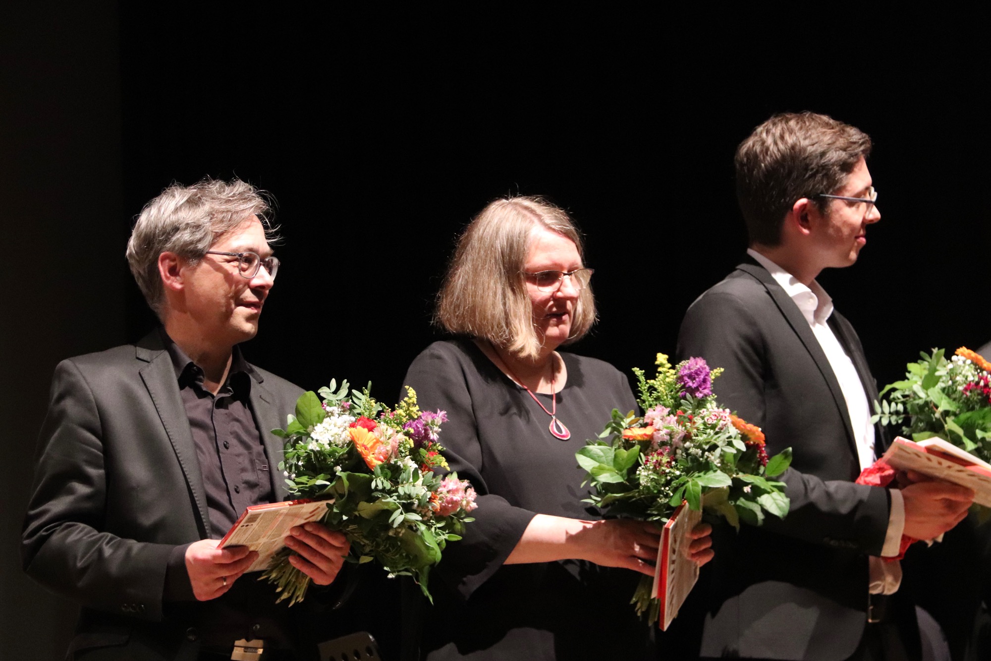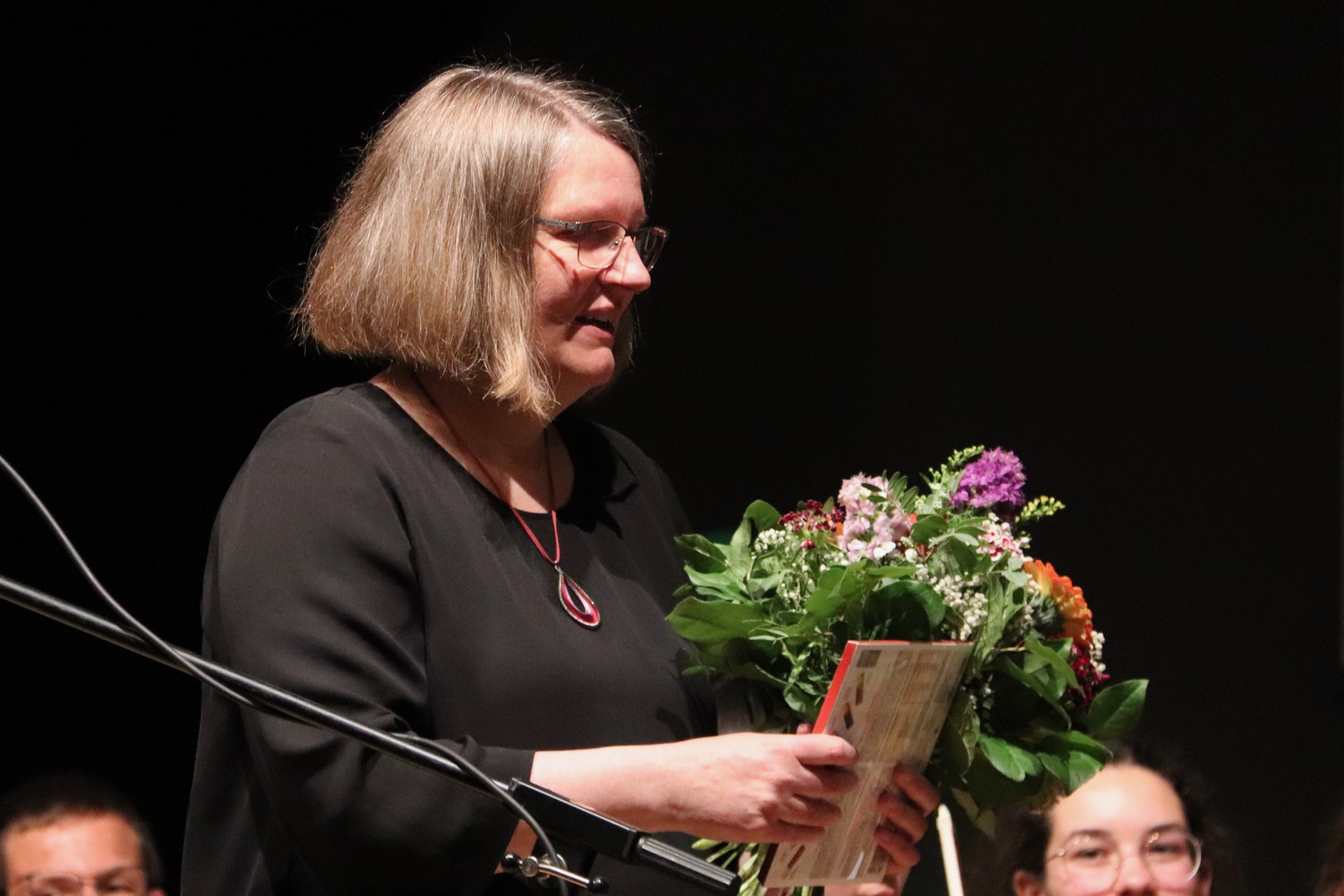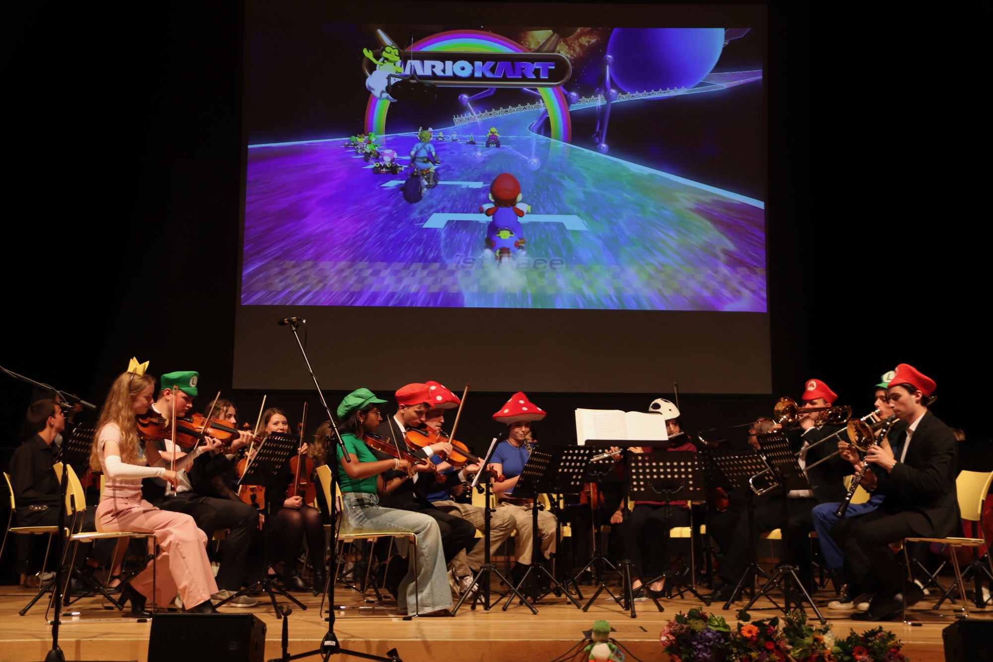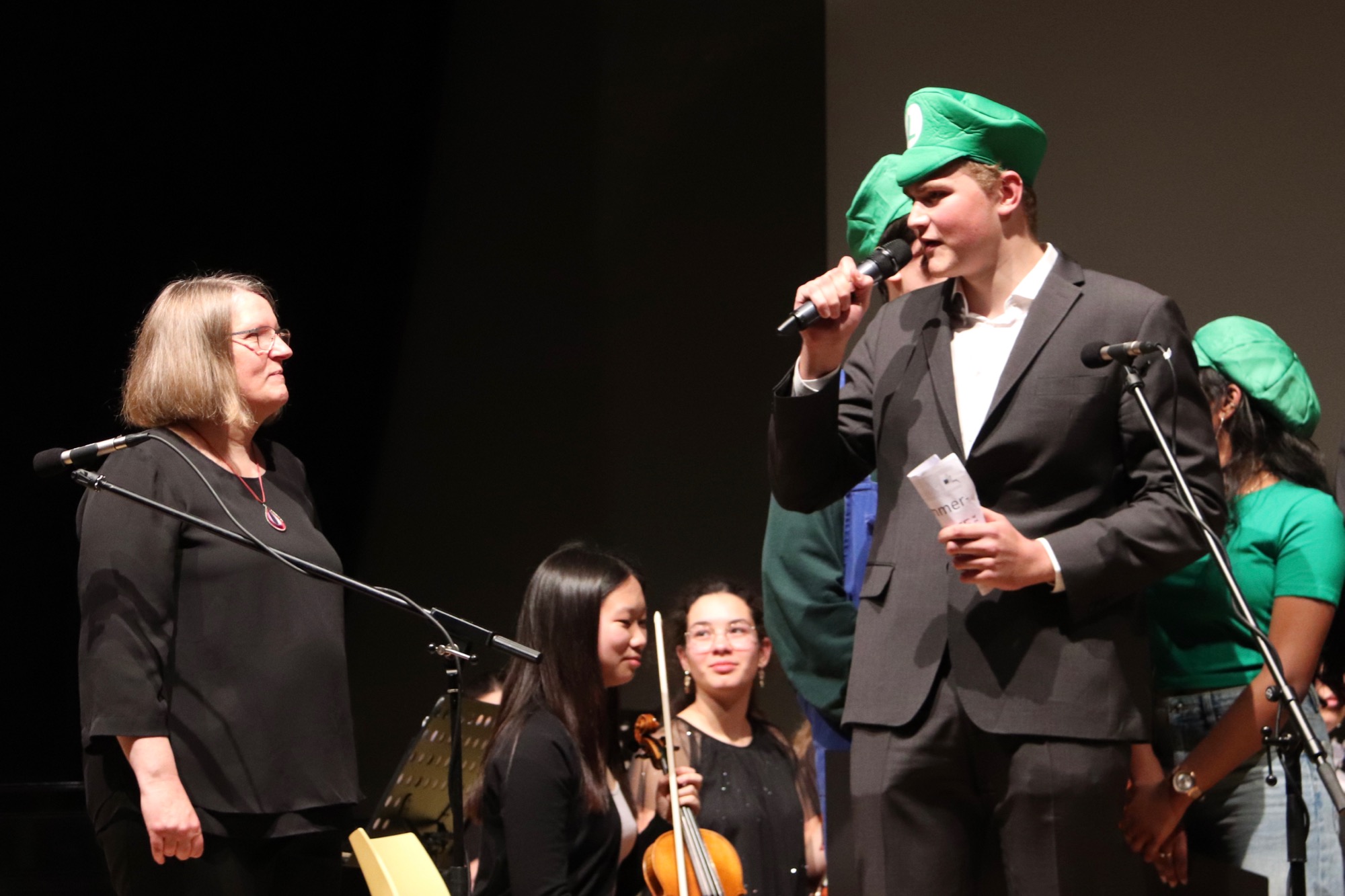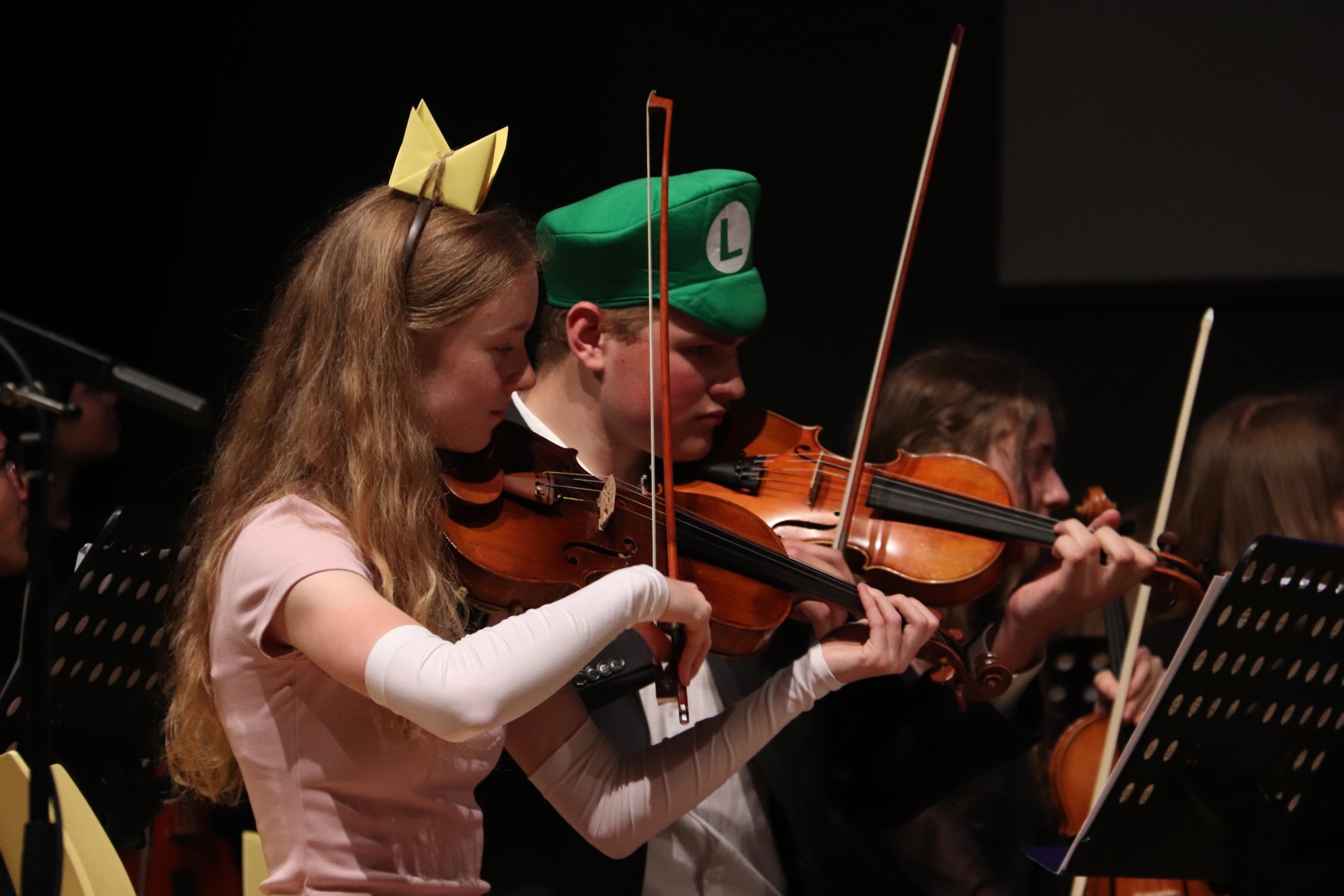 Wie es die Tradition vorsieht, wurden nun wieder die Abiturientinnen und Abiturienten feierlich verabschiedet, die mitunter während ihrer gesamten Gymnasialzeit in den Ensembles des TGK aktiv waren. Die Abiturientinnen und Abiturienten ließen es sich ihrerseits nicht nehmen, den Musik-Lehrkräften für die wunderbaren gemeinsamen Momente zu danken und ihnen dafür auch Blumen zu überreichen. Als kleine Überraschung hatten sie sogar ein Musikstück einstudiert: Sie brachten die „Super Mario“-Musik zu Gehör, untermalt von passenden Mitschnitten der bekannten Videospiele.