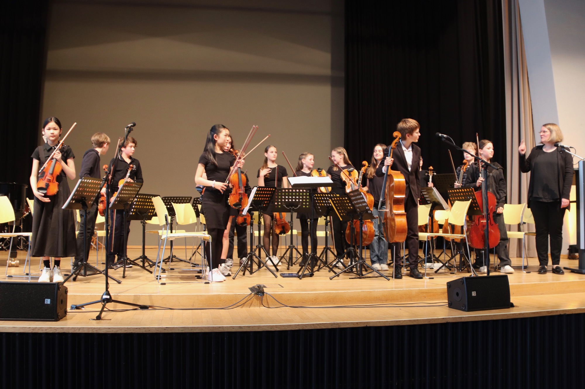 Auch die Streichergruppen legten Zeugnis davon ab, wie gut man innerhalb kurzer Zeit werden kann – einige der Musizierenden haben erst auf dem Taunusgymnasium mit ihrem Instrument begonnen. Auch hier war das Publikum wieder sehr angetan.