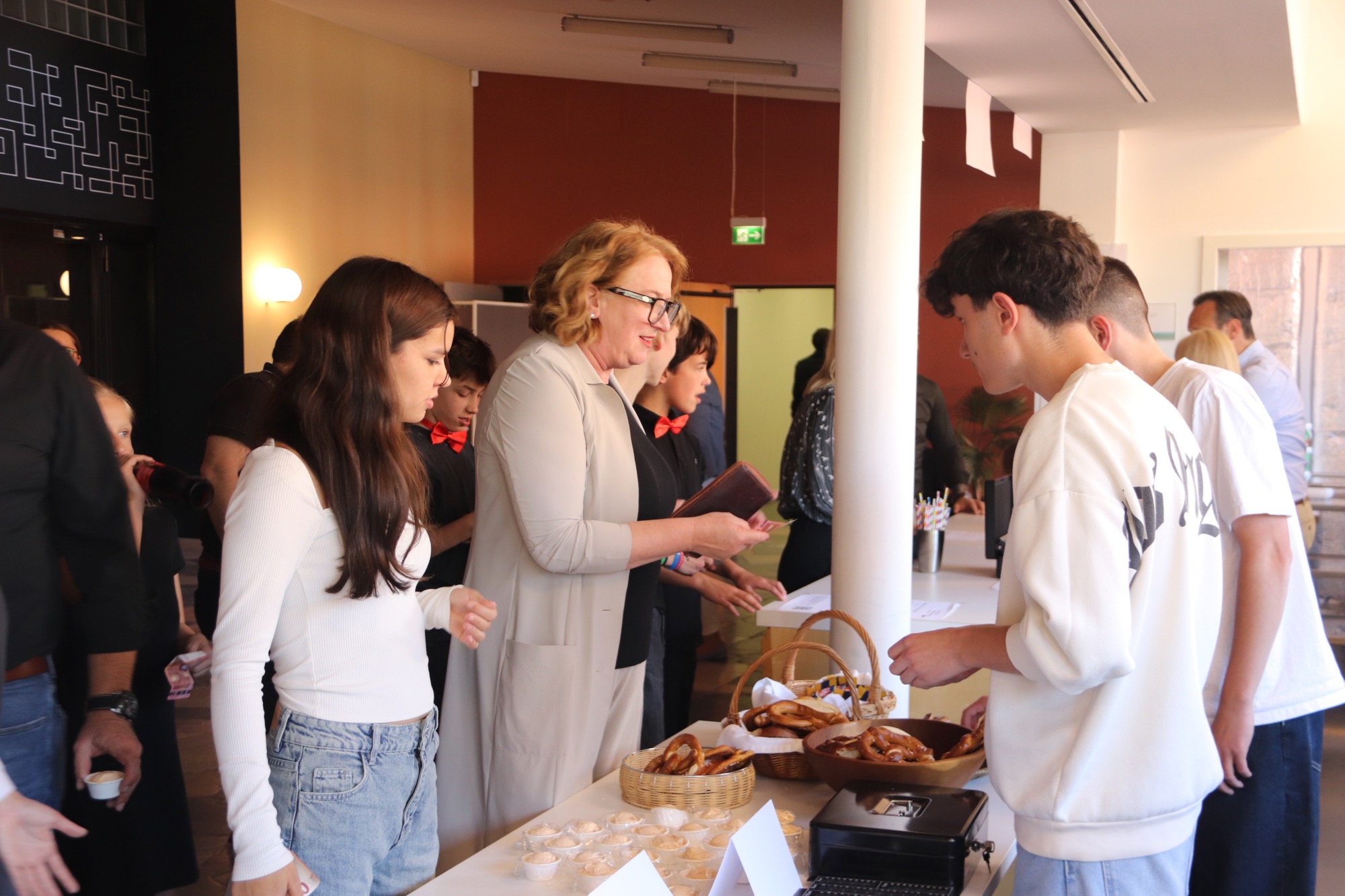 Eine Besonderheit, die geheimnisvoll angekündigt wurde, folgte nun: Der Musik-LK spielte seinen neuen „TGK-Song“ vor, der bereits fertig produziert worden war und das Publikum mit seinen positiven Vibes erfreute. Am nächsten Tag wurde der Song sogar erstmals live aufgeführt (mehr dazu weiter unten).