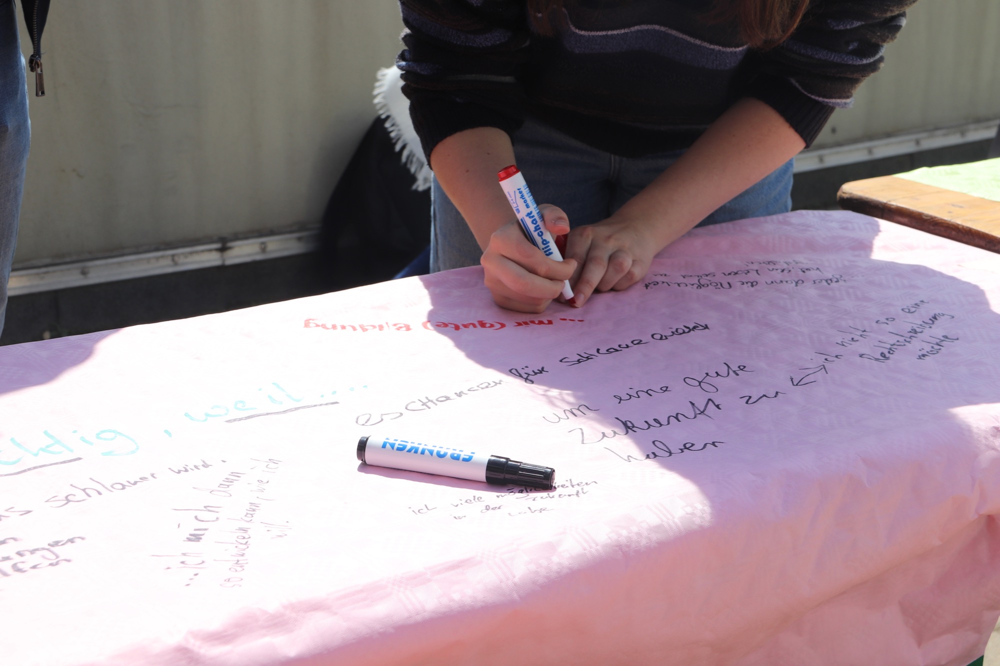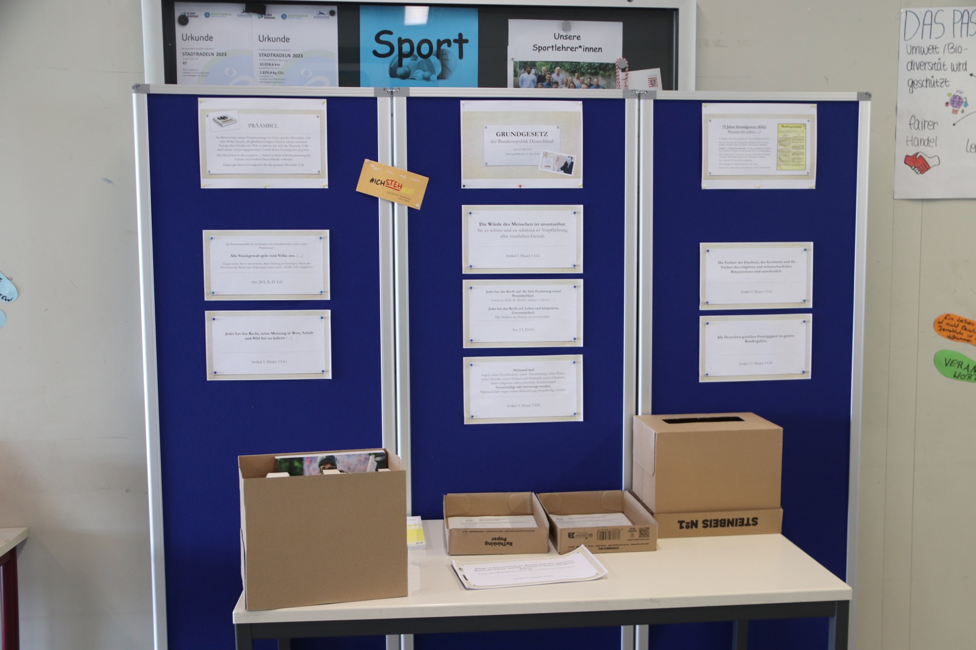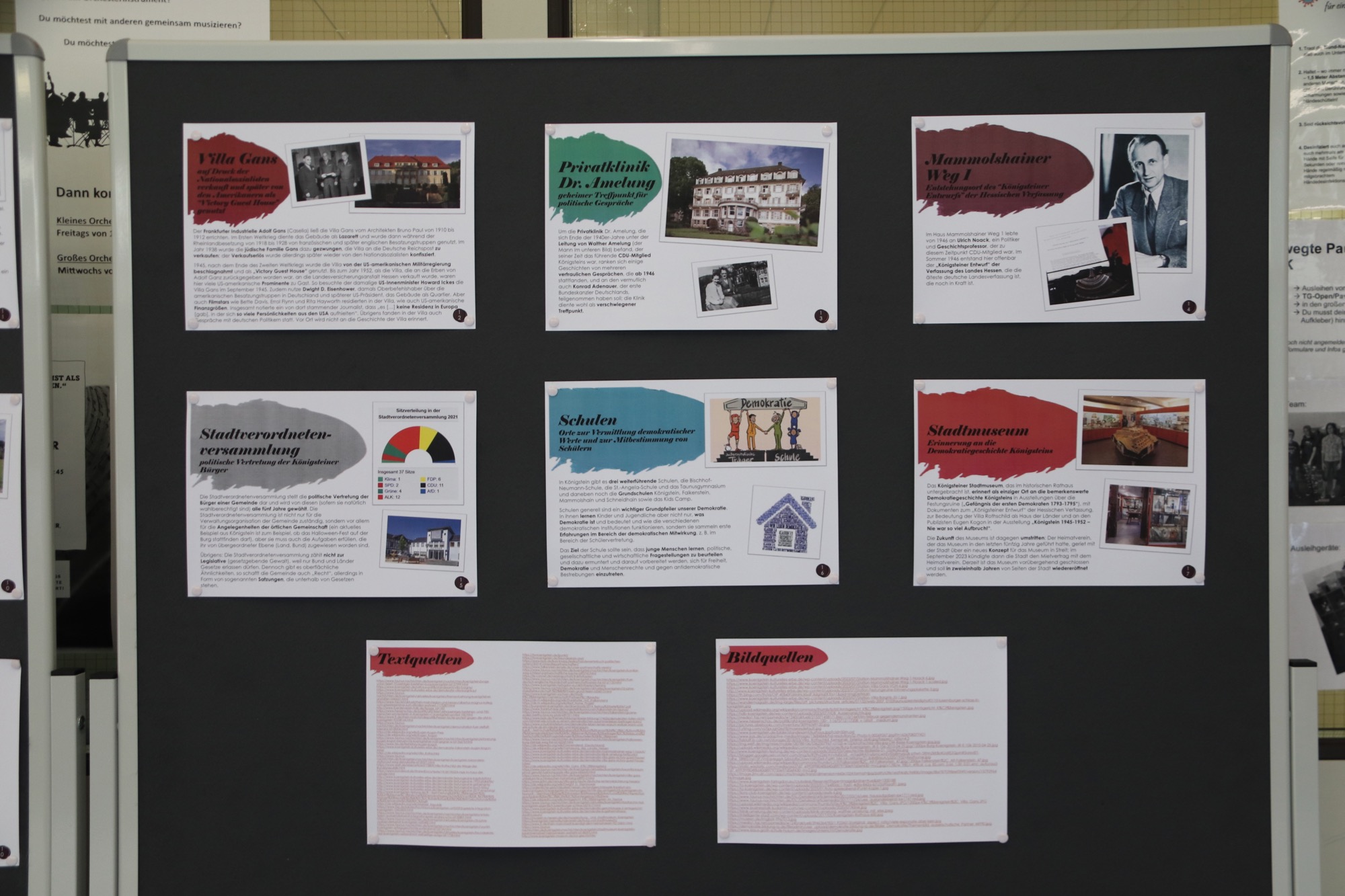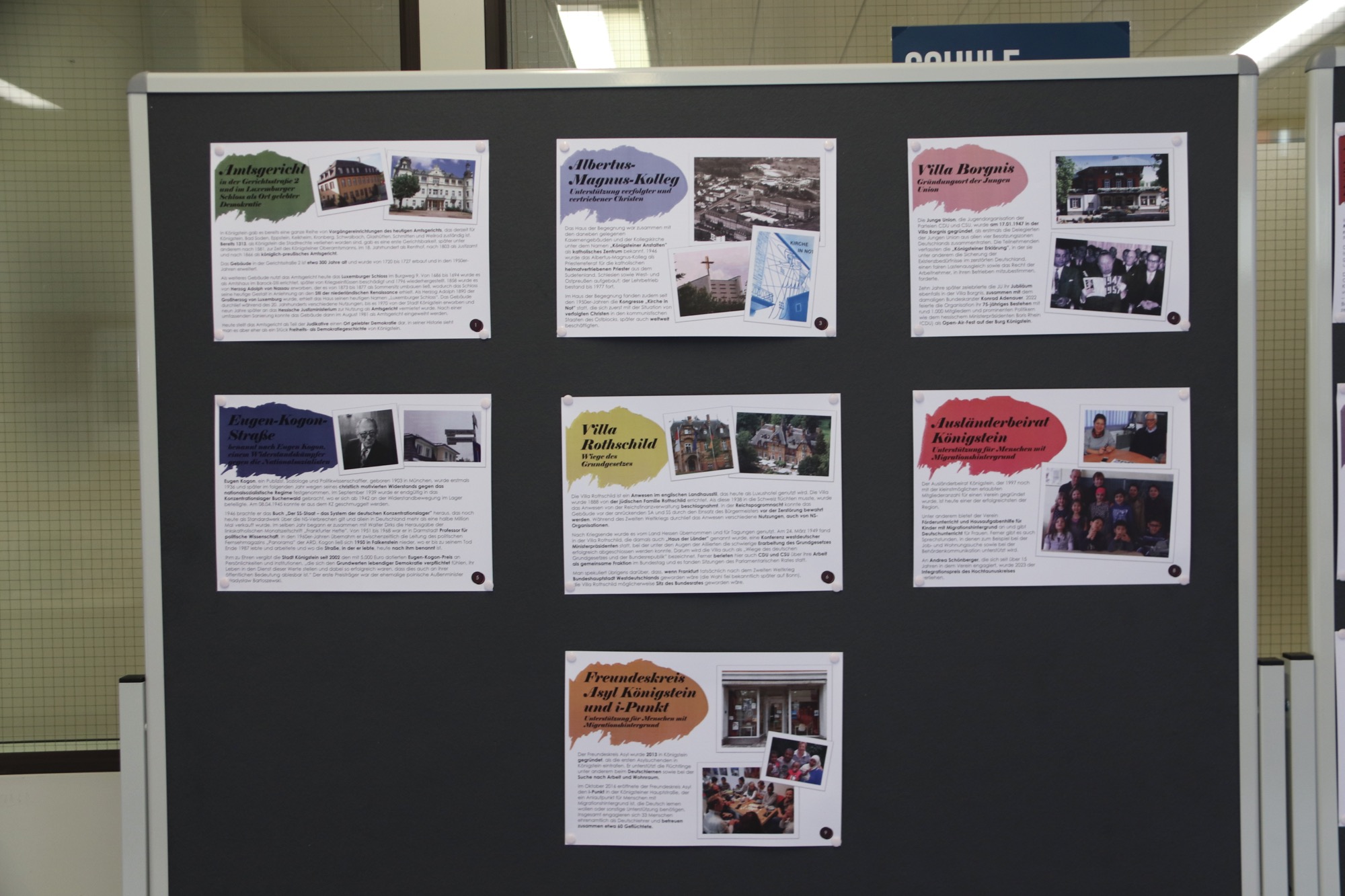 Auf dem Pausenhof gab es noch weitere Angebote, etwa die „Tafel der Vielfalt“ der Amguri-AG, auf der sich die Schülerinnen und Schüler schriftlich zu Themen wie Bildung, Vielfalt und Demokratie äußern konnten. Im Schulgebäude wurden Ausstellungen zum Thema EU, Grundgesetz sowie eine besondere Stadtkarte Königsteins, eine Weltkarte der Vielfalt, Bücherstände sowie ein Speakers Corner angeboten.