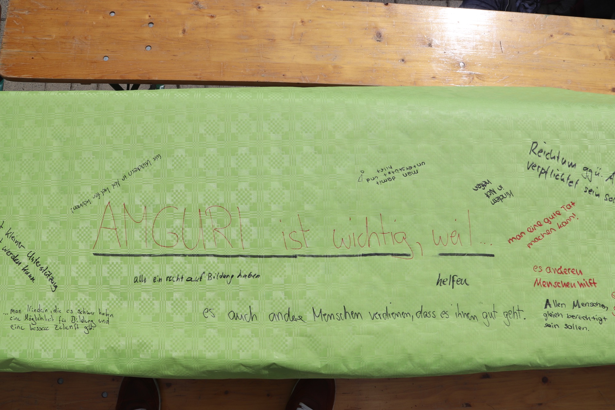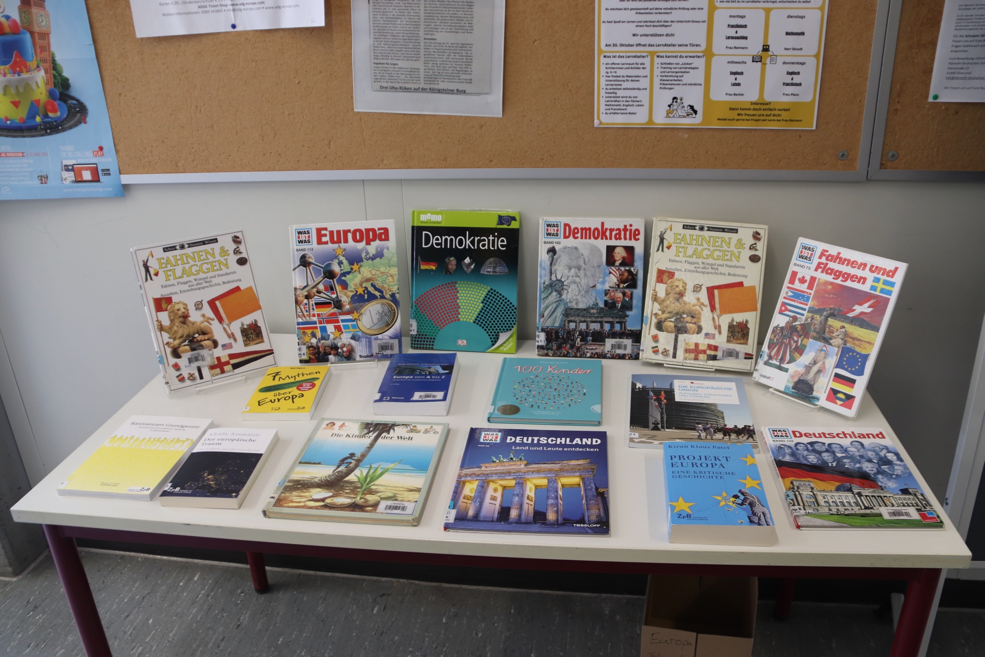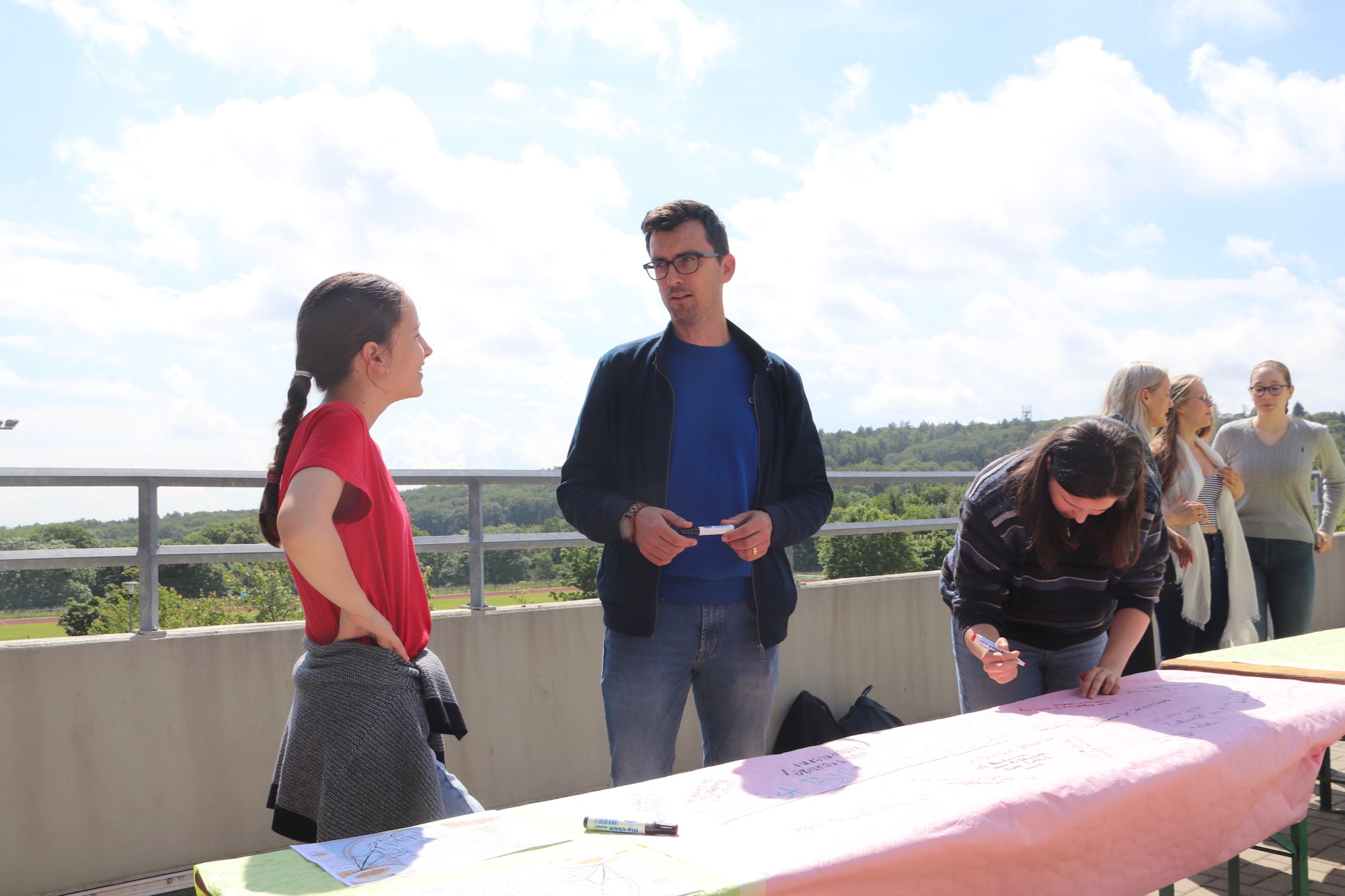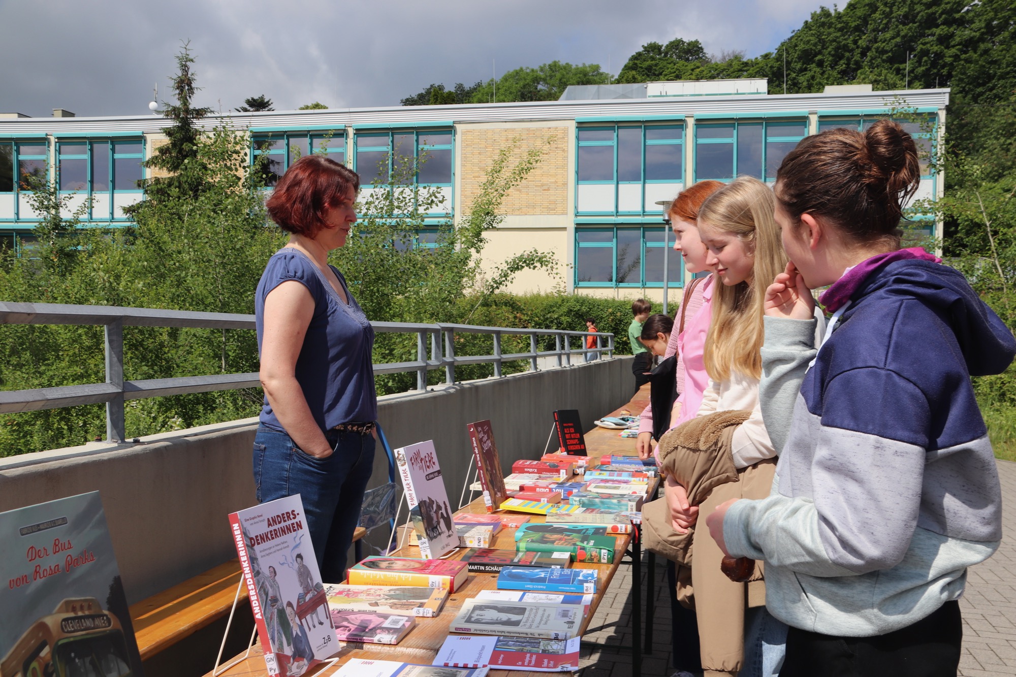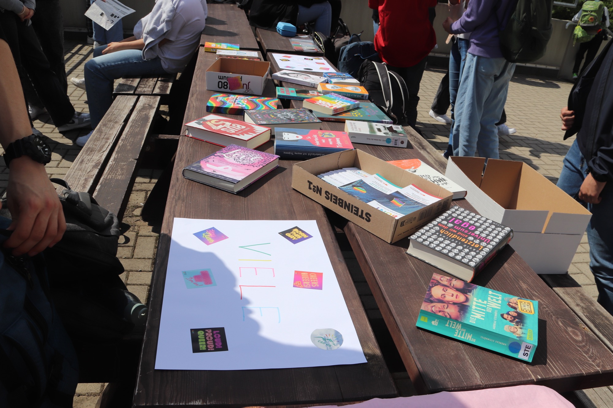 Auf dem Pausenhof gab es noch weitere Angebote, etwa die „Tafel der Vielfalt“ der Amguri-AG, auf der sich die Schülerinnen und Schüler schriftlich zu Themen wie Bildung, Vielfalt und Demokratie äußern konnten. Im Schulgebäude wurden Ausstellungen zum Thema EU, Grundgesetz sowie eine besondere Stadtkarte Königsteins, eine Weltkarte der Vielfalt, Bücherstände sowie ein Speakers Corner angeboten.