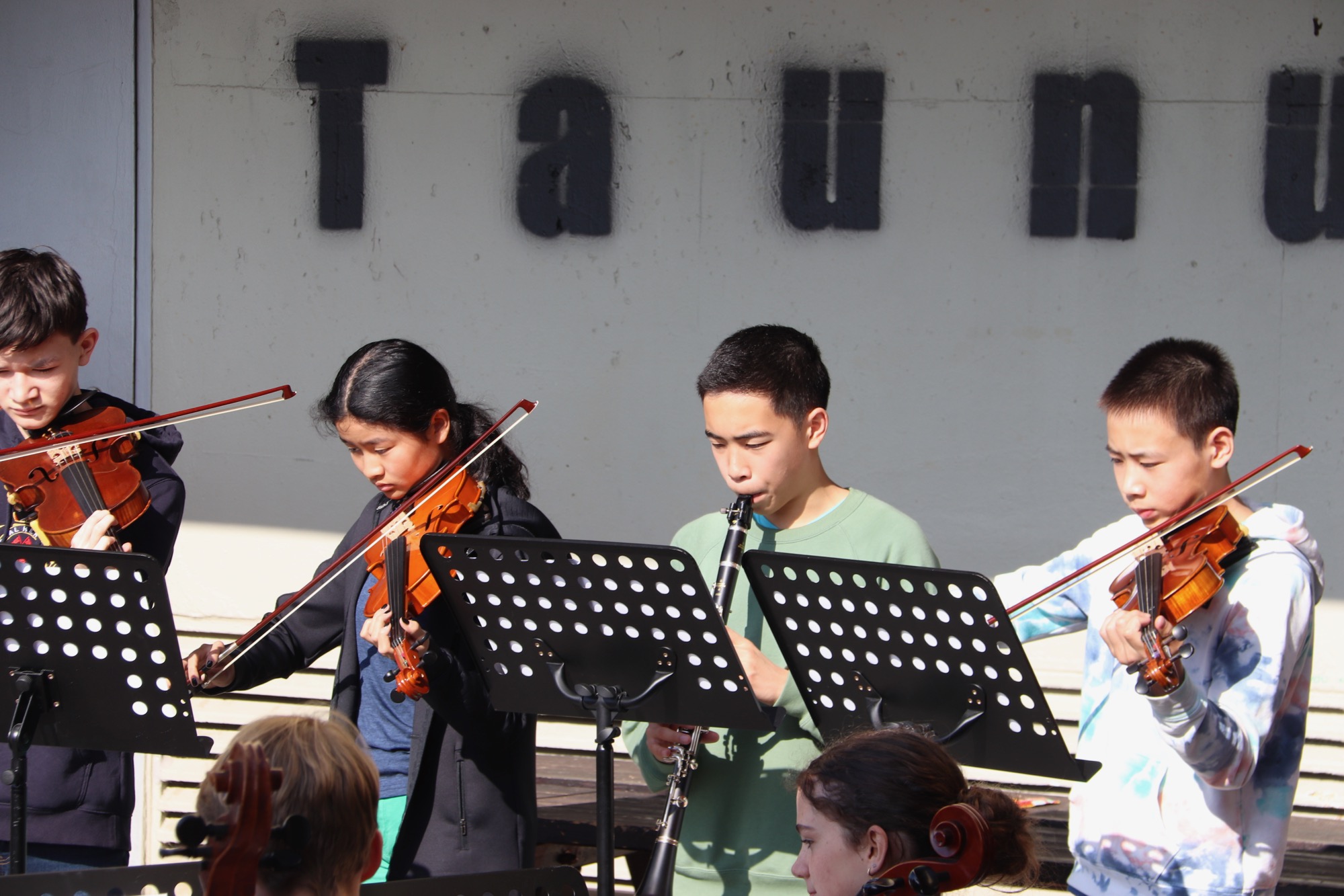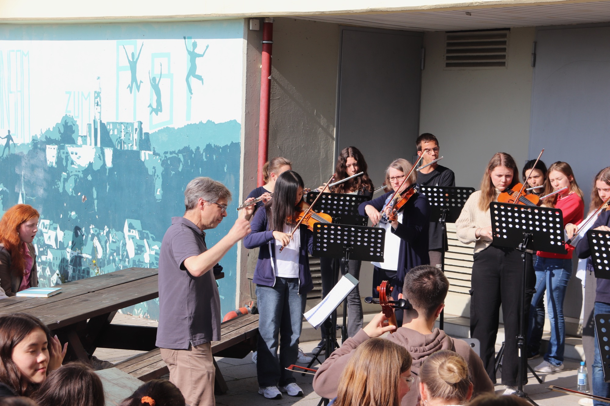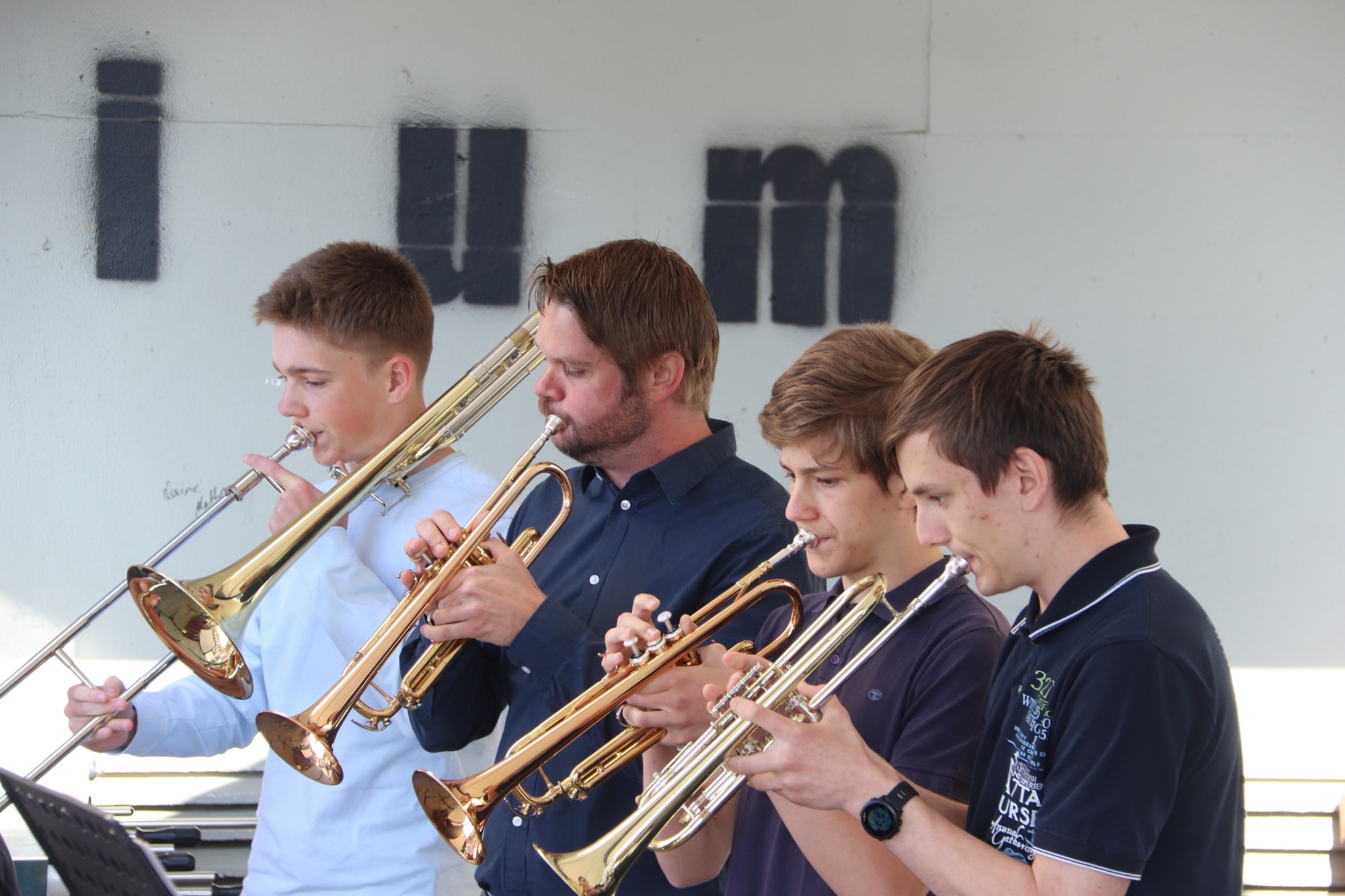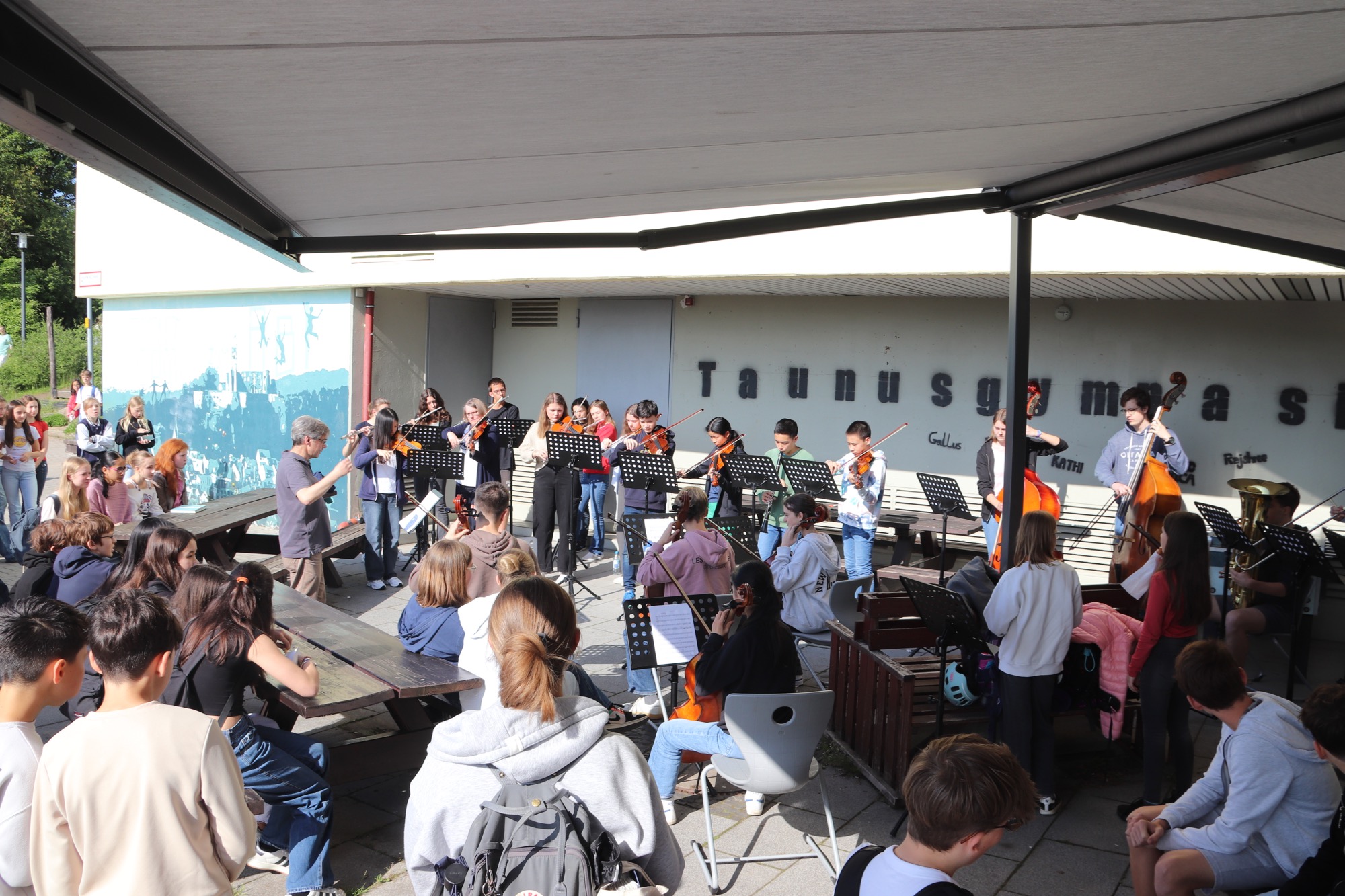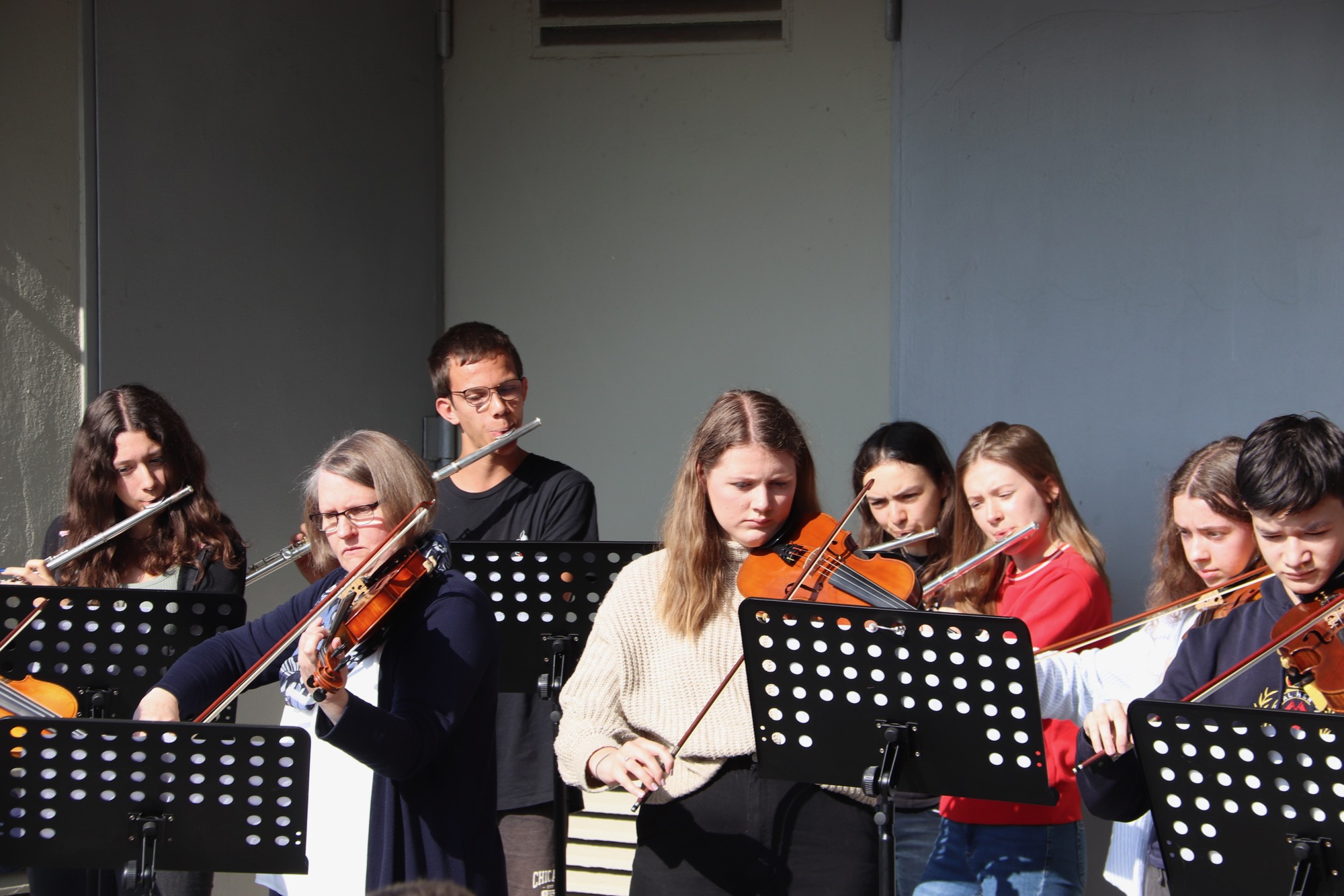 Als besonderes Highlight eröffnete das Orchester auf dem Schulhof den Tag musikalisch.
