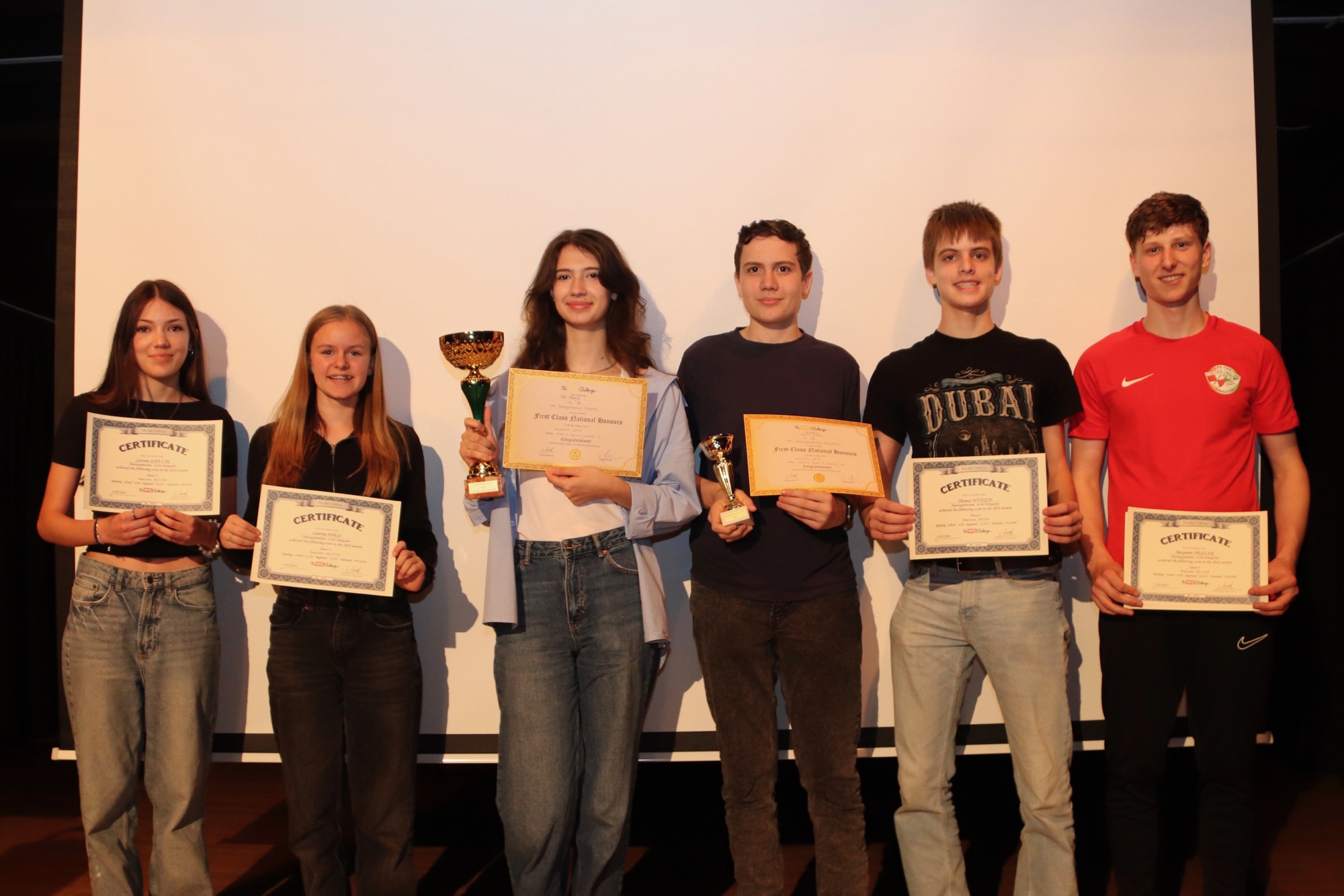 Die Preise und Urkunden wurden den Gewinnerinnen und Gewinnern von Frau Pfeifer feierlich im Theaterraum überreicht. Schulleiterin Frau Herbst gratulierte den erfolgreichen Teilnehmerinnen und Teilnehmern ebenfalls.