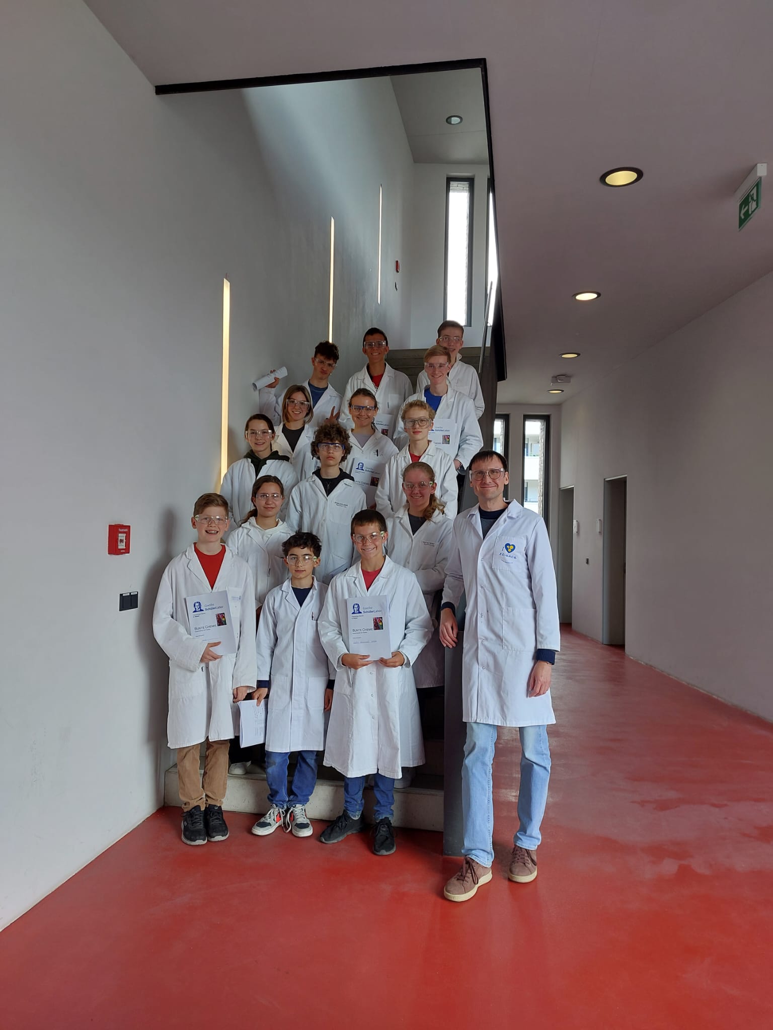 Im Rahmen dieser Projektreihe fanden vier Veranstaltungen statt, die von Christian Lego und Ingo Meinikmann geleitet wurden. Die Schülerinnen und Schüler besuchten das Chemikum in Marburg und erhielten bei der Freiwilligen Feuerwehr in Bad Soden spannende Einblicke in die Rolle der Chemie in der Brandbekämpfung. Eine Werksrundfahrt durch den Industriepark Höchst bot ihnen die Möglichkeit, einen der komplexesten und vernetztesten Standorte der chemischen Industrie kennenzulernen. Darüber hinaus nahmen sie an einer Probevorlesung von Prof. Dr. Peter Holm an der Provadis School of International Management und Technology teil, die sich mit den Herausforderungen aktueller Logistik am Beispiel des Versandhandels von Temu beschäftigte. Den Abschluss der Projektreihe bildete ein Besuch im Schülerlabor an der Goethe-Universität Frankfurt, wo sie im Rahmen des Projekts "Die bunte Welt der Chemie" spannende Experimente mit Farbstoffen durchführten.