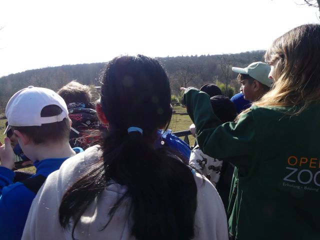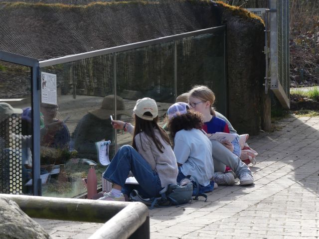 Zunächst wurde die Klasse also von Steffi, der Zoopädagogin, über eine Stunde durch den Zoo zu verschiedenen Tieren geführt und fachkundig zu verschiedenen Fragen informiert und im Anschluss hatten alle Zeit „ihr“ Tier zu beobachten, Fotos zu machen und vielleicht sogar ein kurzes Video aufzuzeichnen und damit endgültig einen Startschuss zur (Gruppen)Arbeit zu setzen. Nun heißt es fleißig arbeiten, damit Anfang Juni die Wettbewerbsbeiträge eingereicht werden können.