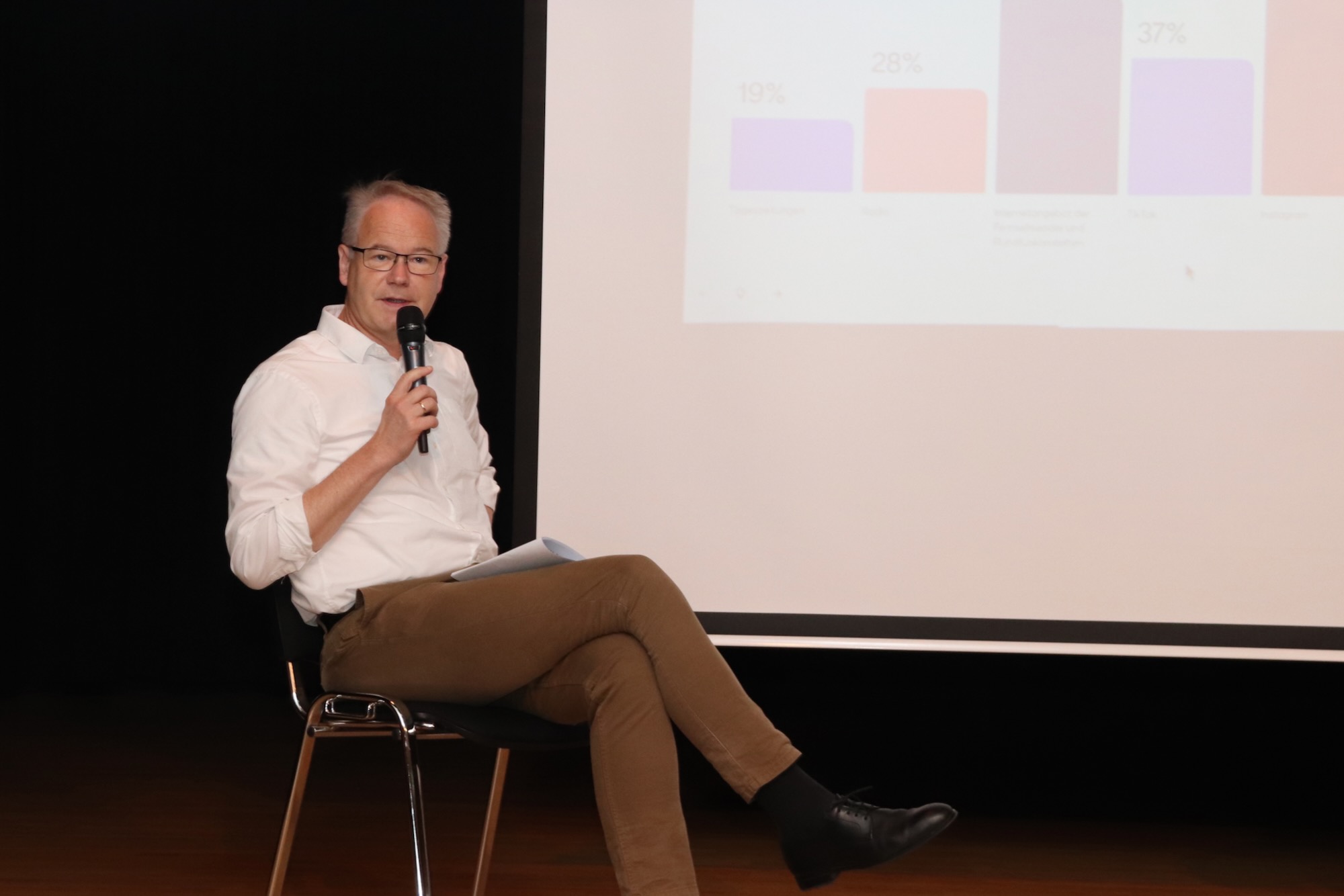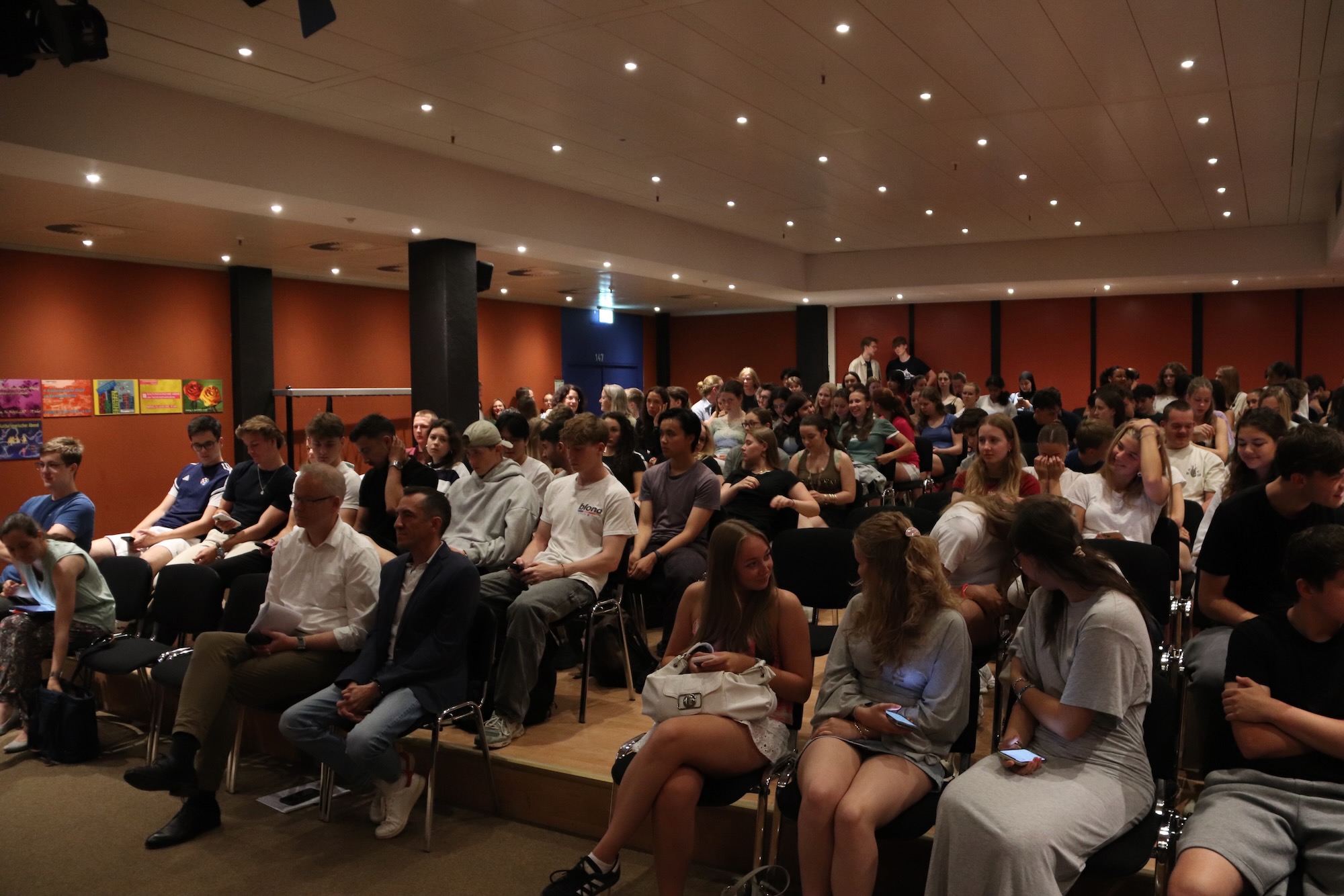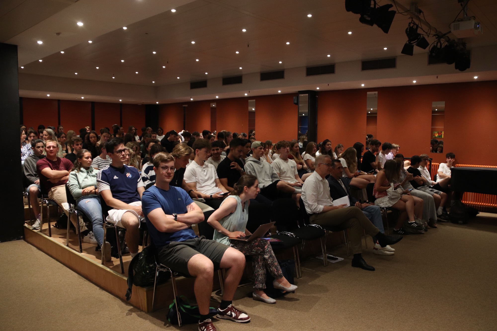 Ein besonderes Highlight: FAZ-Herausgeber Carsten Knop diskutierte mit den Schülerinnen und Schülern der Q-Phase, welche Rolle Medien für die Meinungsbildung und Demokratie spielen, und zeichnete ein alarmierendes Bild des Einflusses von sozialen Netzwerken wie TikTok und Instagram im Vergleich zu traditionellen Qualitätszeitungen. Auch die Bürgermeisterin von Königstein, Beatrice Schenk-Motzko, war anwesend und schilderte den Schülerinnen und Schülern, wie wichtig Demokratie ist – und wieviel Arbeit dahinter steckt.
