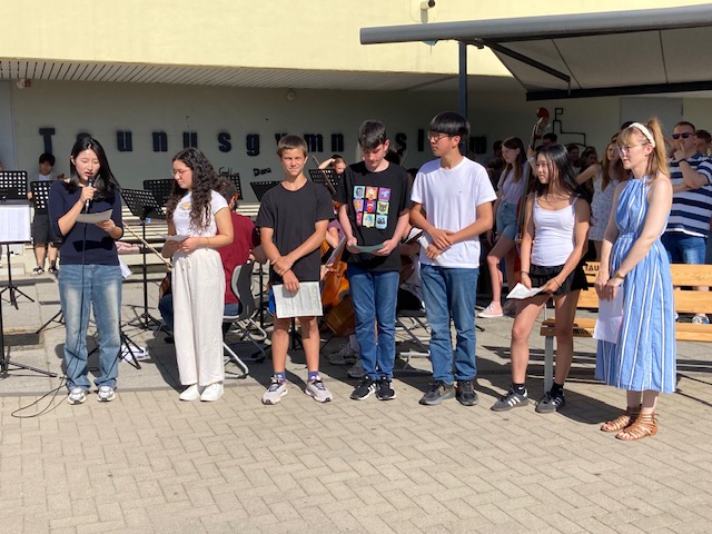 Warum ein Tag für Vielfalt und Demokratie? „Was besonders wertvoll und schützenswert ist, dafür gibt es eigene Tage,“ so erklärte es Schulleiterin Beate Herbst in ihrer Rede zu diesem Tag Ende Juni im Taunusgymnasium. Doch leider komme die Demokratie zunehmend unter Druck. Gerade Schulen sind gefordert, Werte wie Toleranz und Meinungsfreiheit zu vermitteln und jungen Menschen bewusst zu machen, welcher Schatz in einer vielfältigen Gesellschaft steckt.