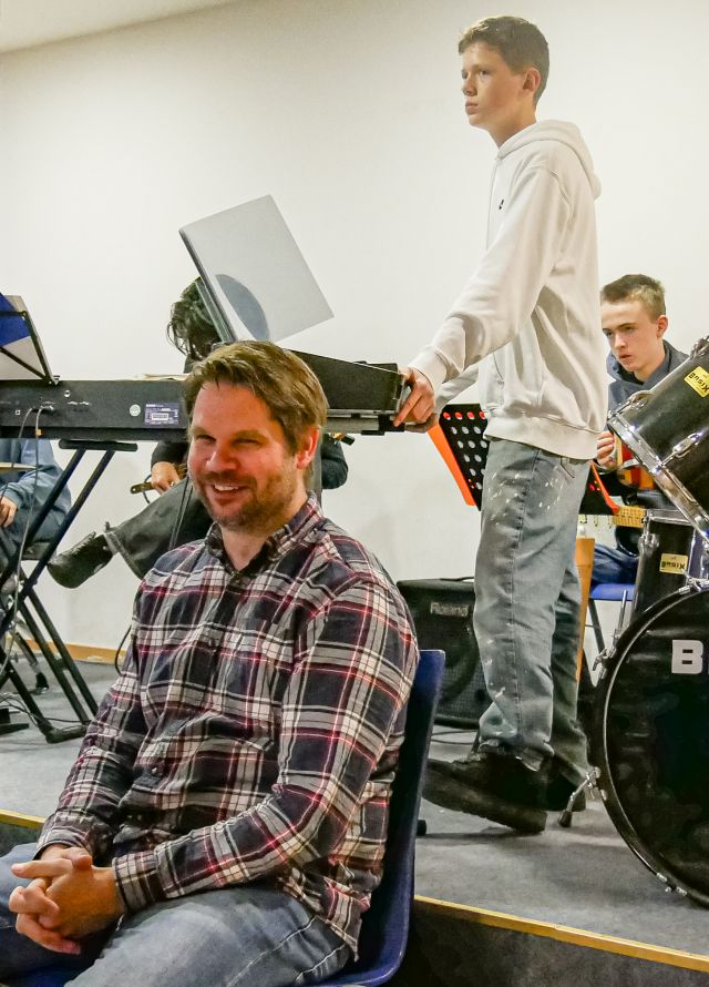 Besonders erfreulich ist, dass sich die Big Band auch in diesem Jahr wieder vergrößert hat und einige neue Gesichter dabei waren. Diese wurden mit offenen Armen empfangen und haben die Proben sehr bereichert: Ein schönes Beispiel dafür, wie gemeinsames Musizieren den Zusammenhalt über alle Jahrgangsstufen hinweg stärken kann – und sogar darüber hinaus: So fanden einige ehemalige Mitglieder Big Band tatsächlich Zeit und Gelegenheit, an den Proben teilzunehmen und die Big Band auch am Konzertabend zu unterstützen.